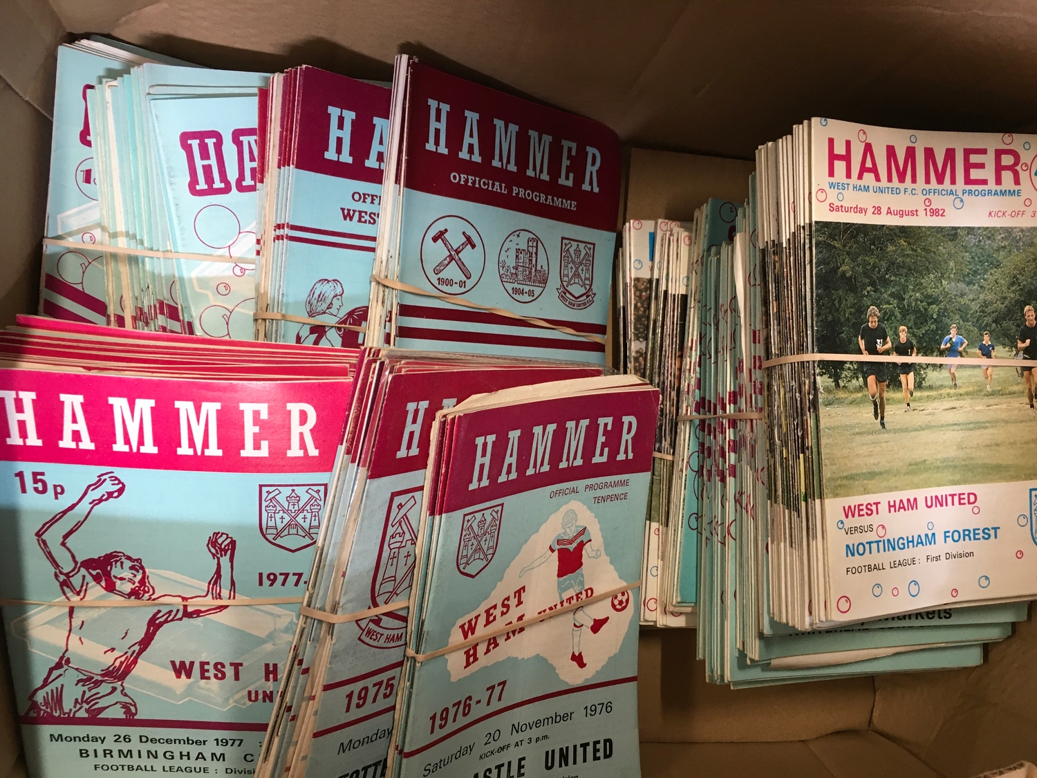 West Ham Home Football Programmes: Quantity to include some complete seasons from the 60s onwards. Reserves and Youth sheets included. (2 boxes)