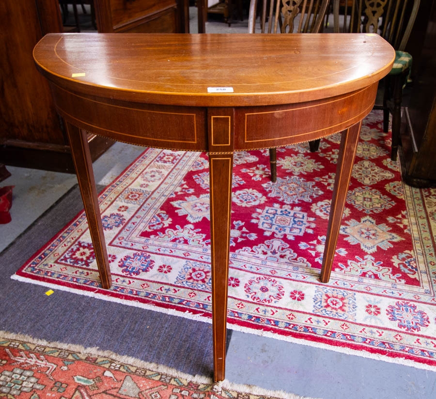 MAHOGANY INLAID HALF MOON TABLE 76 X 42 X 75 CM HIGH
