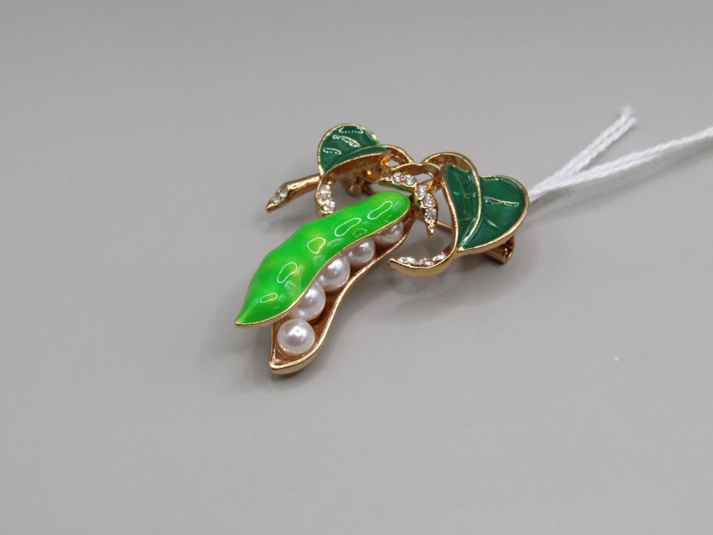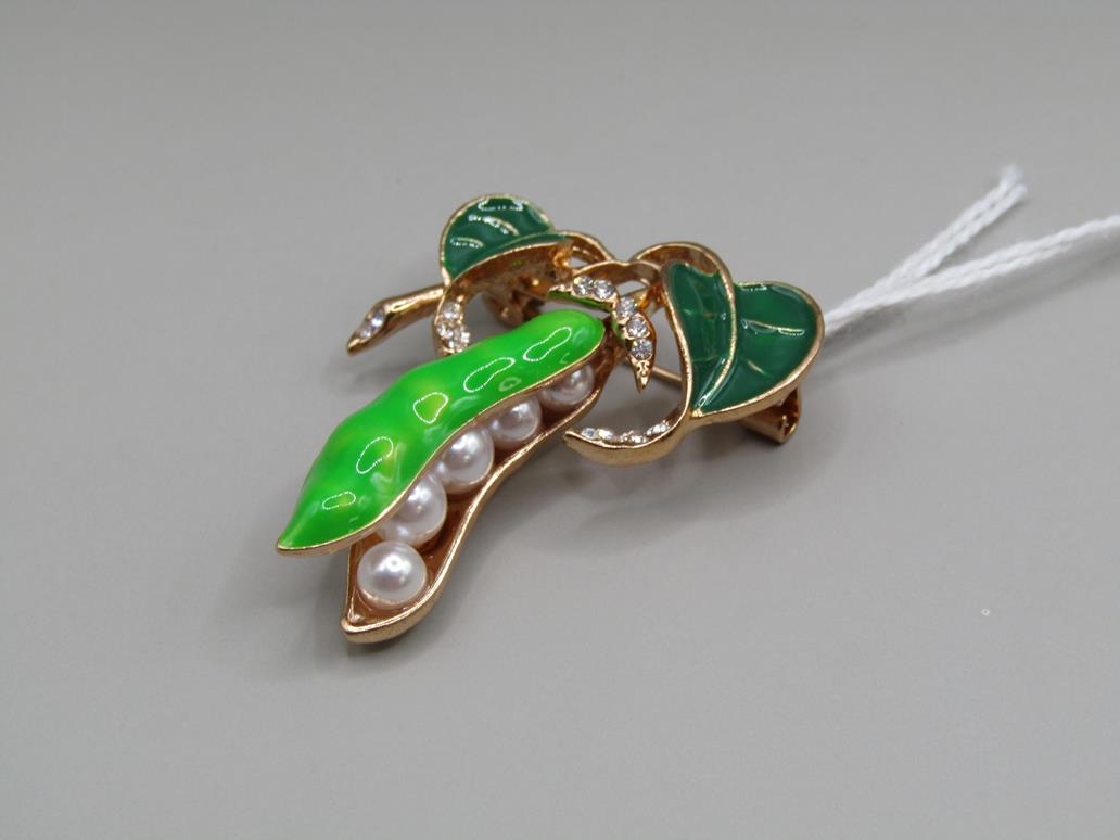 ENAMEL PEAPOD BROOCH