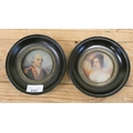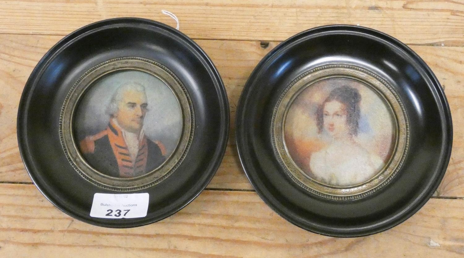 A pair of decorative circular portrait miniatures of Nelson and Lady Hamilton