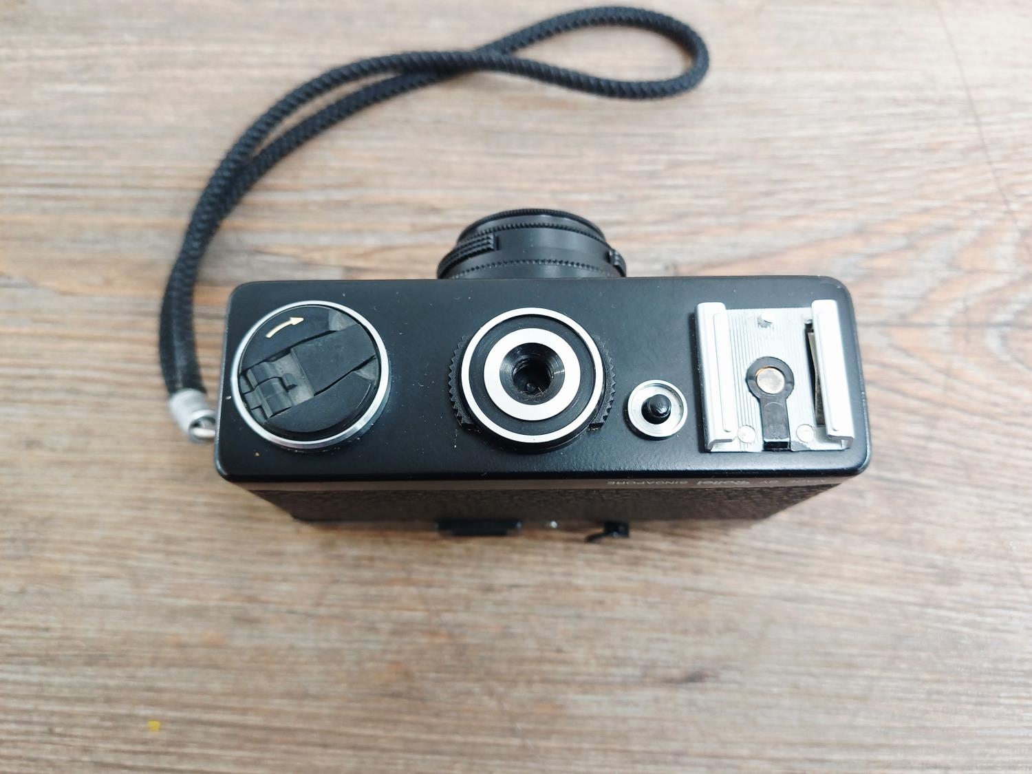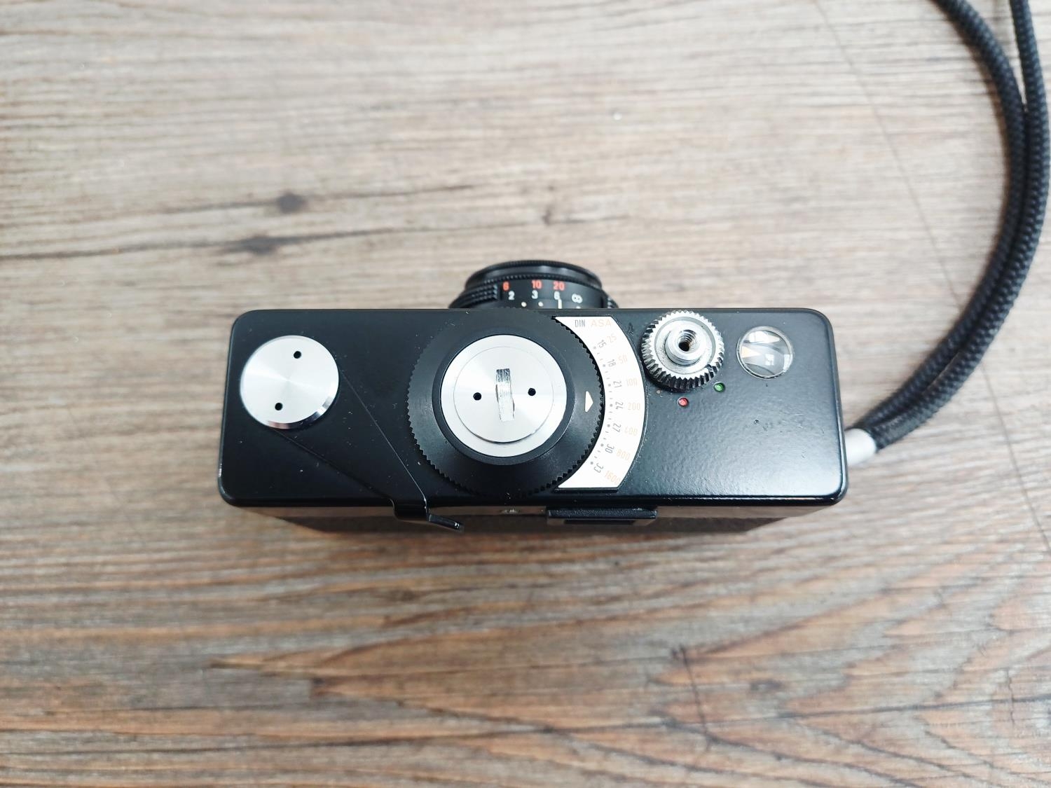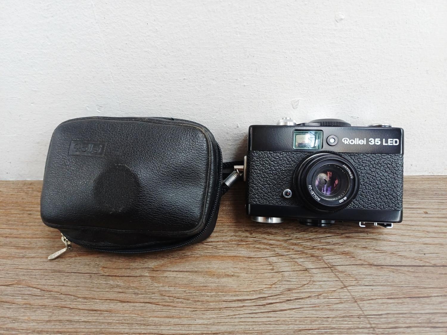 A cased Rollei 35 LED ultra-compact 35mm camera