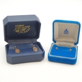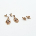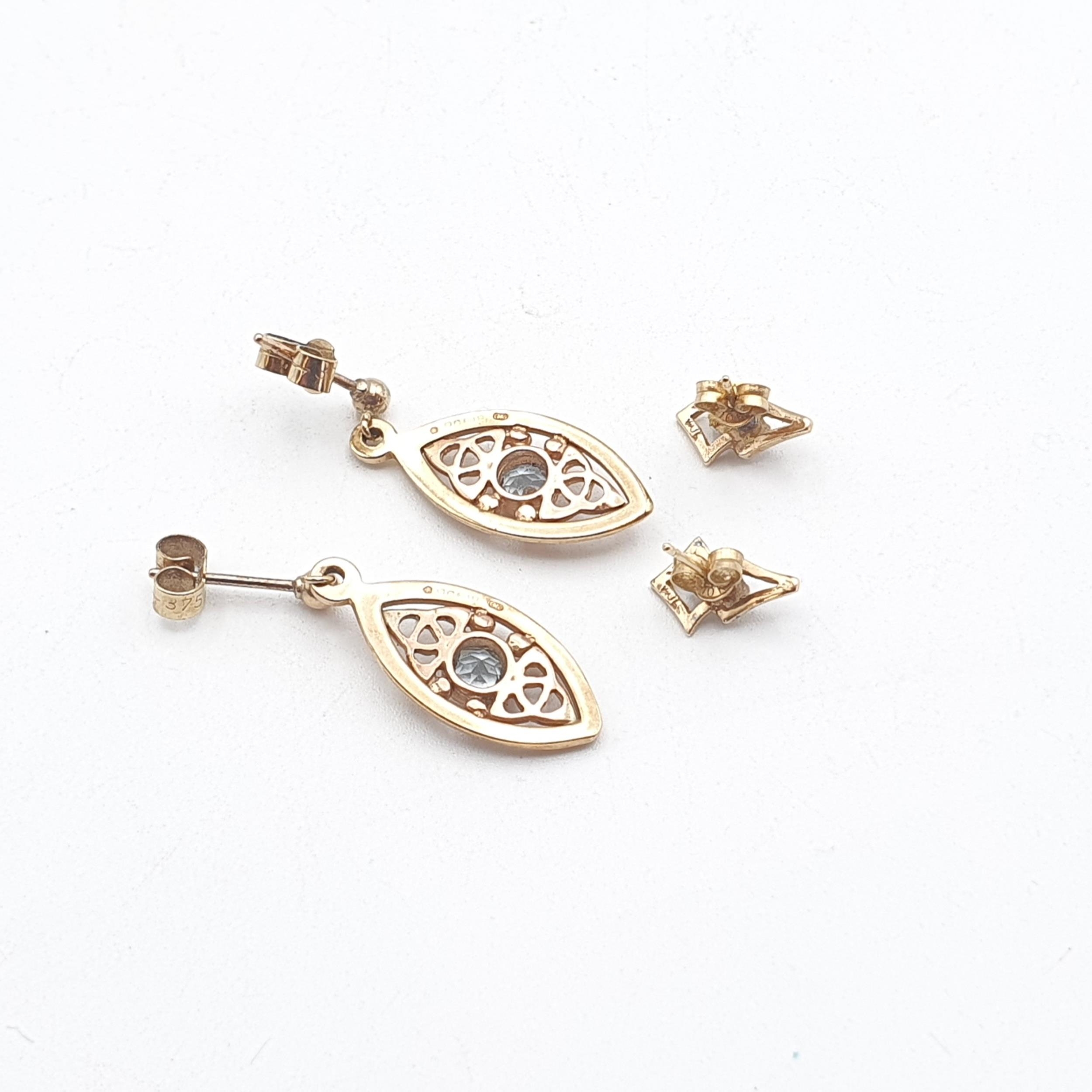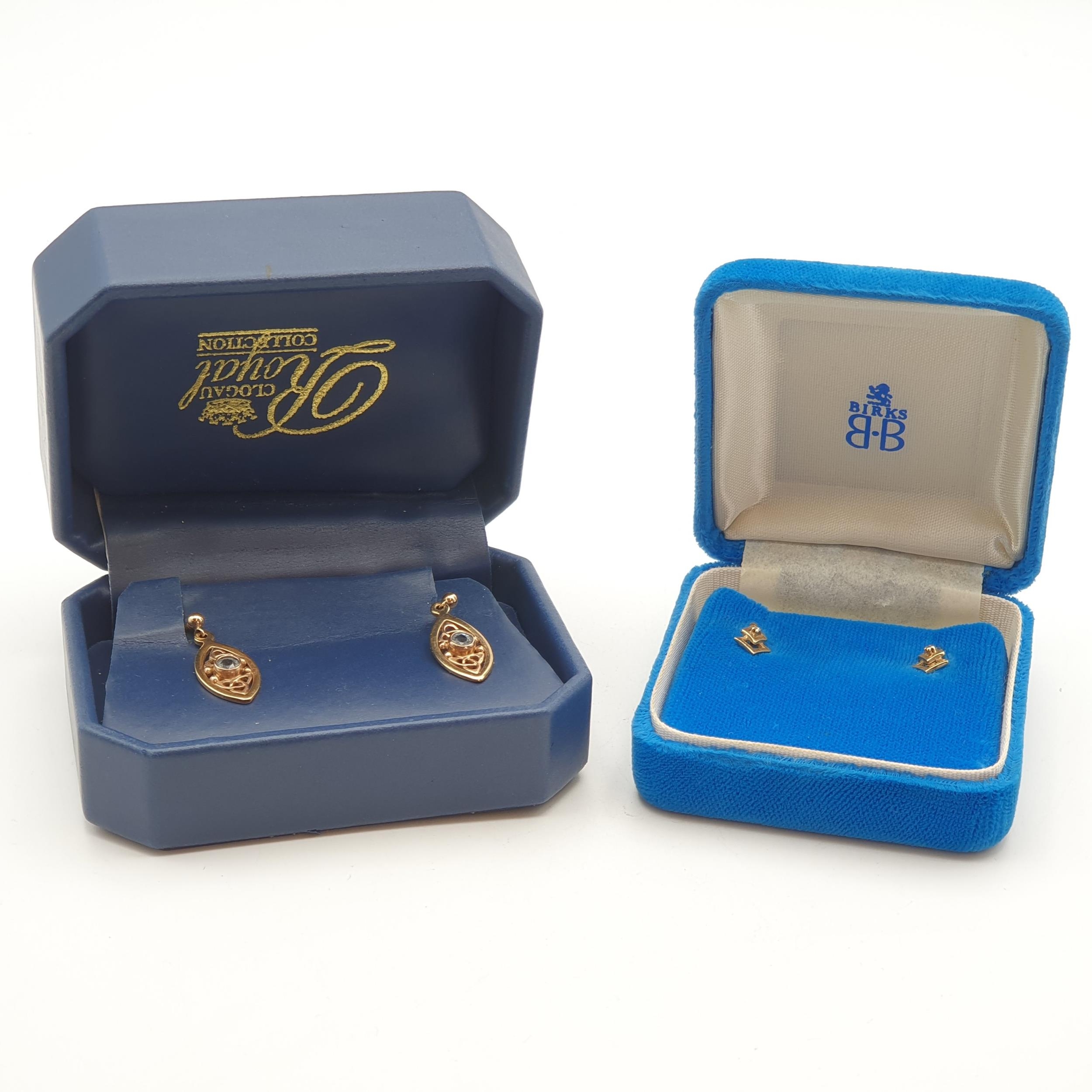 A pair of 9ct gold Clogau Earrings set blue topaz and a pair of small interlocking triangular Earrings set tiny diamonds stamped 10k, approx. 4gms total