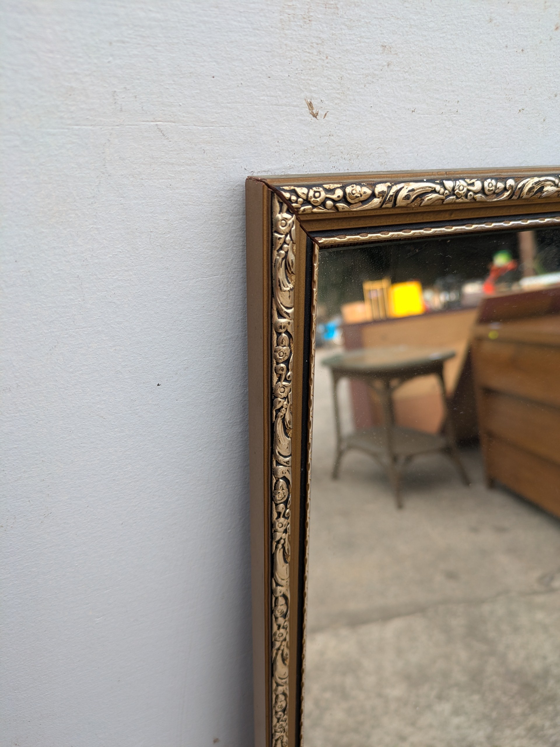 A dressing mirror in an ornate gold gilt floral carved frame