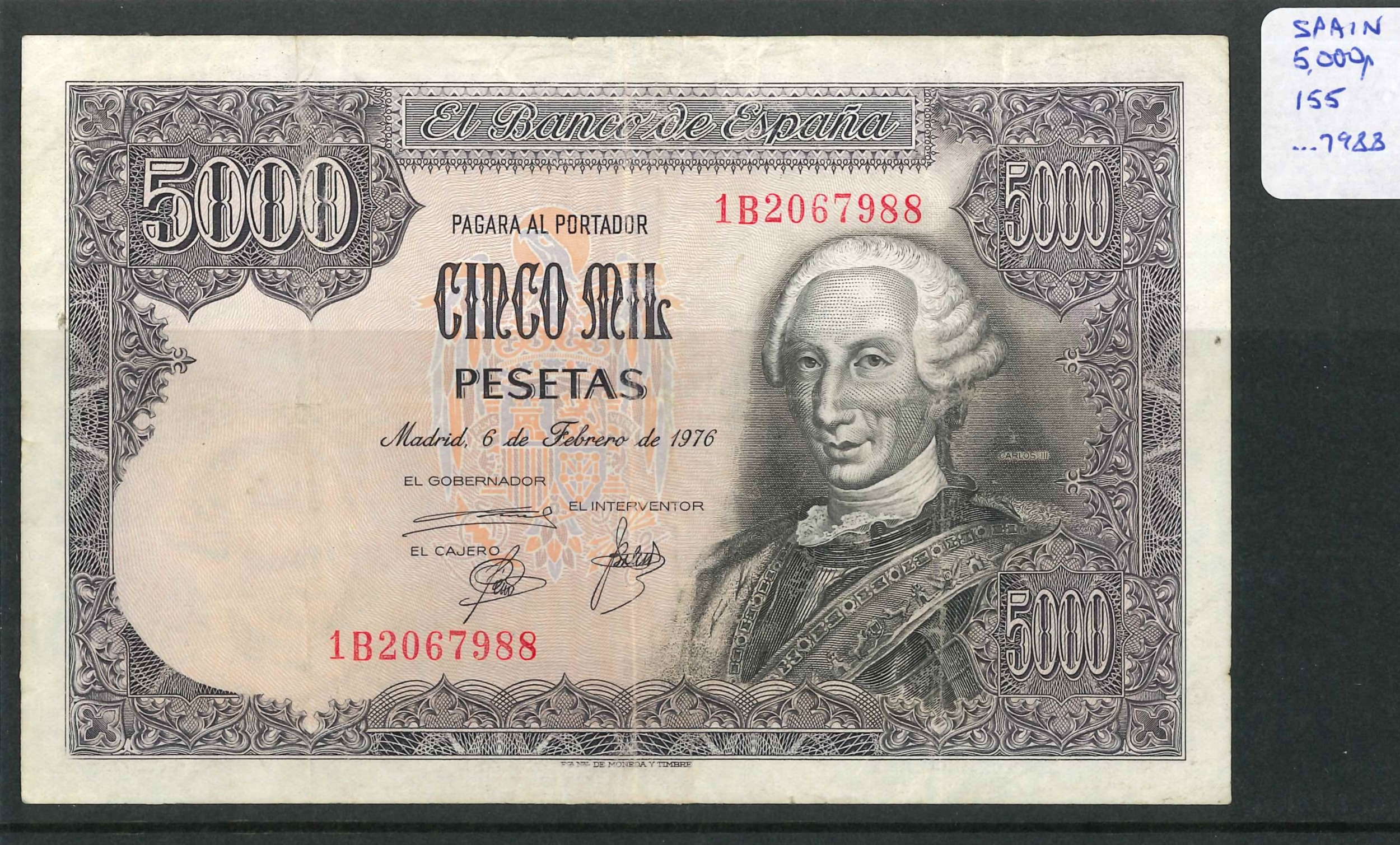 Banknotes; Spain; 1976 (1978) 5,000 pesetas, F+, Krause 155.