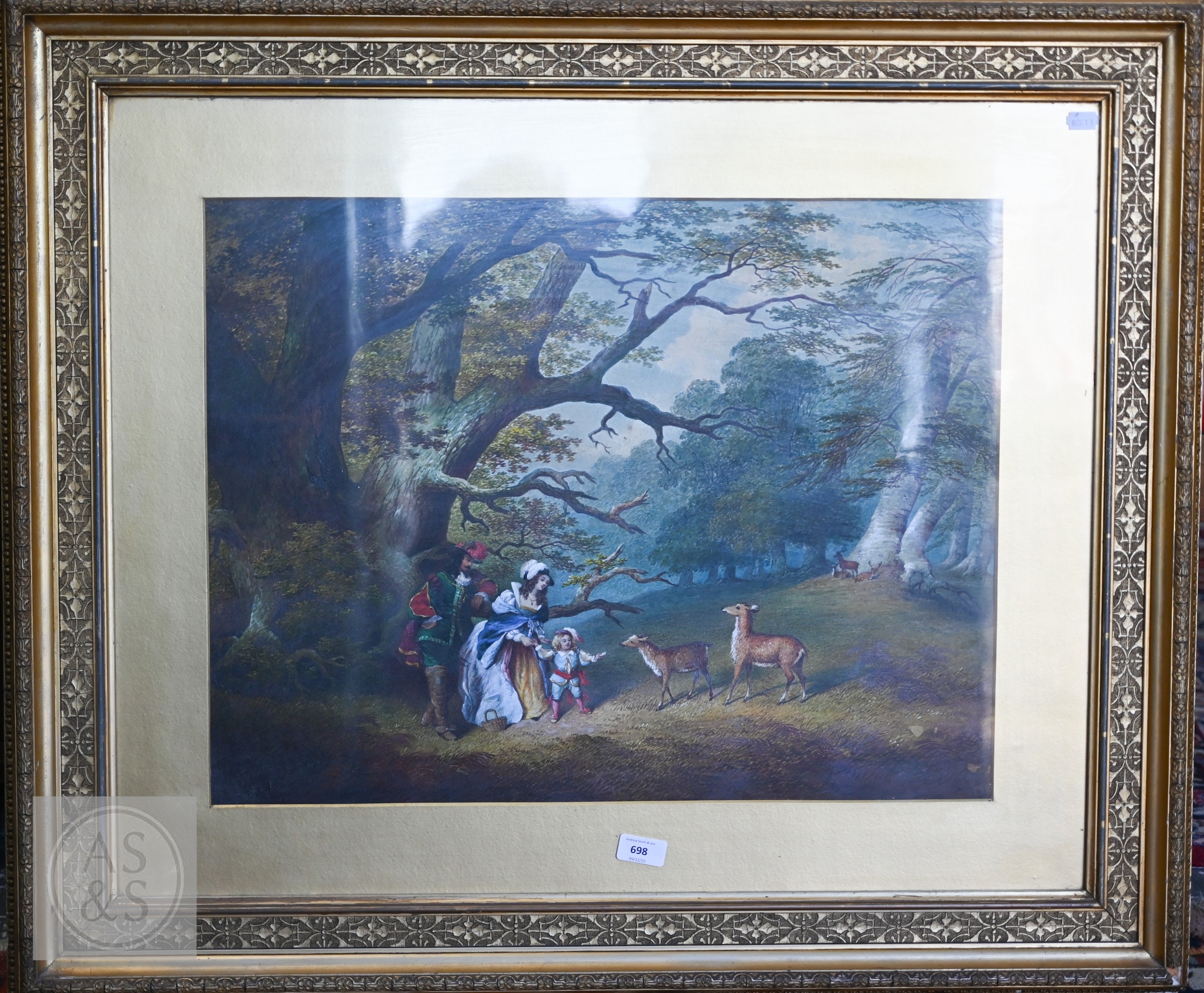 C F Buckley (British, 1812-1869) - Windsor Great Park, watercolour, signed, 48 x 62 cm