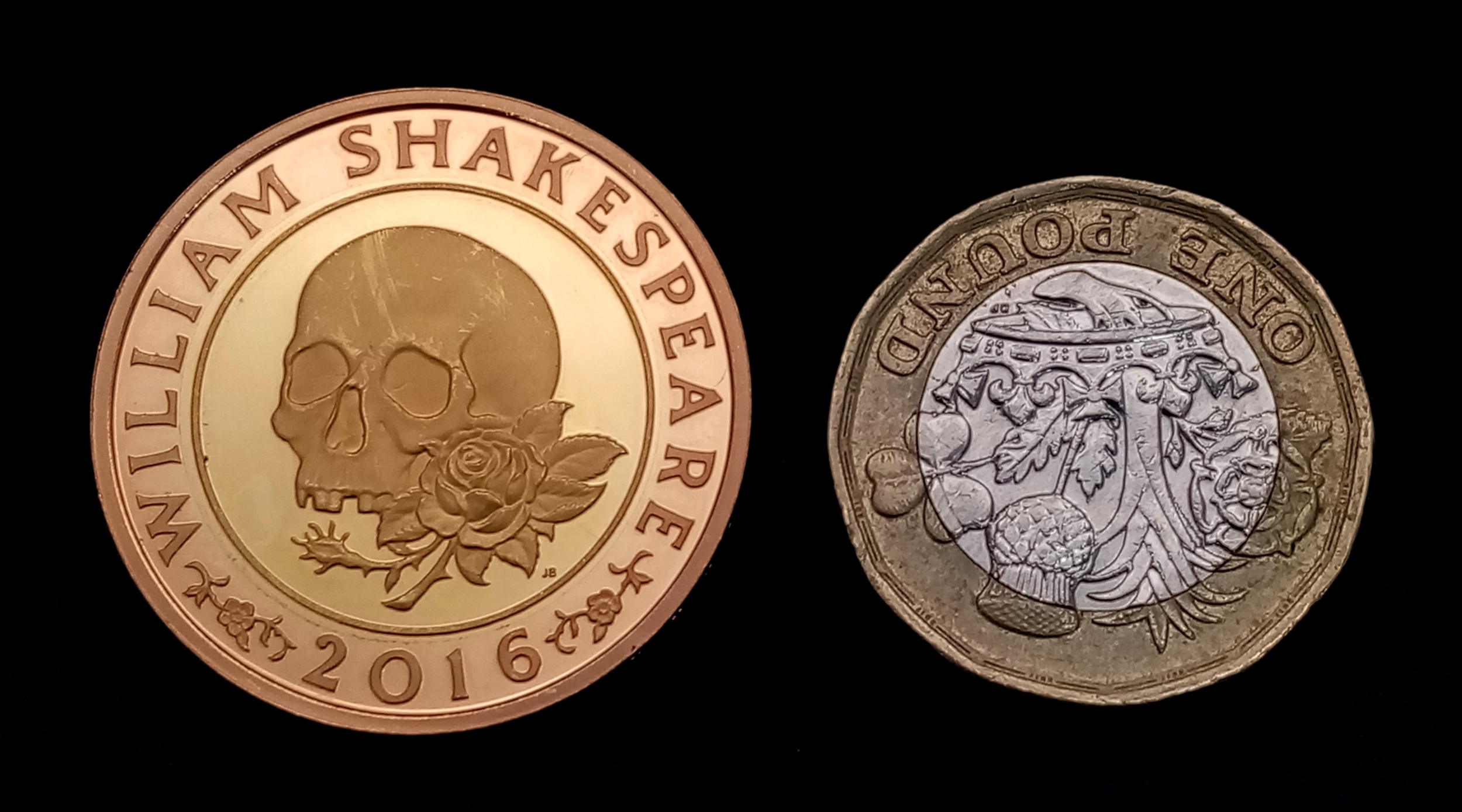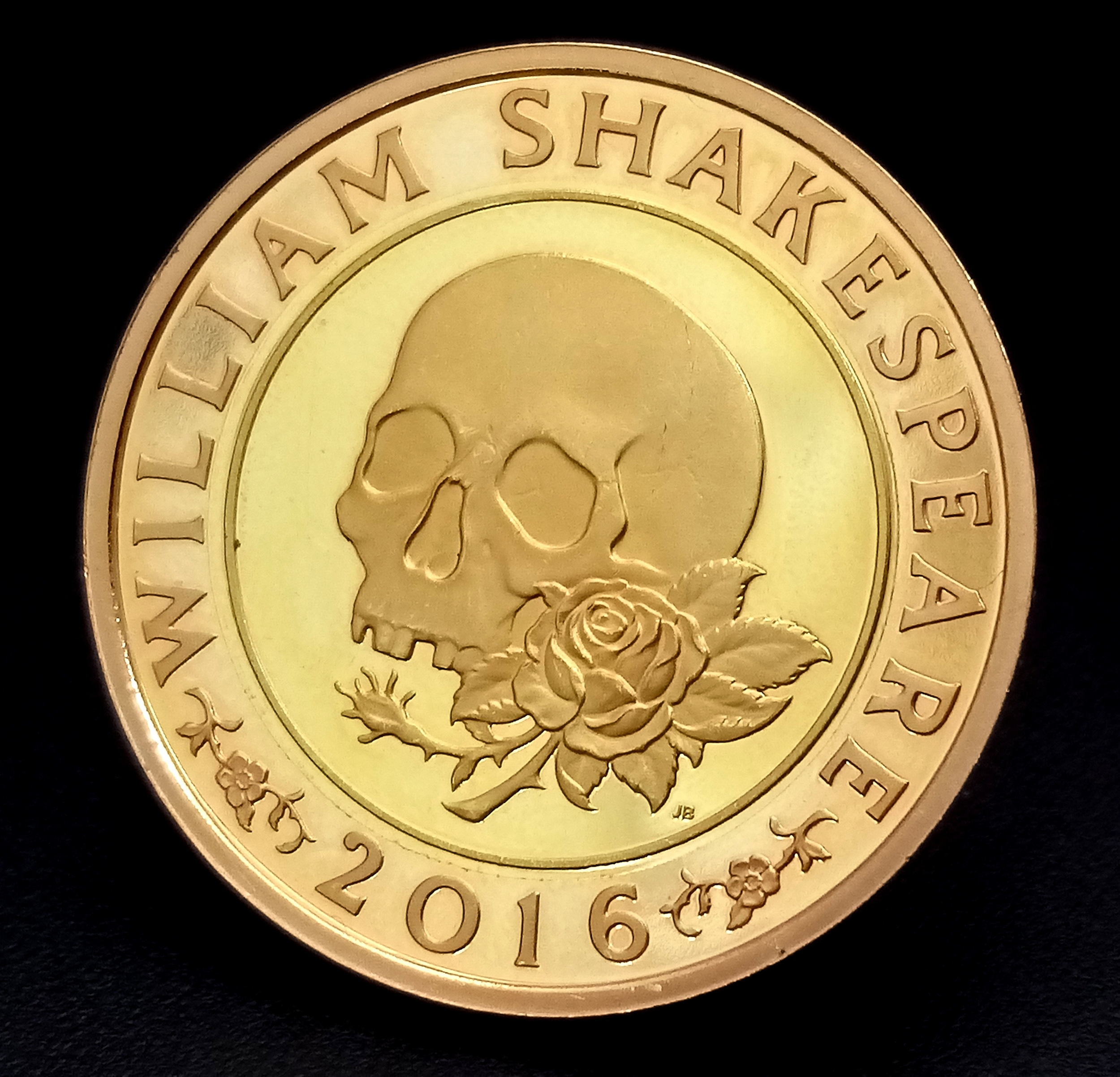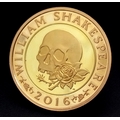 A 2016 QUEEN ELIZABETH II, SHAKESPEAREAN SKULL £2 PROOF CONDITION COIN. 22K GOLD. 16G. C-8013.