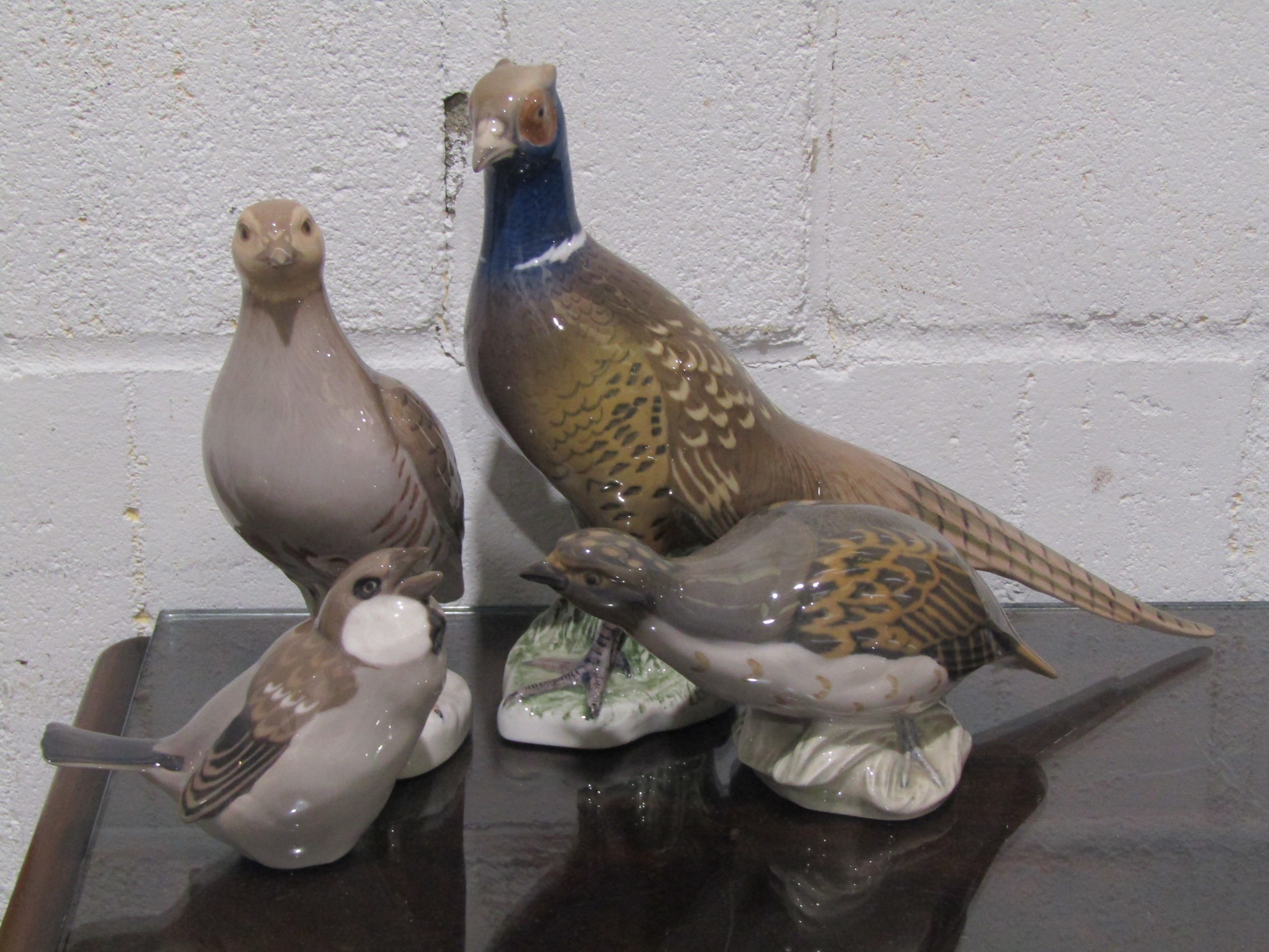 Four Royal Copenhagen bird figures, to include Partridge model No.2261, another, Pheasant and Sparrow
