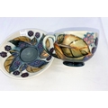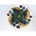 A Moorcroft cup & saucer decorated with brambles (blackberries & leaves) impressed & monogrammed (seconds line in silver)