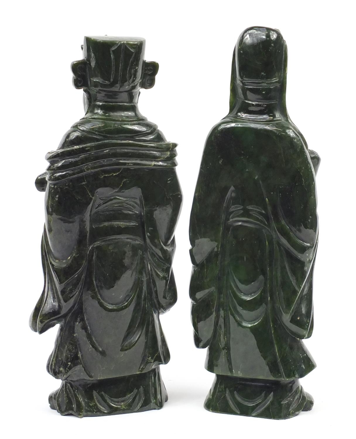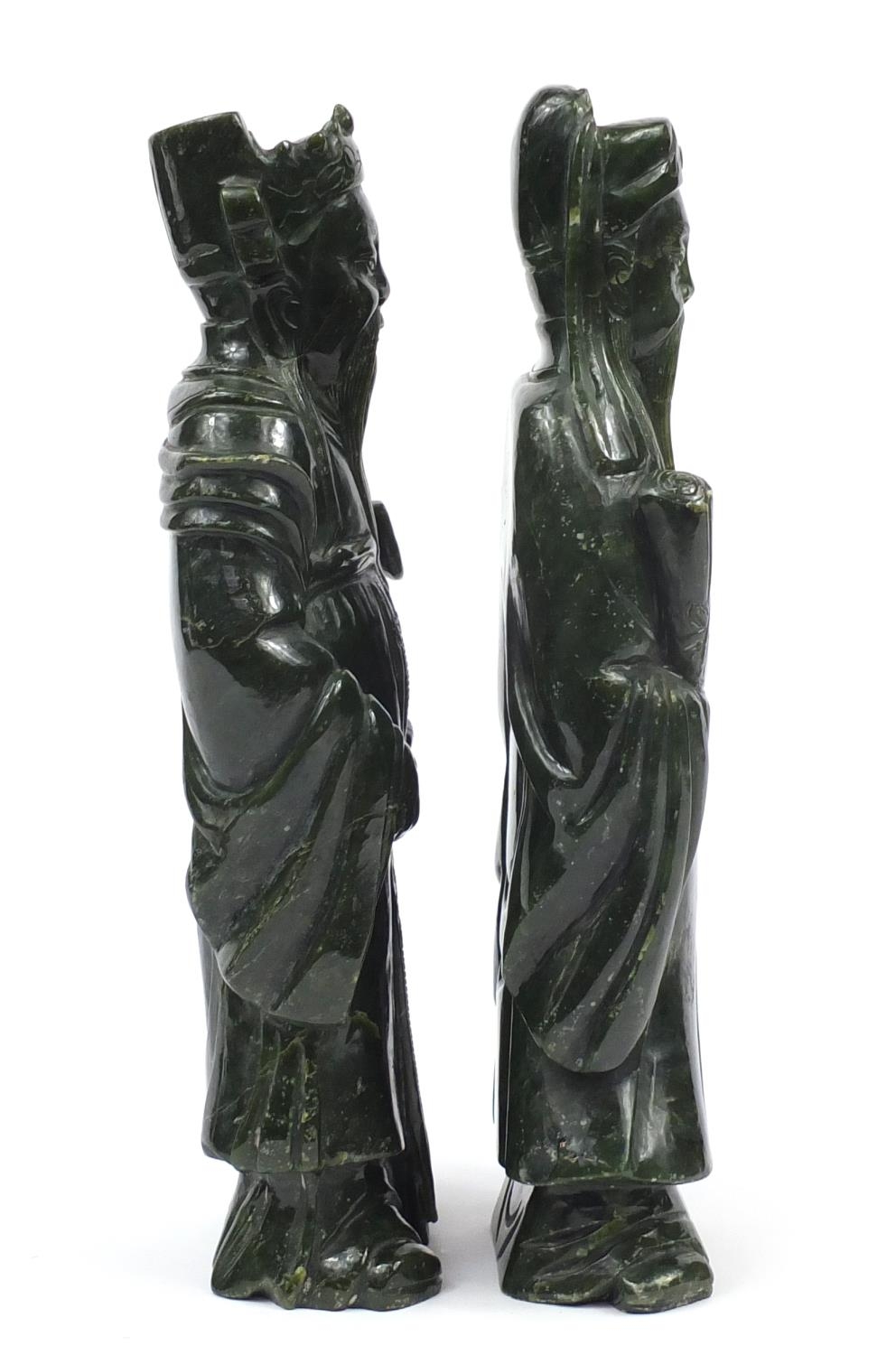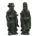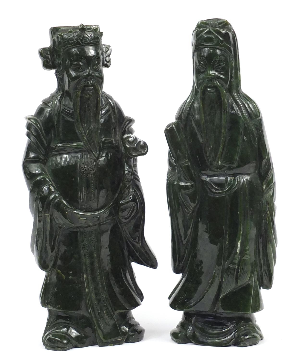 Large pair of Chinese carved jade figures of wisemen, the largest 39cm high