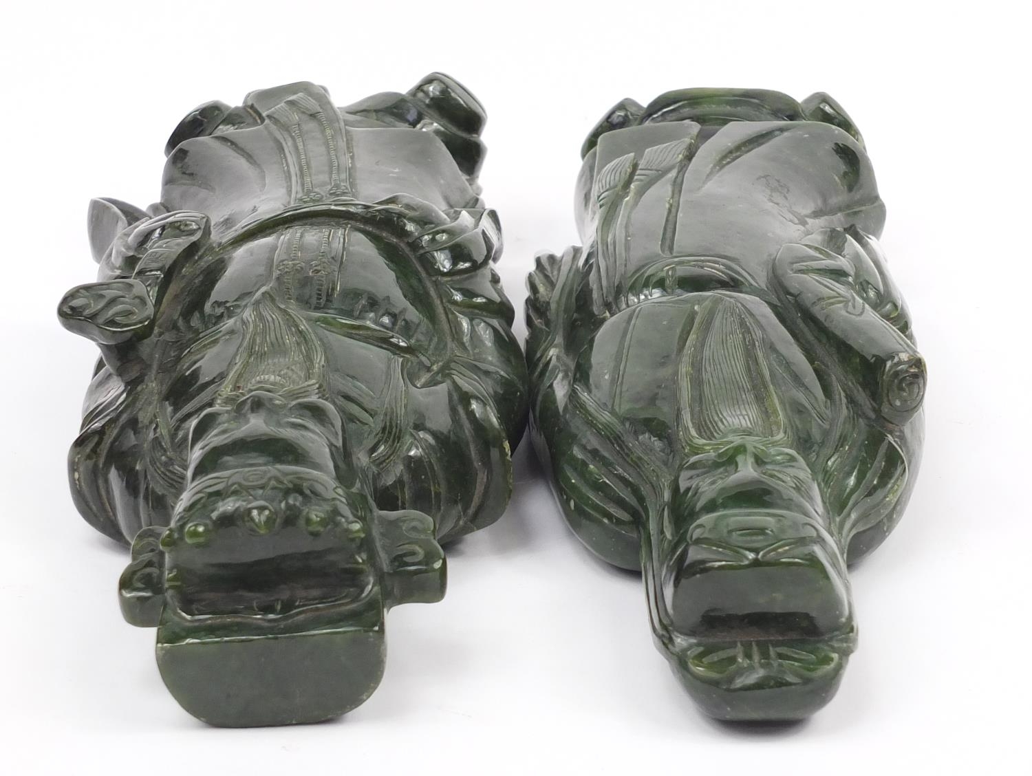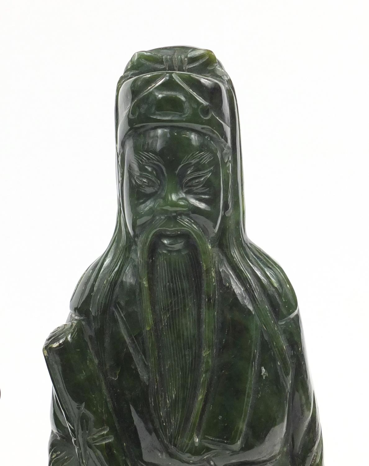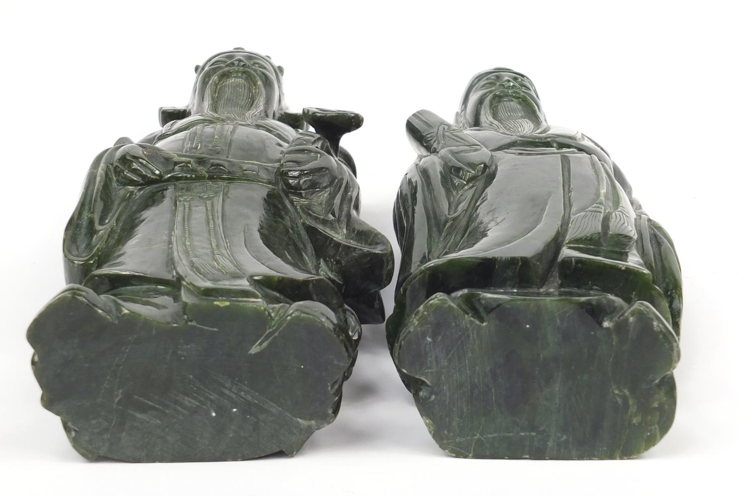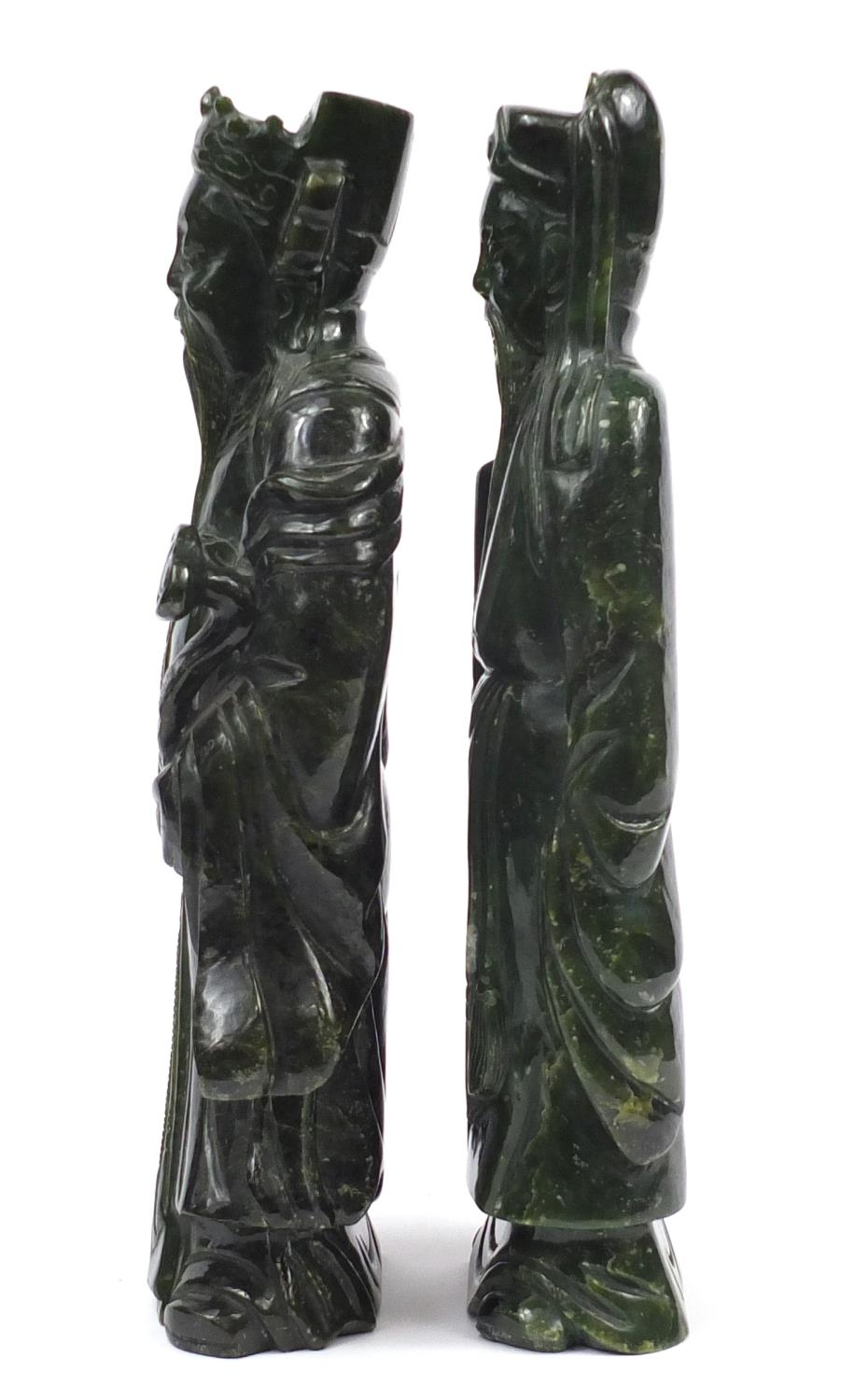 Large pair of Chinese carved jade figures of wisemen, the largest 39cm high