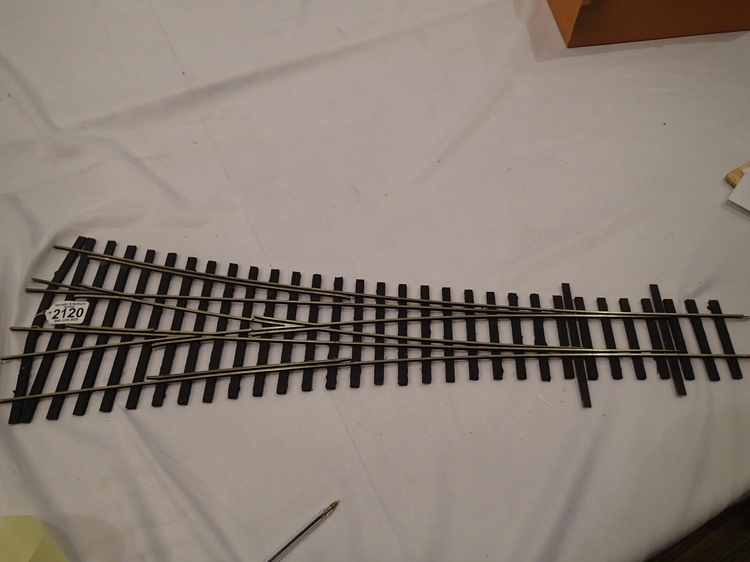 Gauge 1 kit built three-way point, wooden sleeper, nickel silver, flat bottom rail, L: 80 cm, very good condition. UK P&P Group 1 (£16+VAT for the first lot and £2+VAT for subsequent lots)