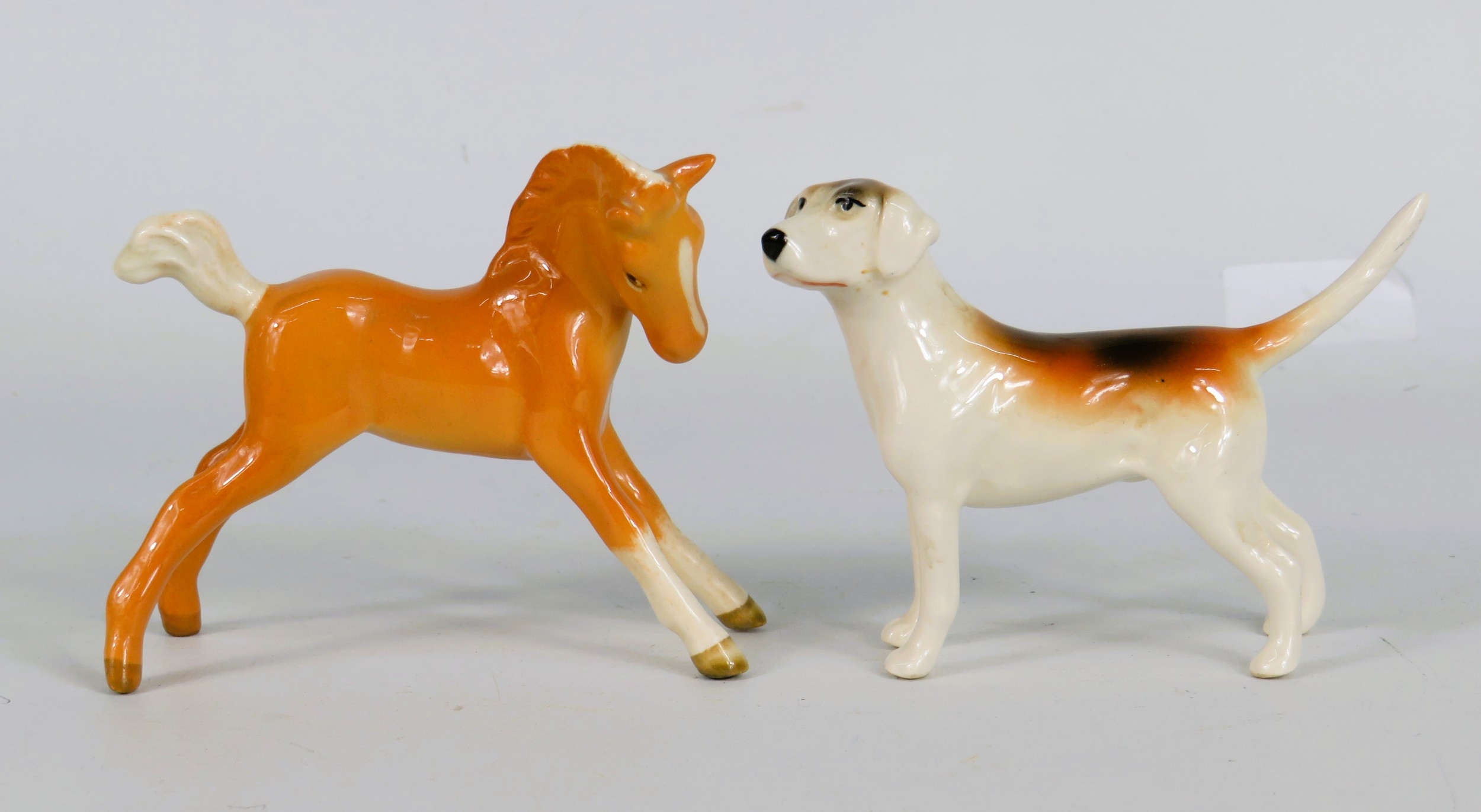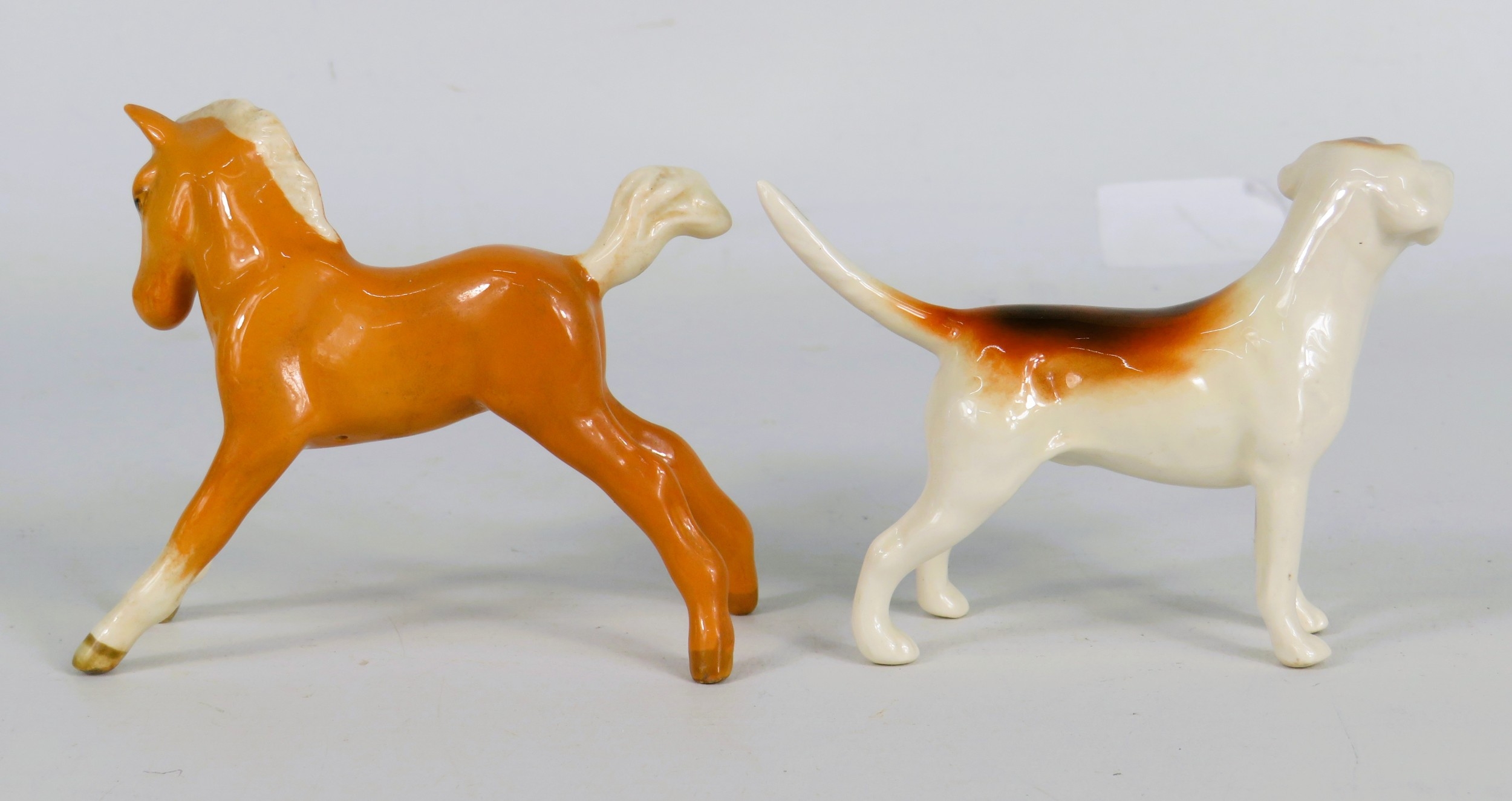 Two Small Beswick Animal Figurines - Foal & Hound Dog - Height 8cm