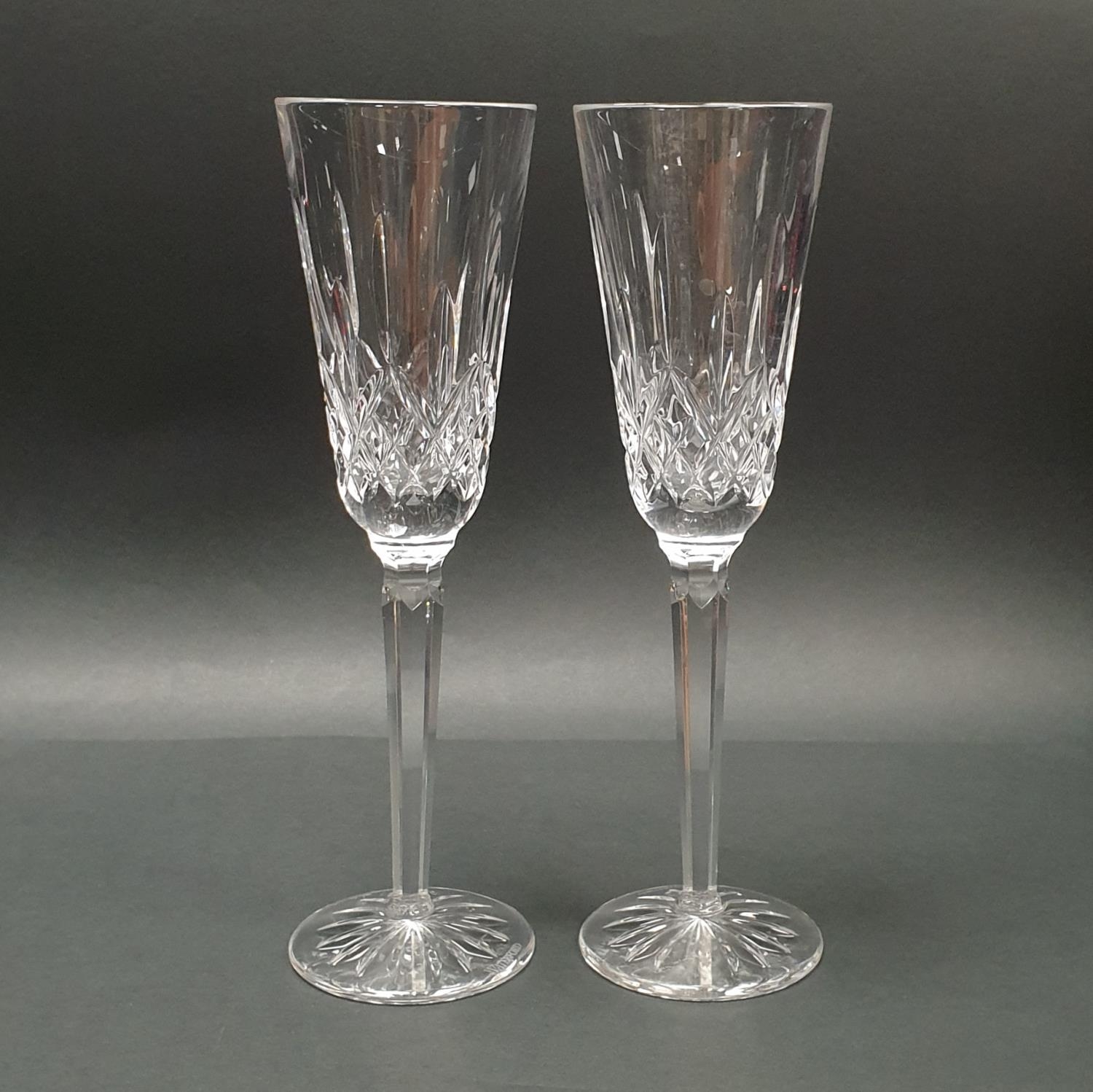 Pair of Waterford Crystal Lismore Champagne Flutes