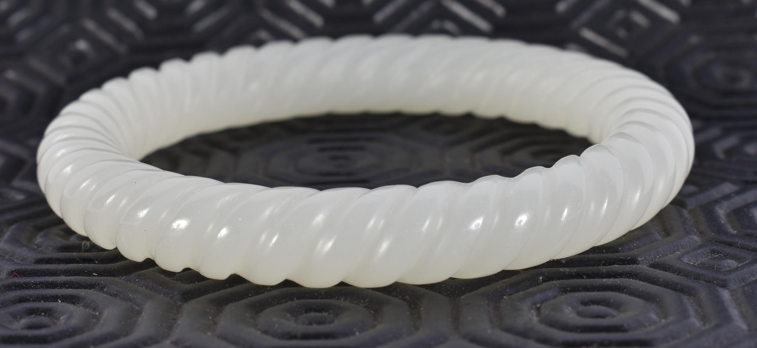 A CHINESE JADE BANGLE. 44 grams. 6 cm wide.