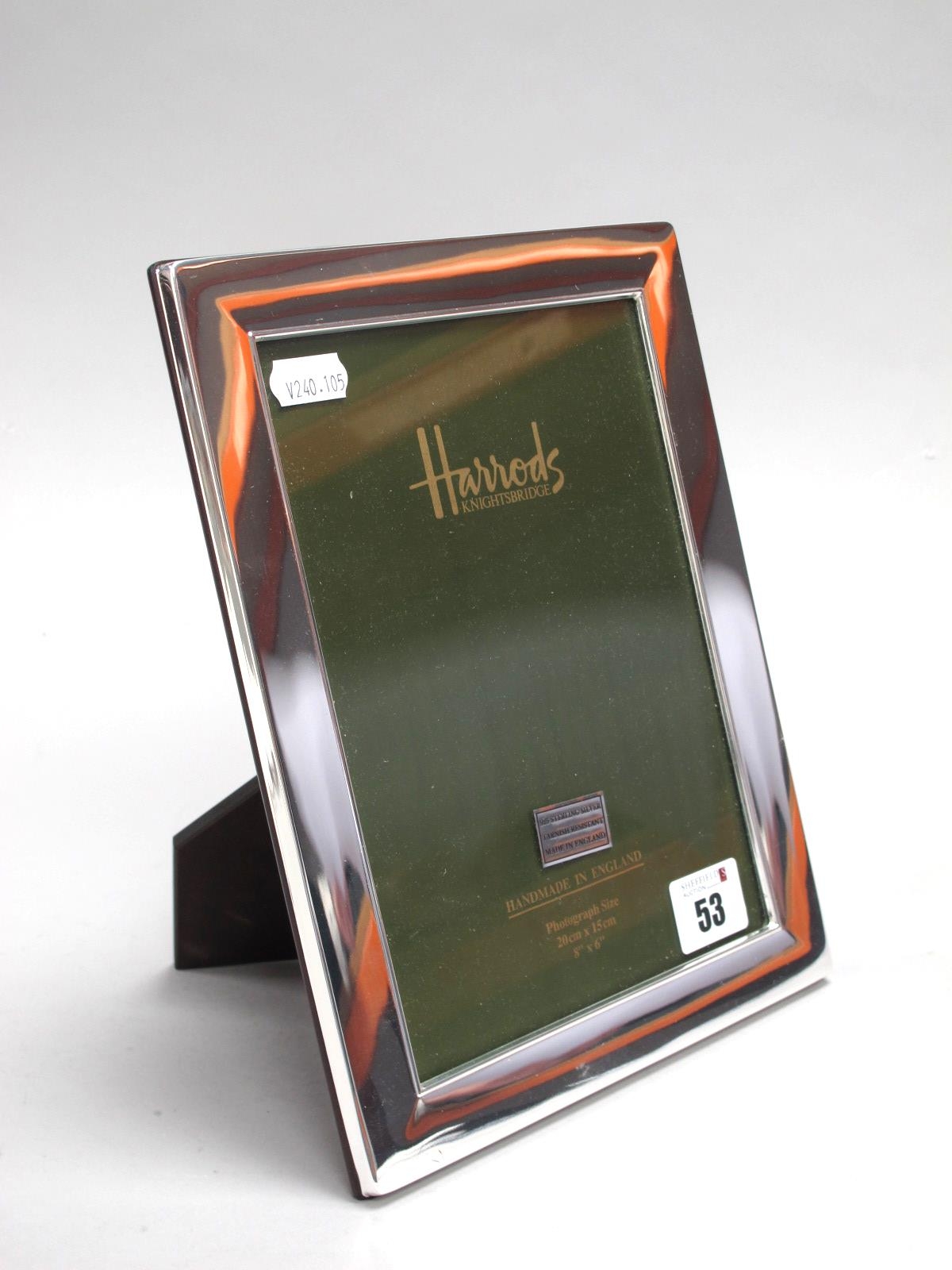 Harrods; A Hallmarked Silver Mounted Rectangular Photograph Frame, RC (Carrs), Sheffield 1998, of plain design, on wooden easel back, overall height 24.2cm.