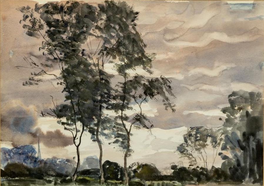"Evening Sky," watercolour, approx 11" x 14 1/2" (28cms x 37cms) unsigned, framed. (1)