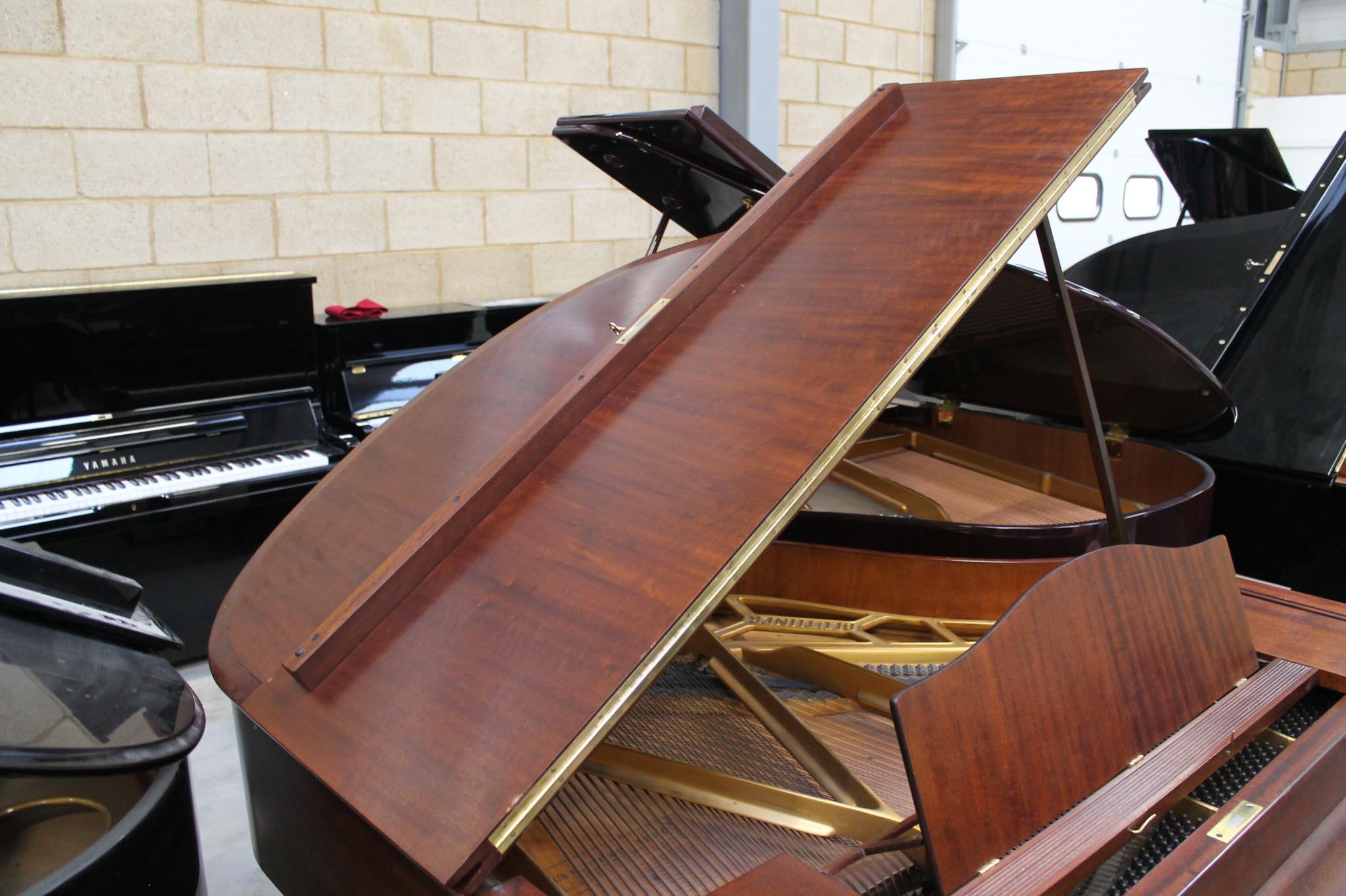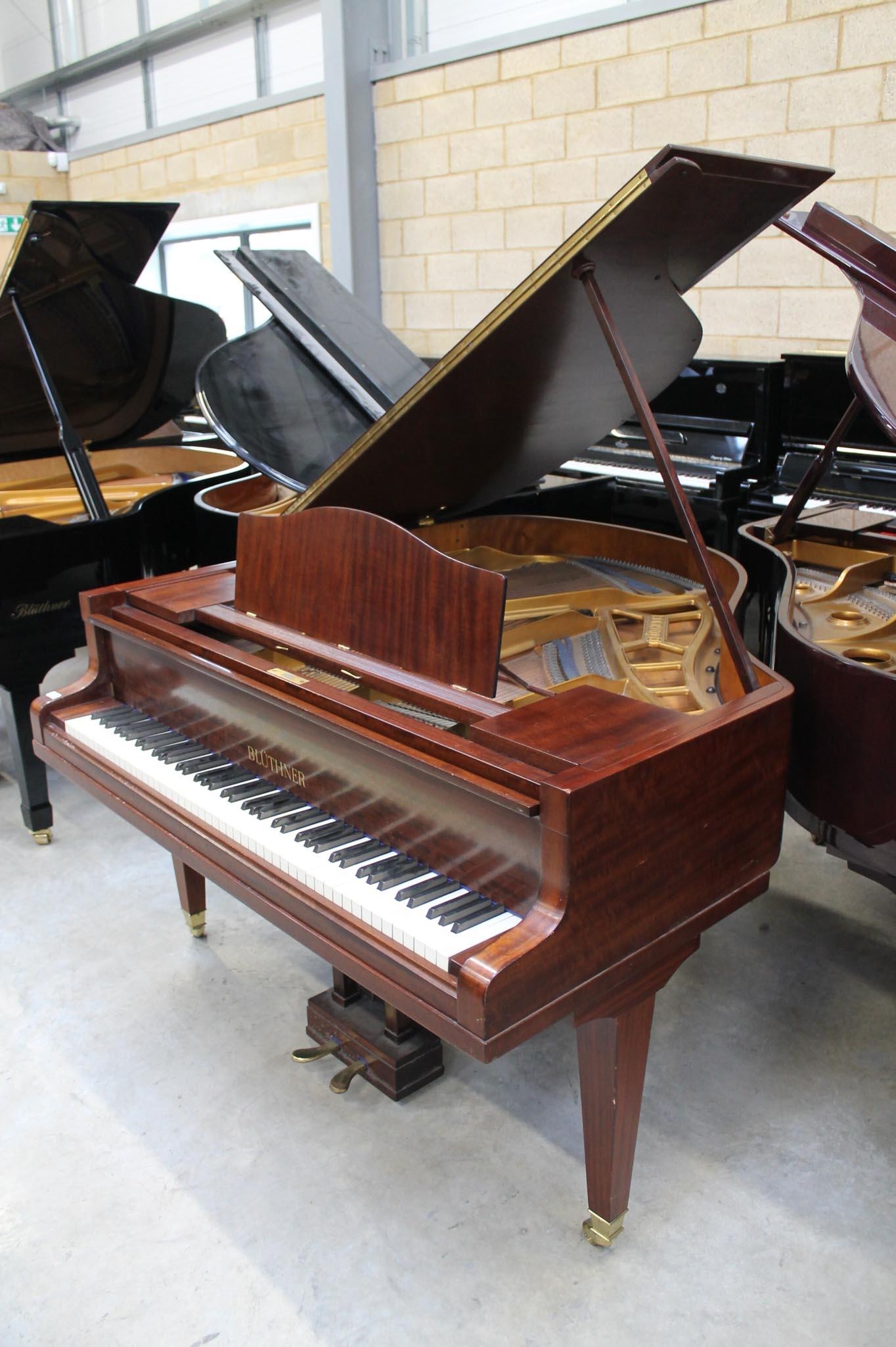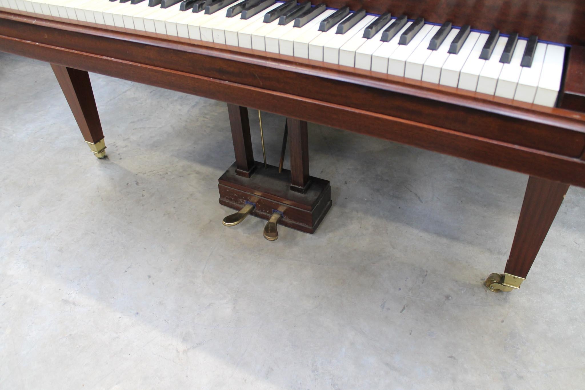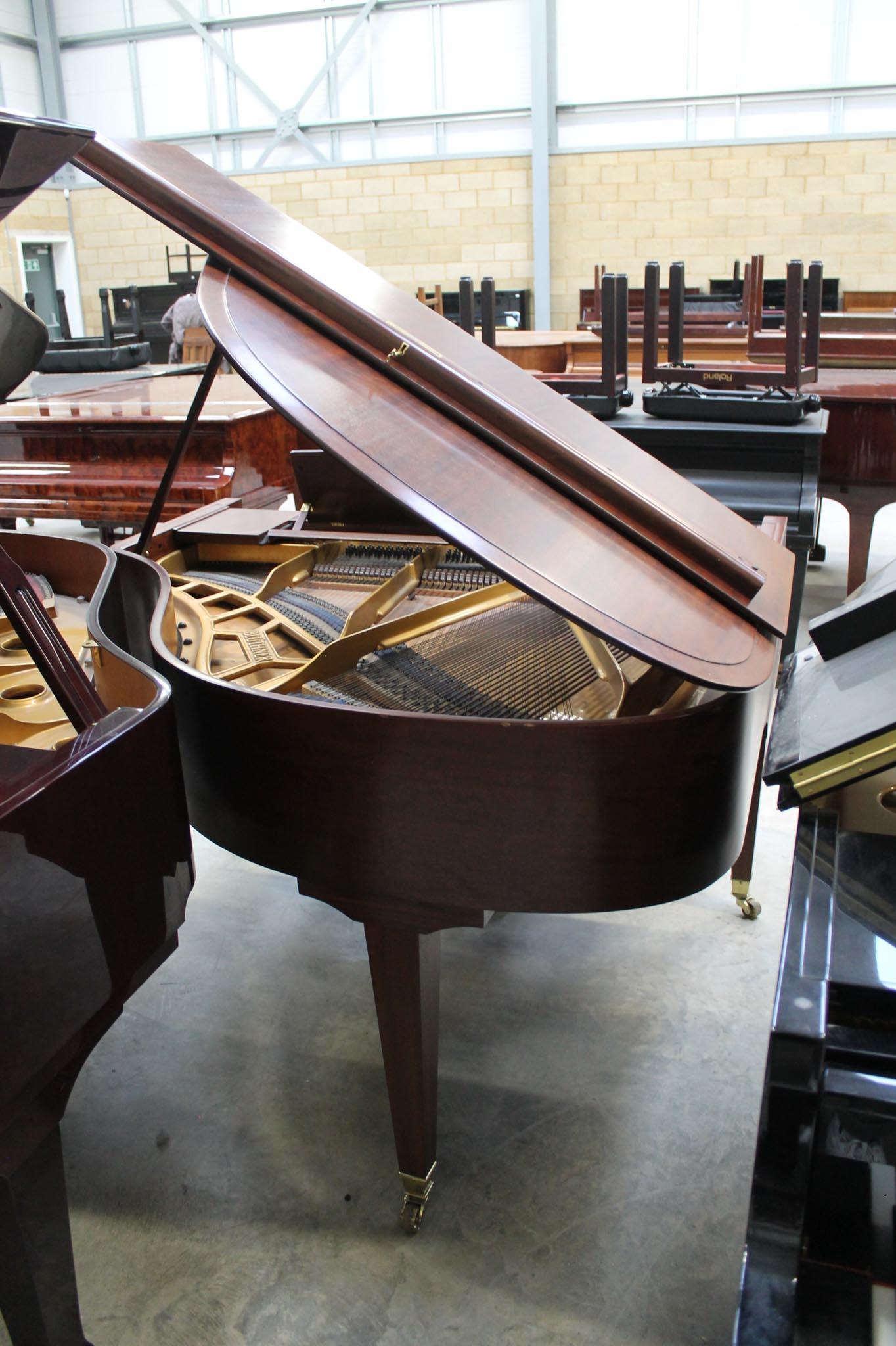 A 4ft 11in grand piano in a mahogany case on square tapered legs. AMENDMENT Is 5ft 1in.