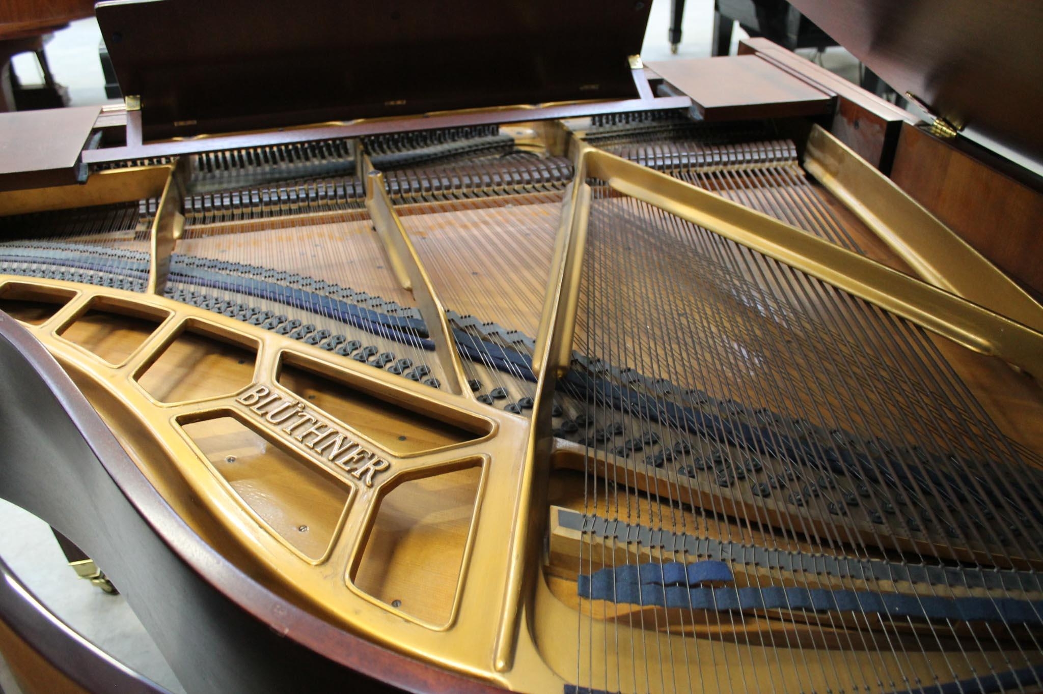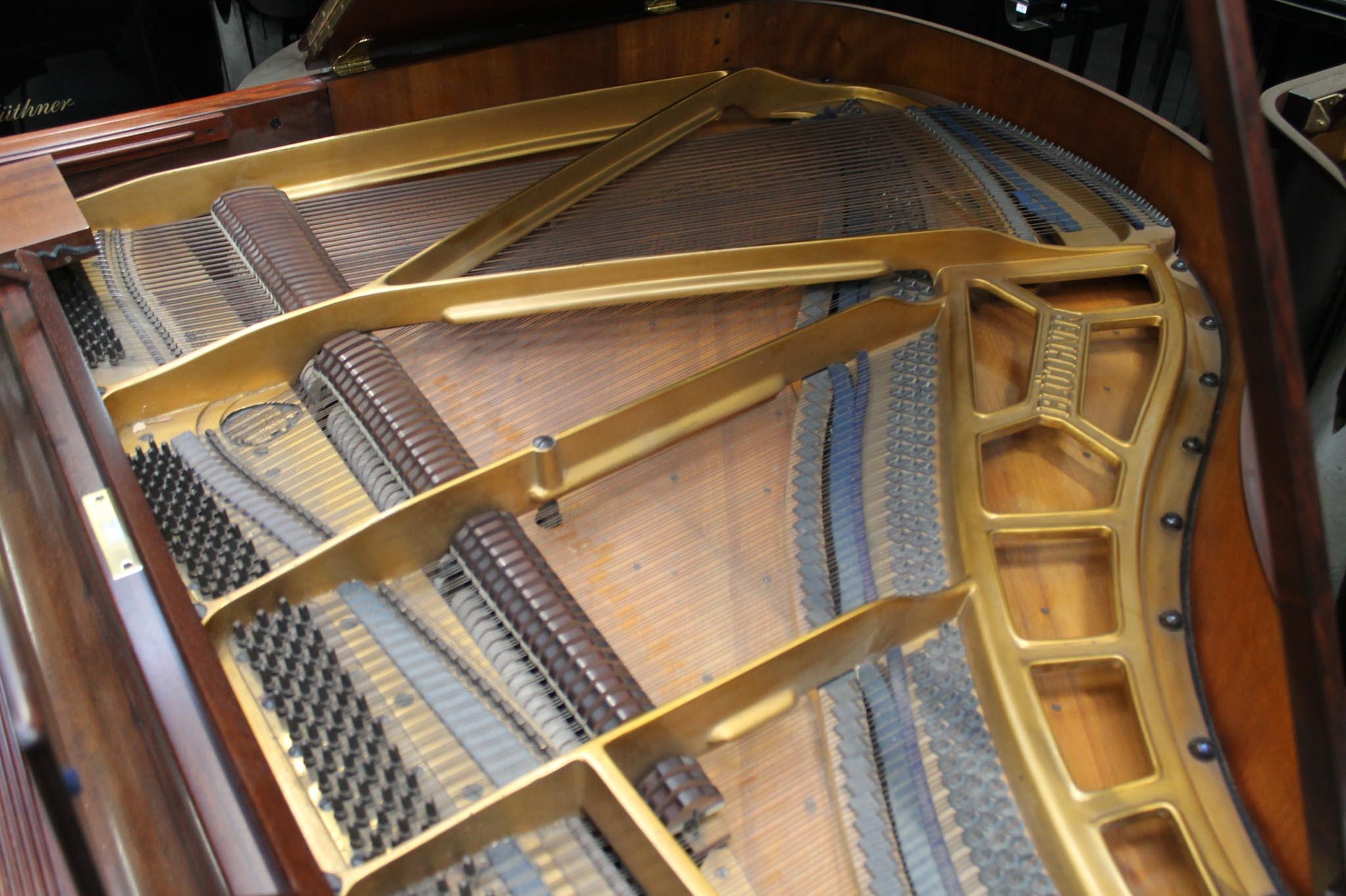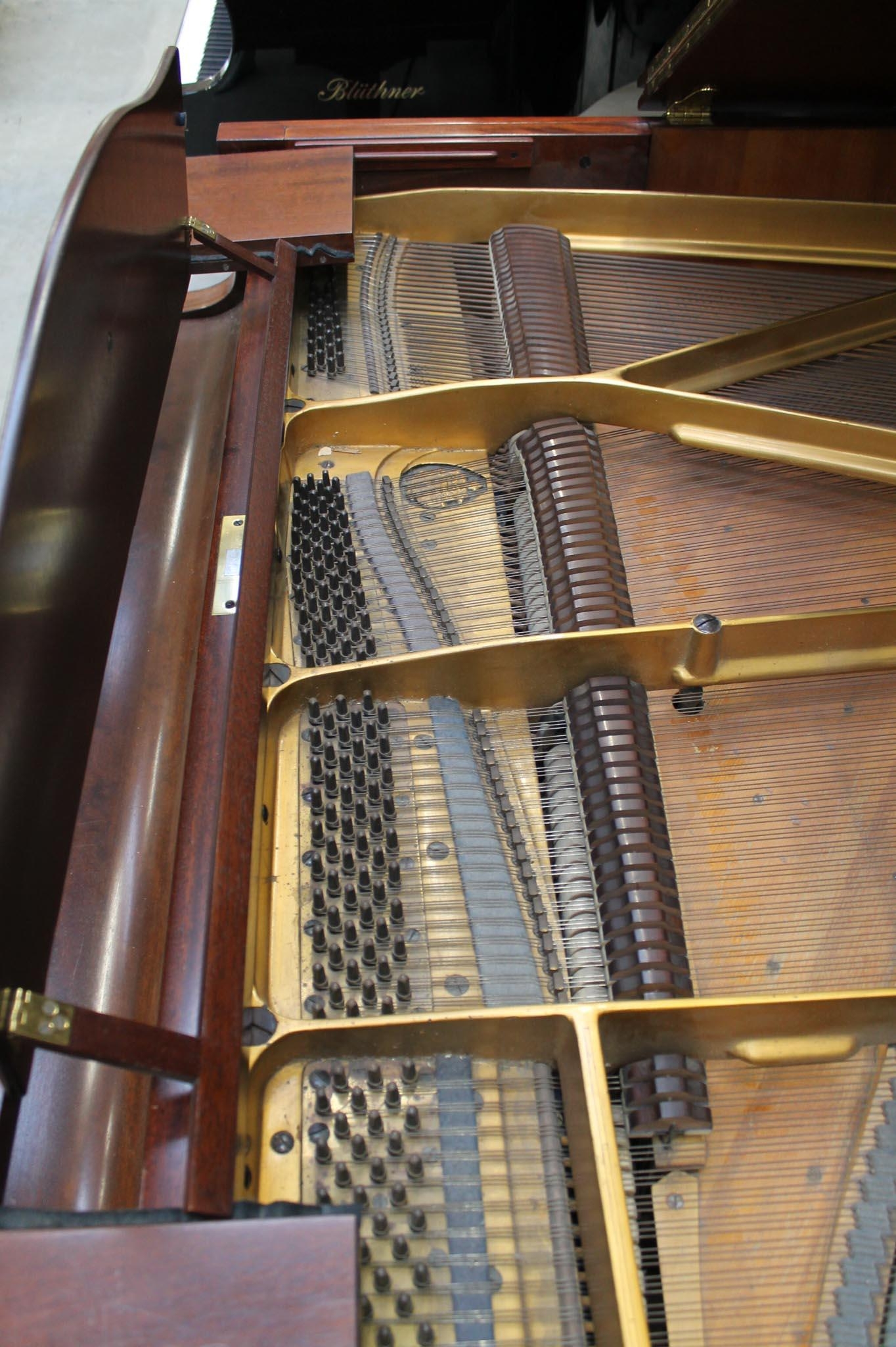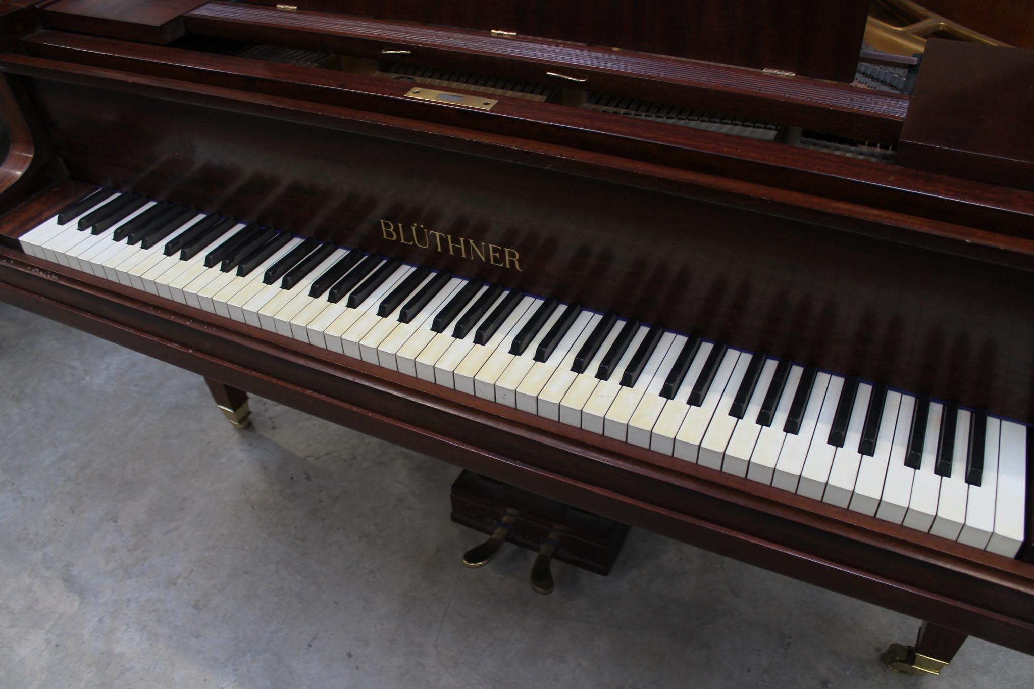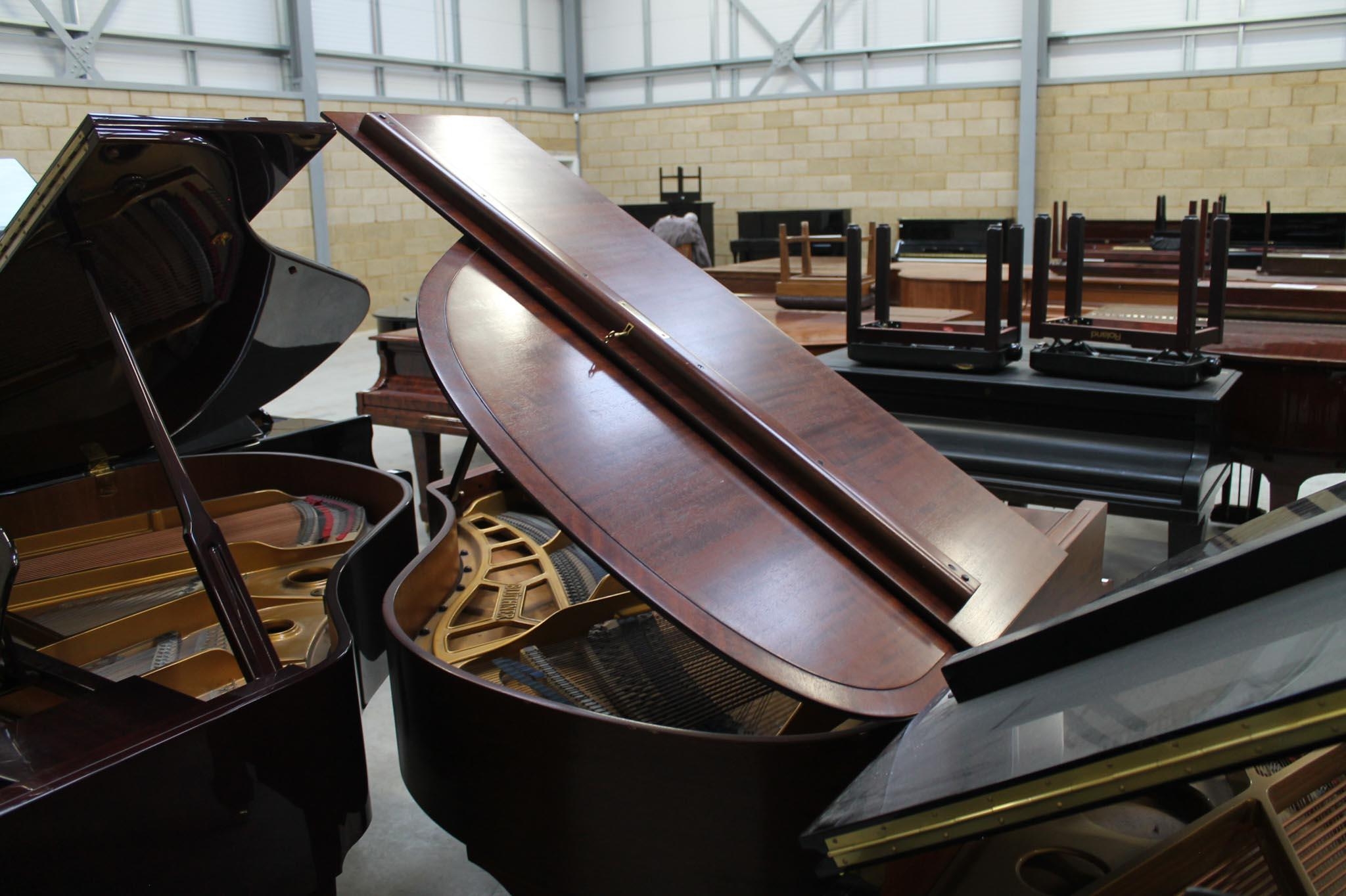 A 4ft 11in grand piano in a mahogany case on square tapered legs. AMENDMENT Is 5ft 1in.