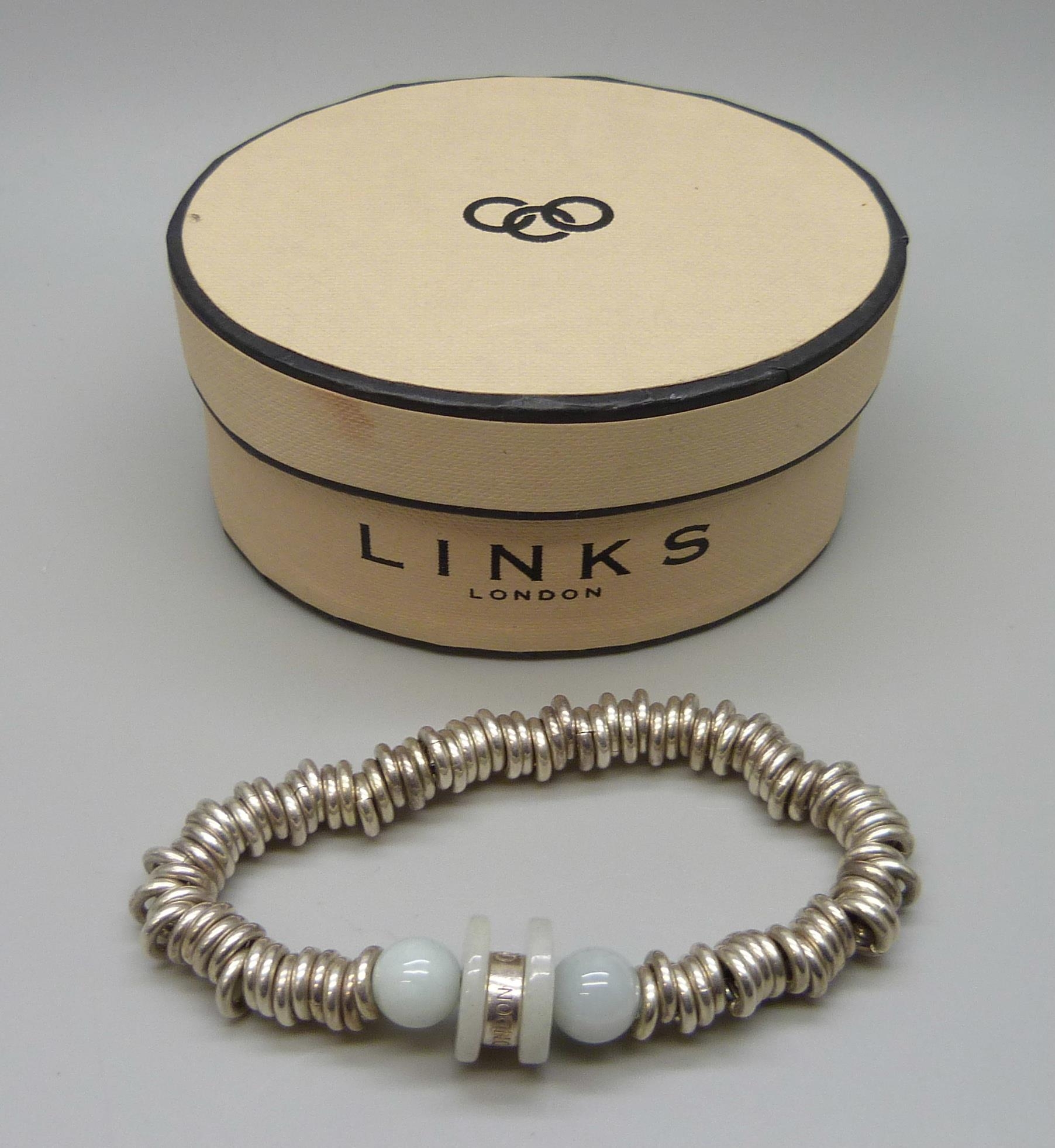 A Links of London silver and jade bracelet, 57g, boxed