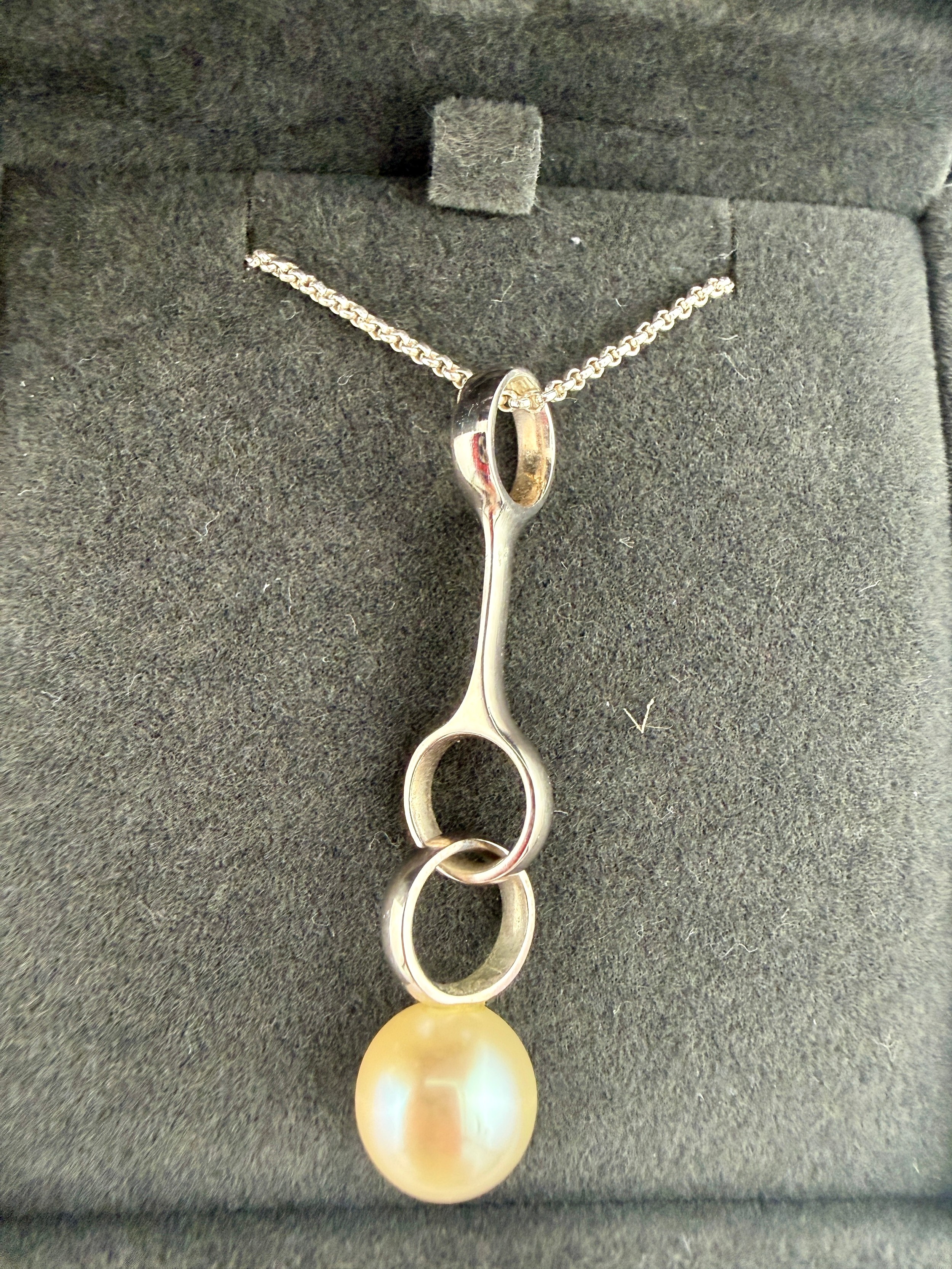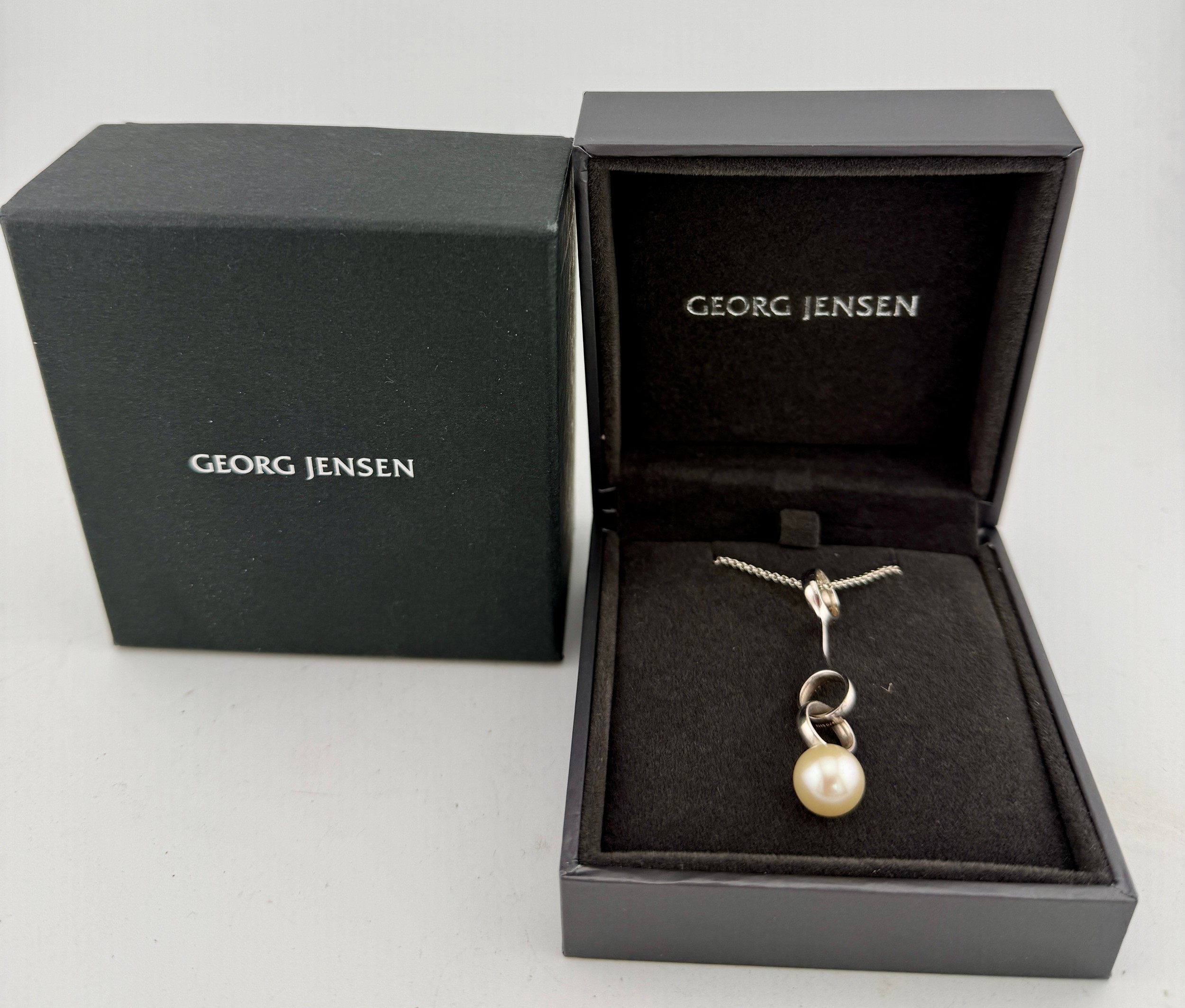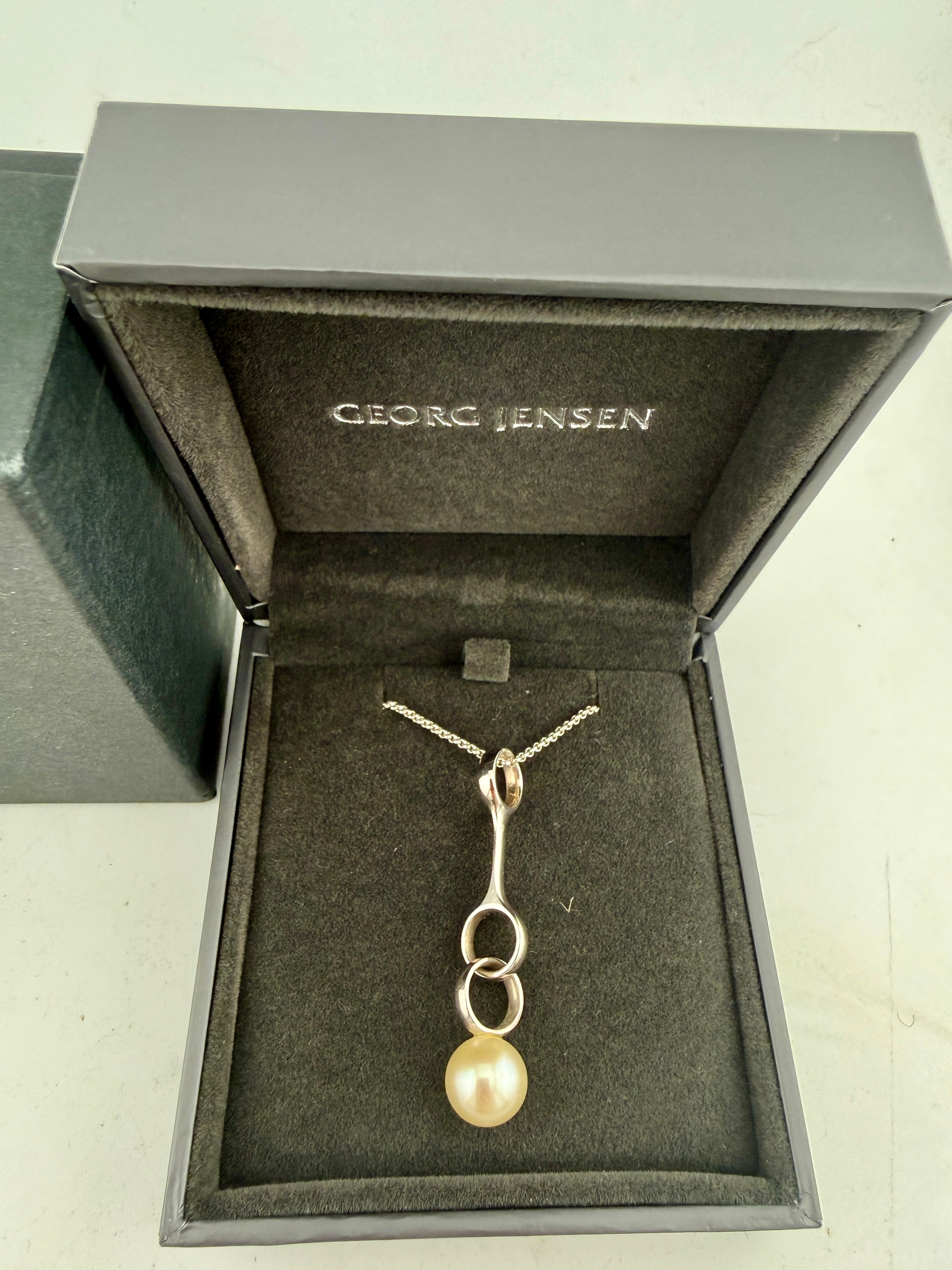 A Georg Jensen silver sphere pearl pendant and earring set. Model 473B.