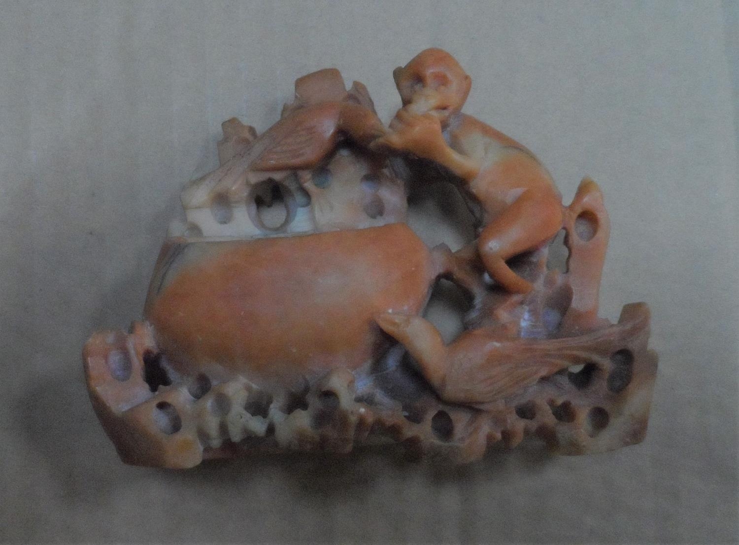 Fine antique Chinese soapstone carving of a monkey,10 cm long