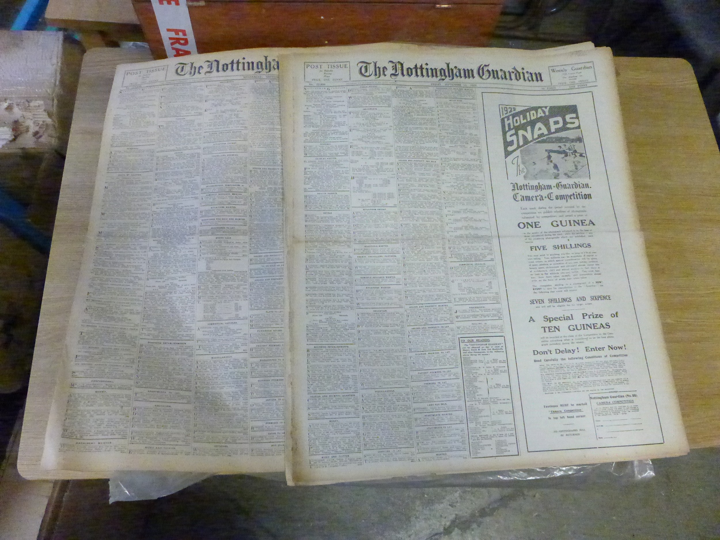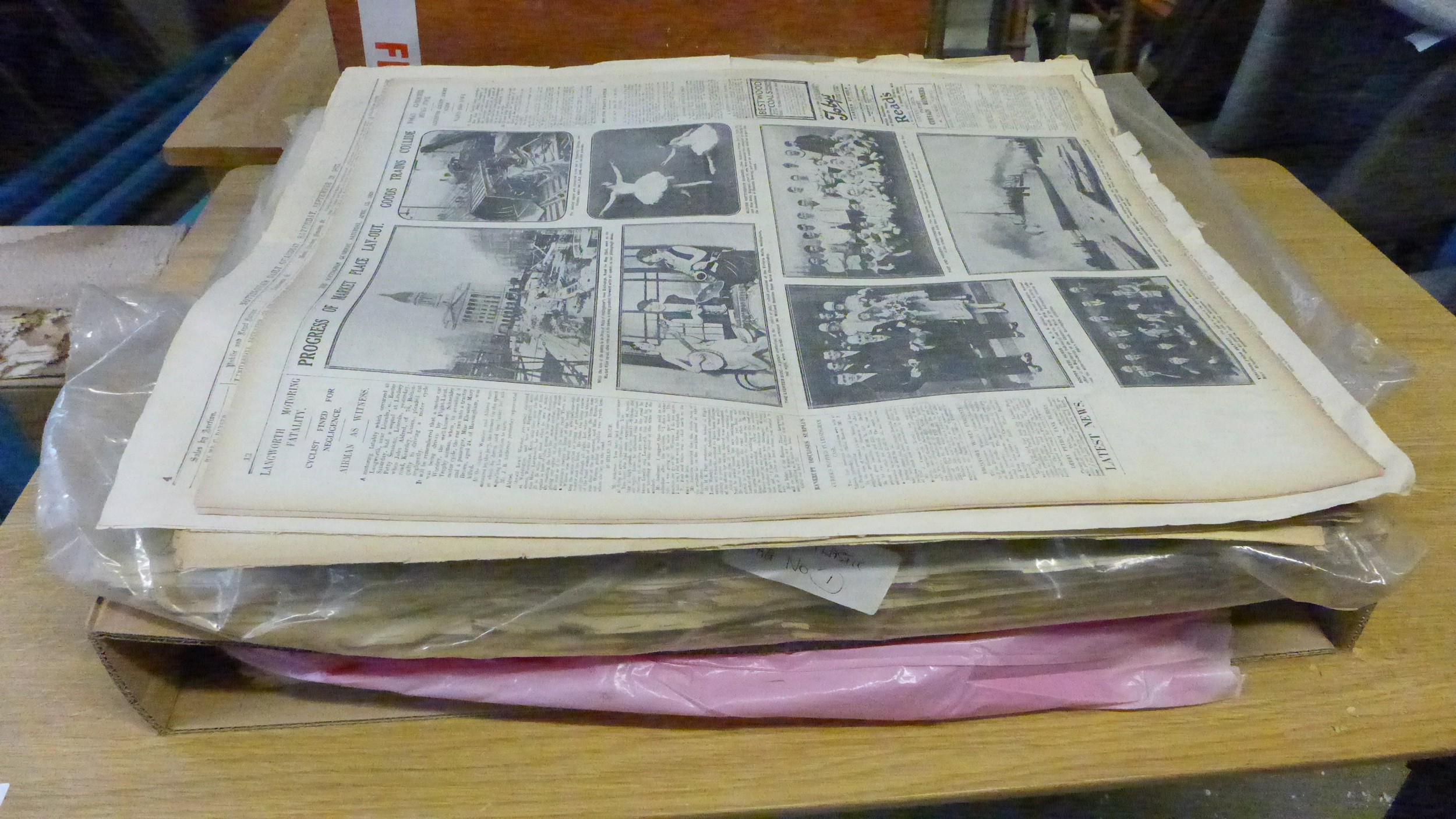 A box of Nottinghamshire Guardian and other local Nottinghamshire papers, circa. 1920's/30's (see inventory box #2)
