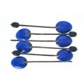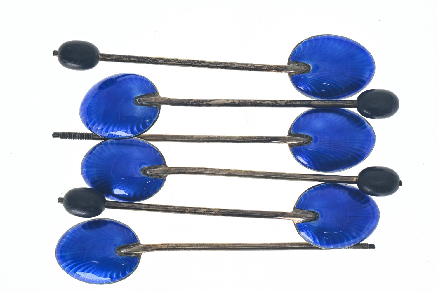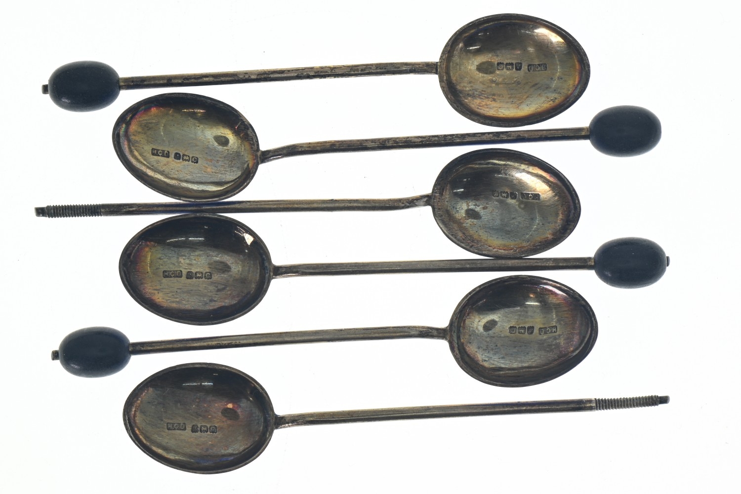 Set of George V silver and enamel coffee bean spoons, Henry Clifford Davis, Birmingham 1927, gross weight 50 grams, two coffee bean finials deficient