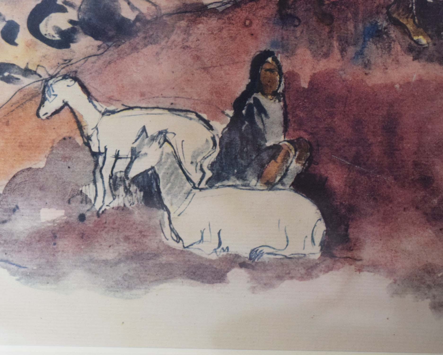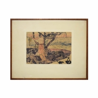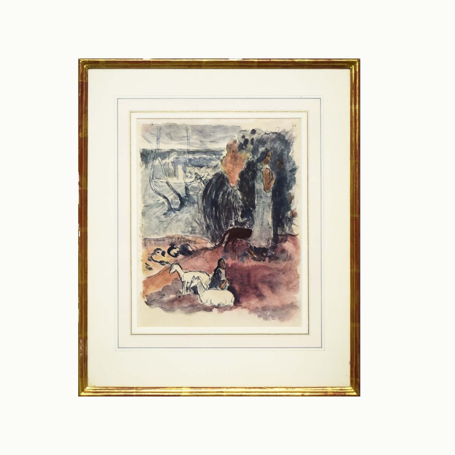 PAUL GAUGUIN (FRENCH 1848-1903). FIGURES ET ANIMAUX DANS UN PAYSAGE. lithograph, 48cm x 41cm, framed.