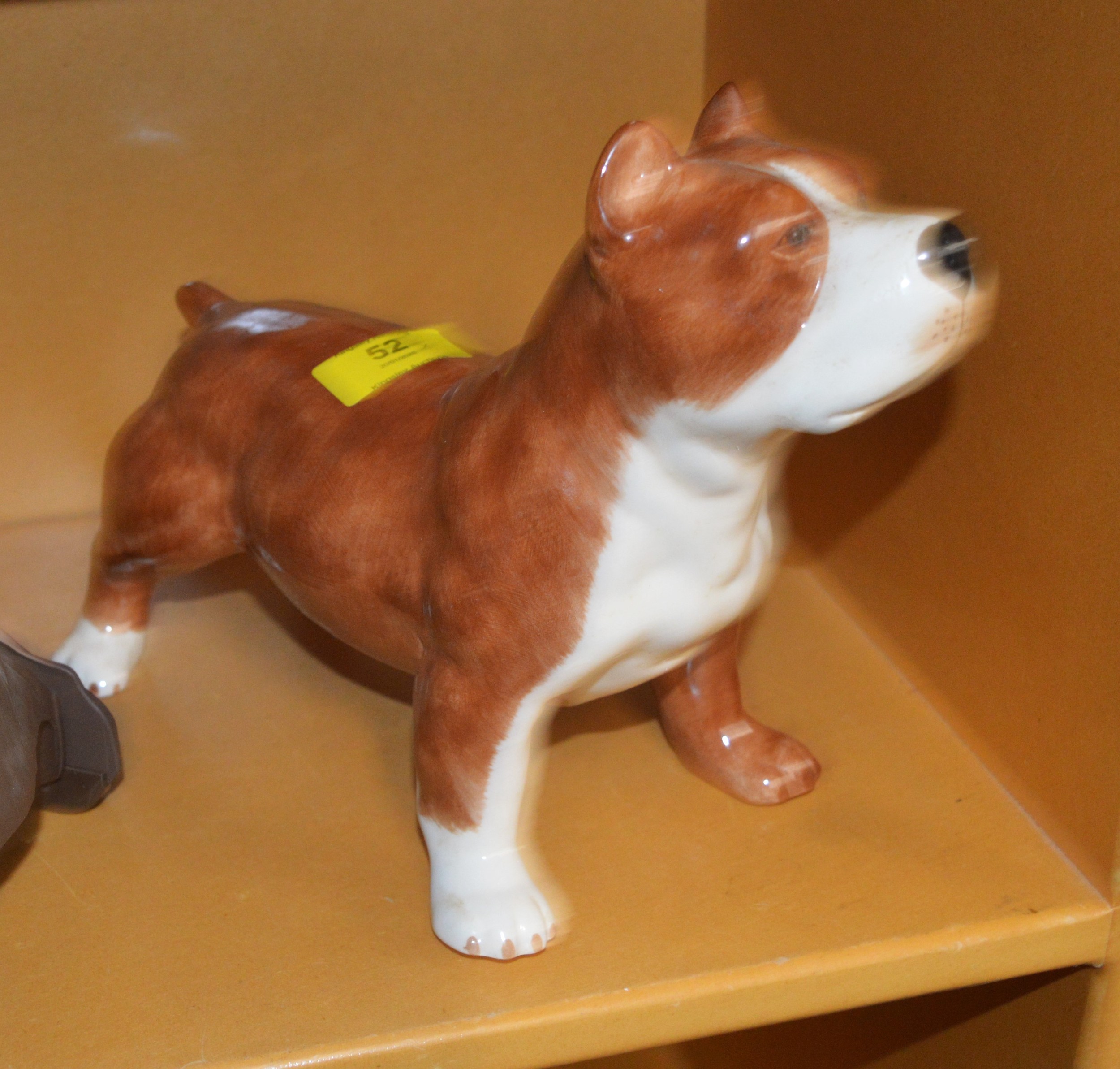 Ceramic Figure of a Staffordshire Bull Terrier. Approx. 8" high c 10" Long in form of a moneybox