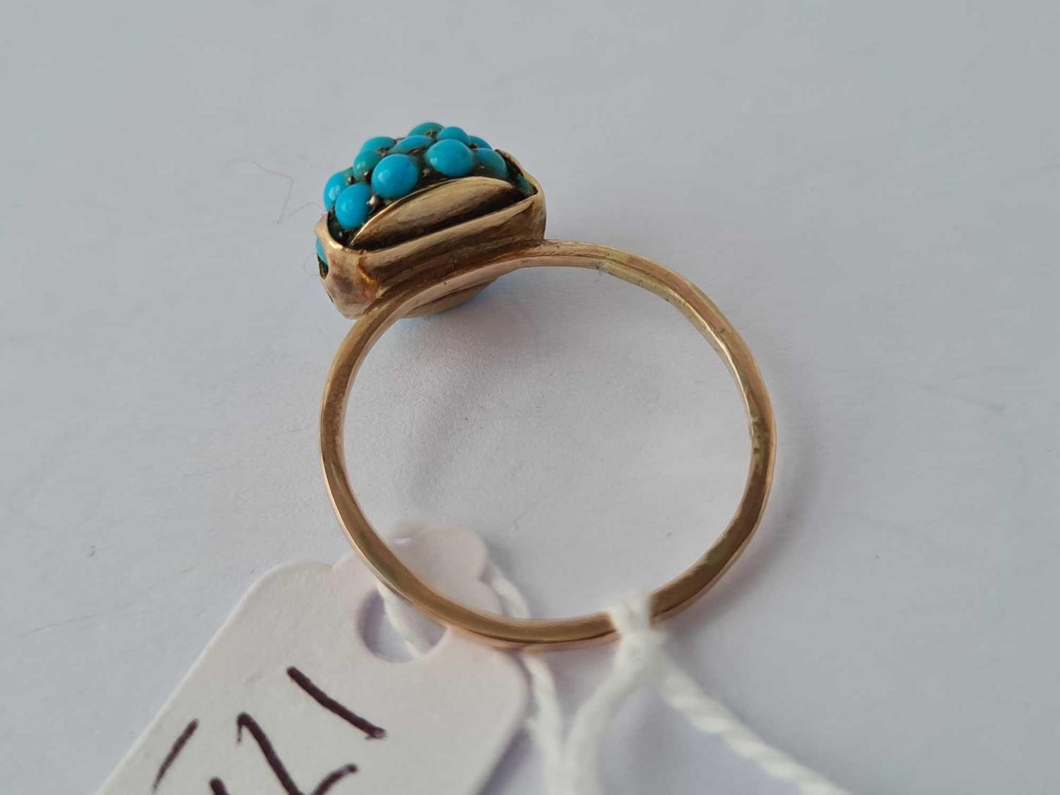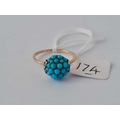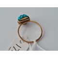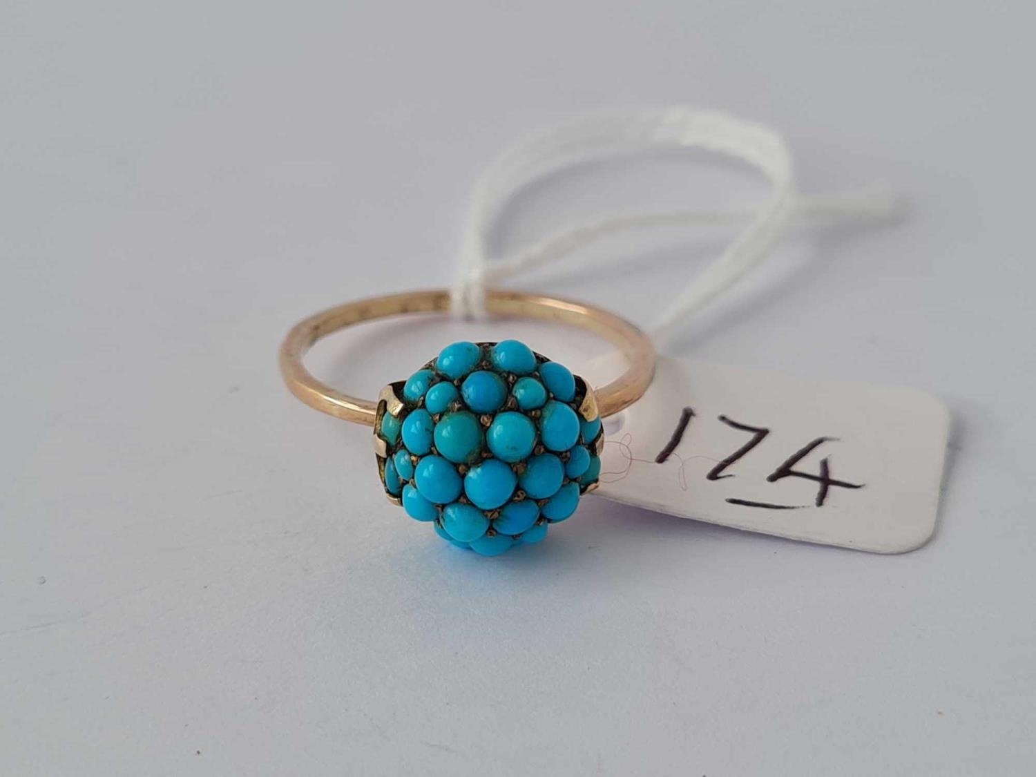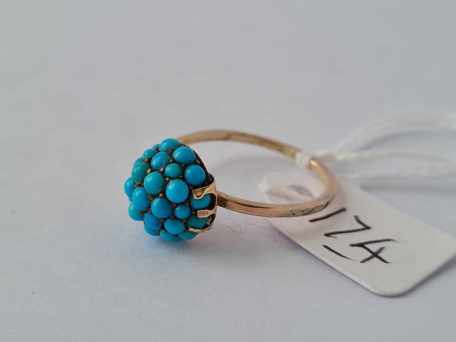 An antique turquoise dome top 9ct (unmarked) ring size P 2.9g inc