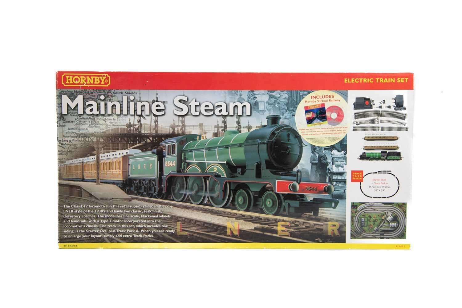 Hornby OO gauge "Mainline Steam" boxed set A boxed set (R1032) comprising B12 LNER class locomotive No. 8544 plus two LNER teak controllers, a controller and various track. Contents appear as new.