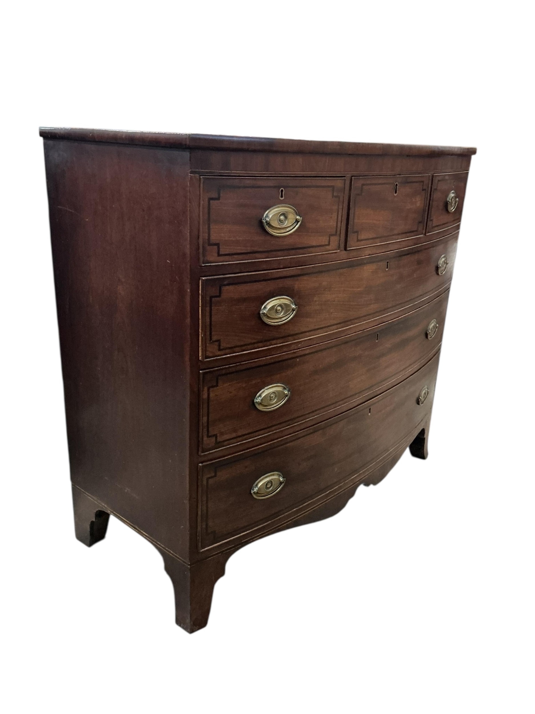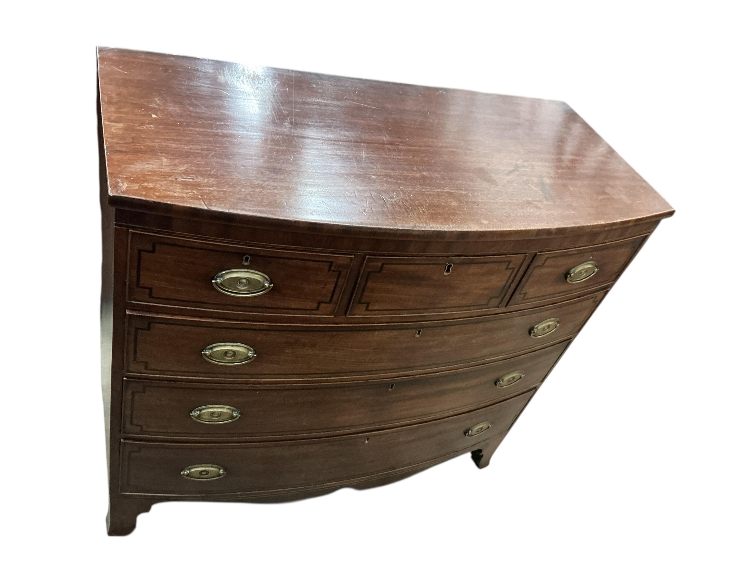 A George IV ebony banded mahogany bowfront chest, width 117cm, depth 55cm, height 107cm