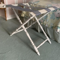 together with a single chair, each with a Sugan panelled seat raised on turned legs joined by turned stretcher rails. 104 cm. high; 65 cm. wide; 50 cm. deep