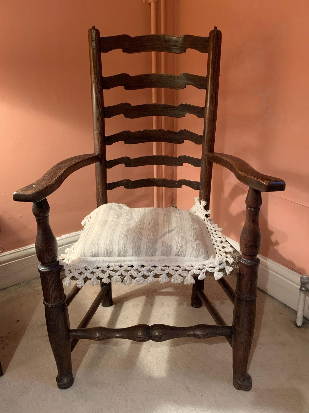 19TH-CENTURY OAK PROVINCIAL LADDER BACK ARMCHAIR