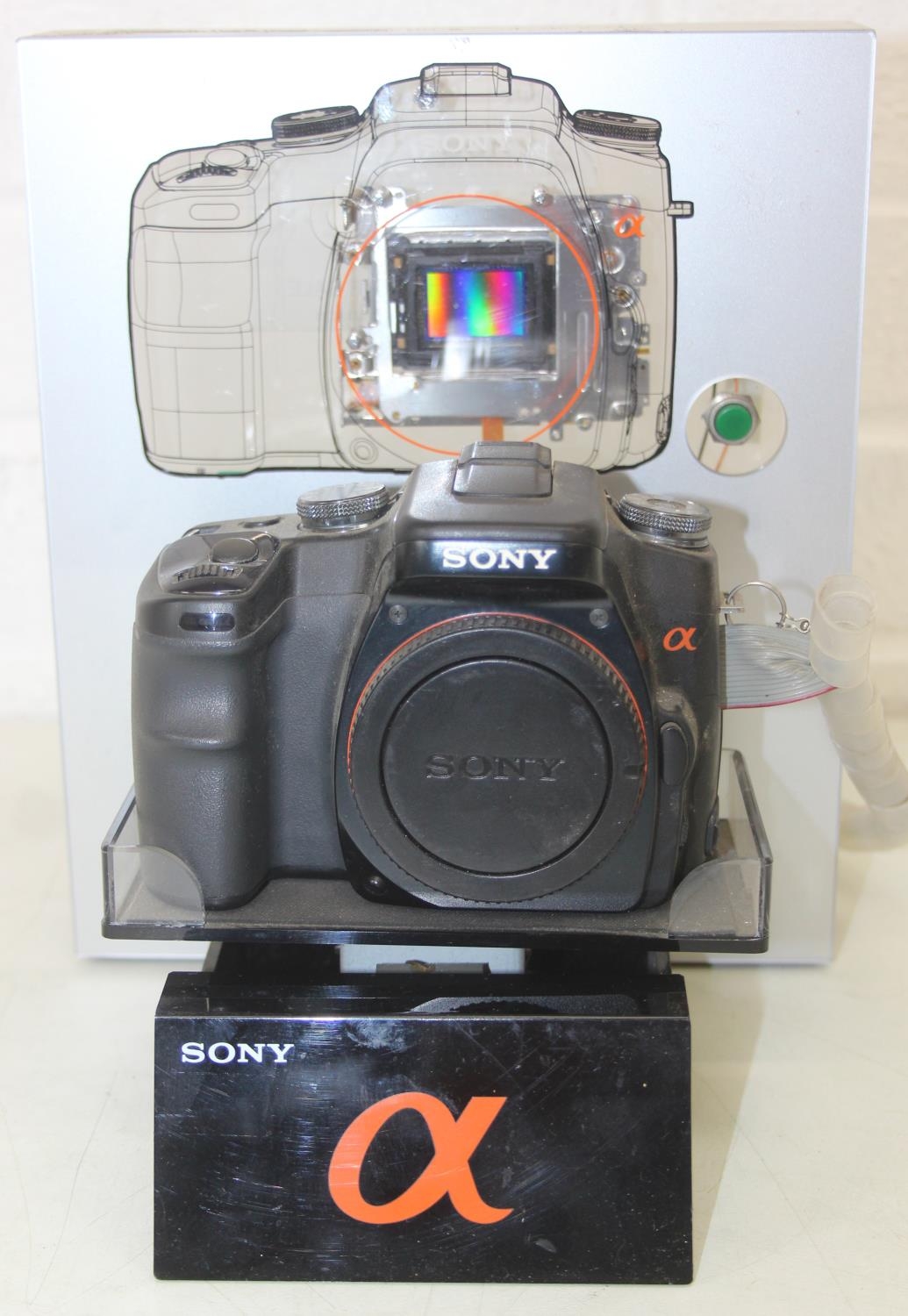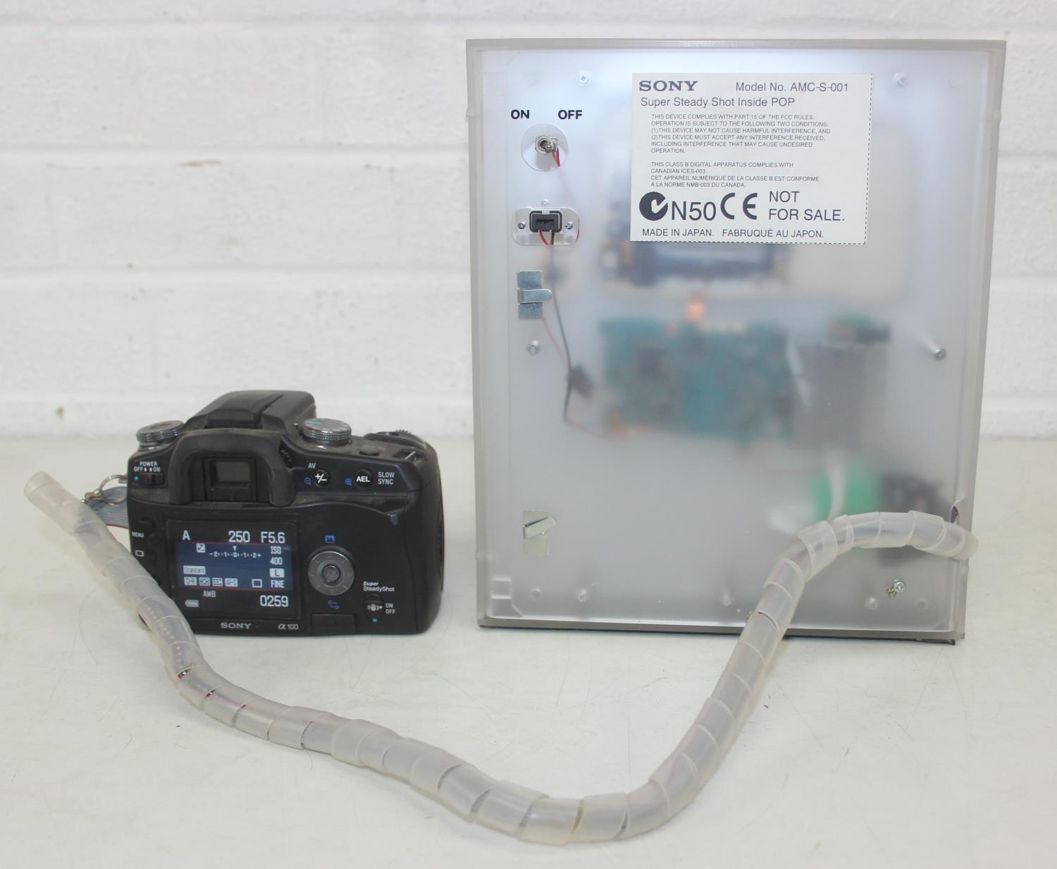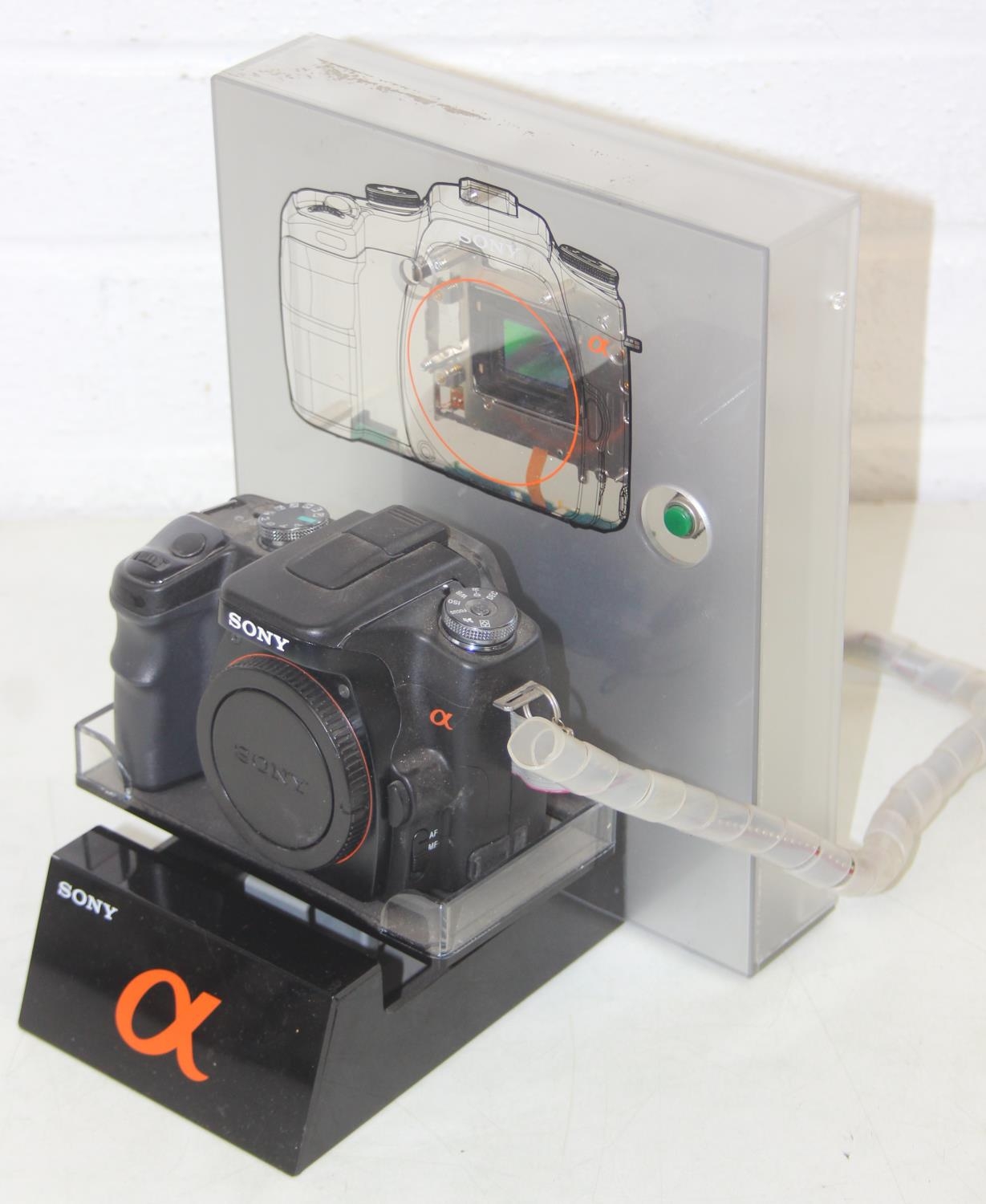 Sony Model AMC-S-001 camera with shop display advertising and security stand, 24cm tall