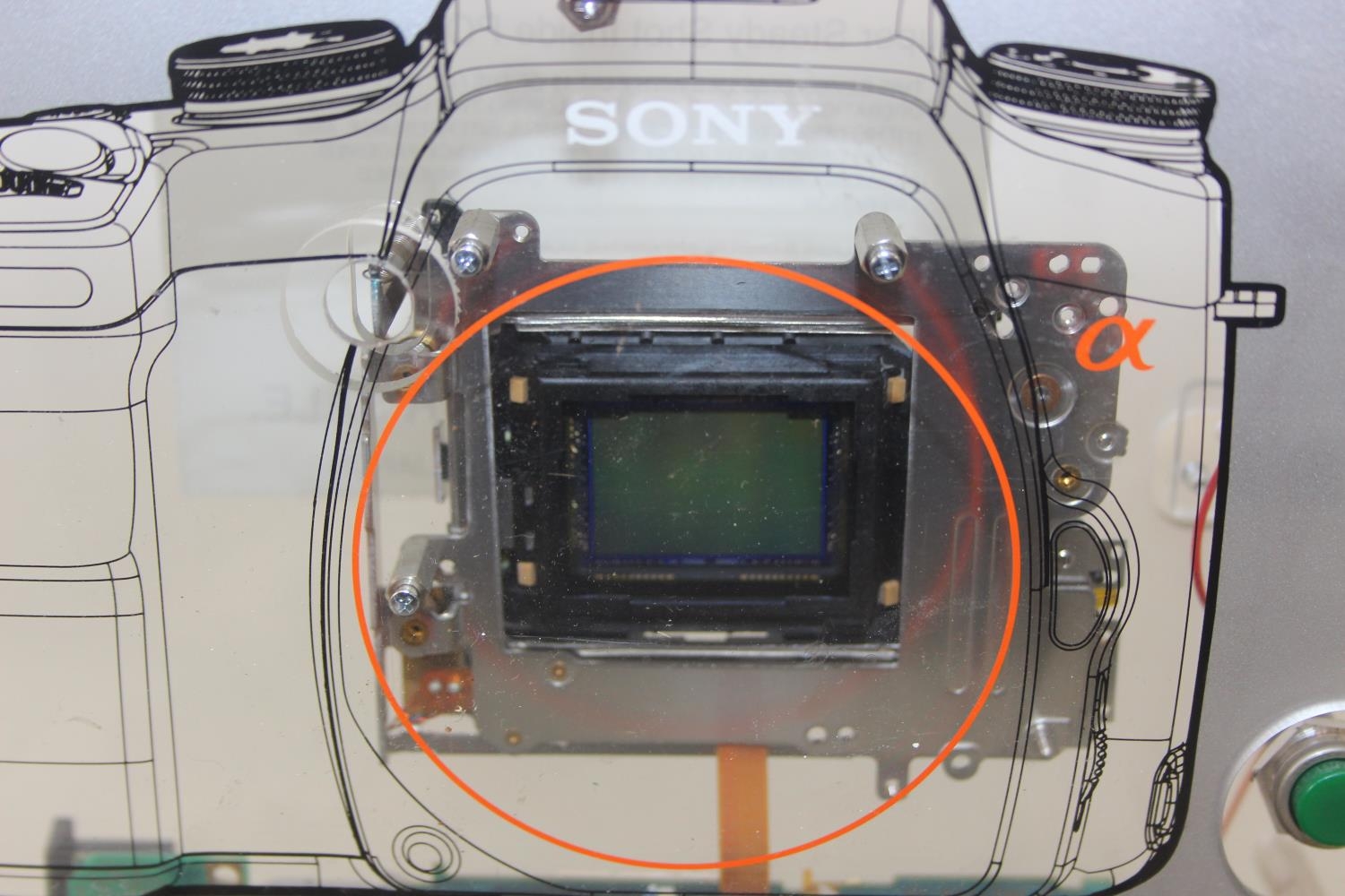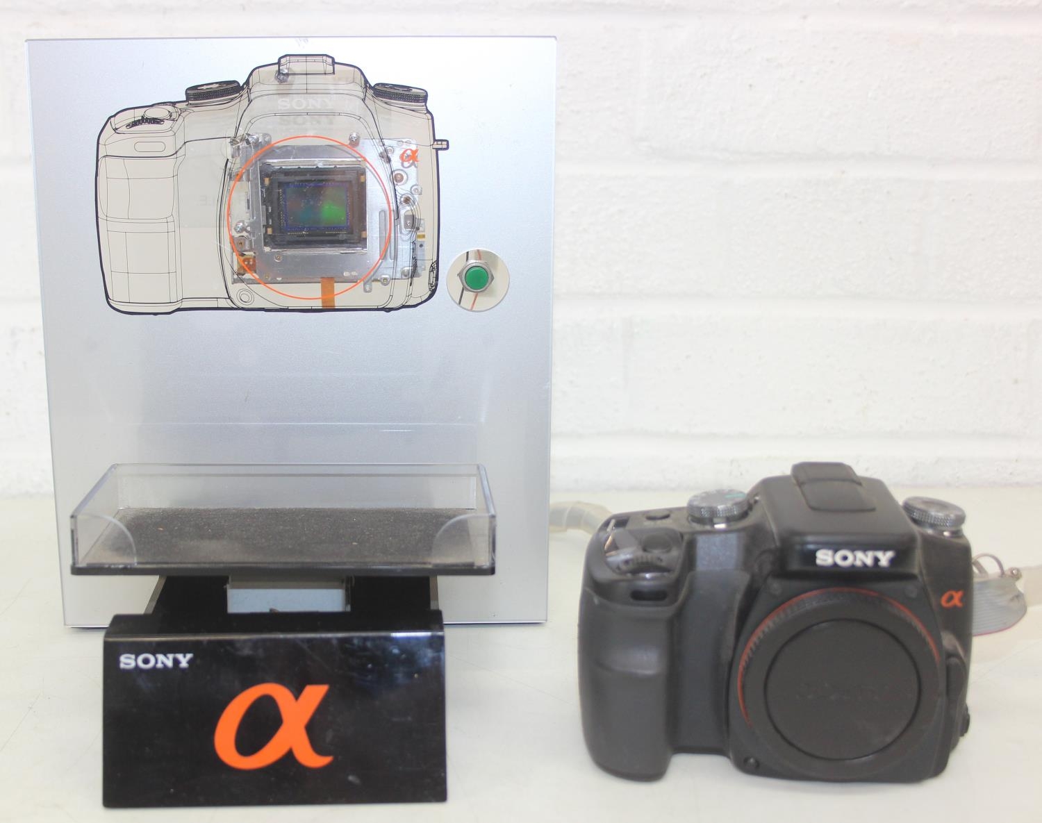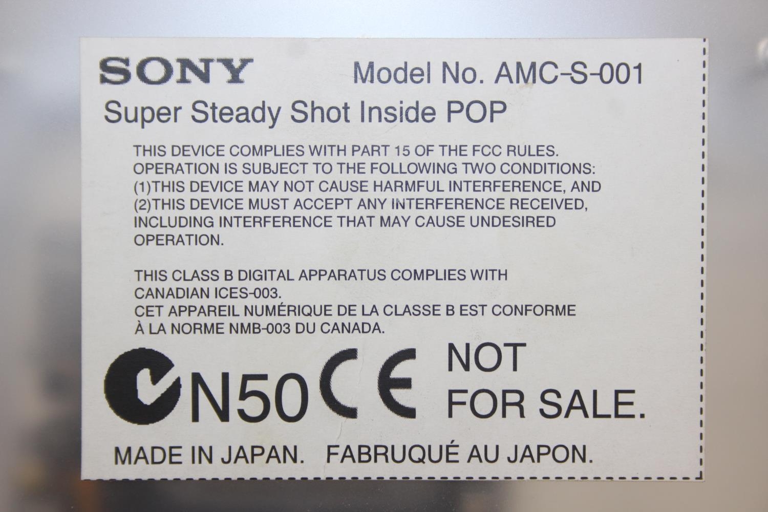 Sony Model AMC-S-001 camera with shop display advertising and security stand, 24cm tall