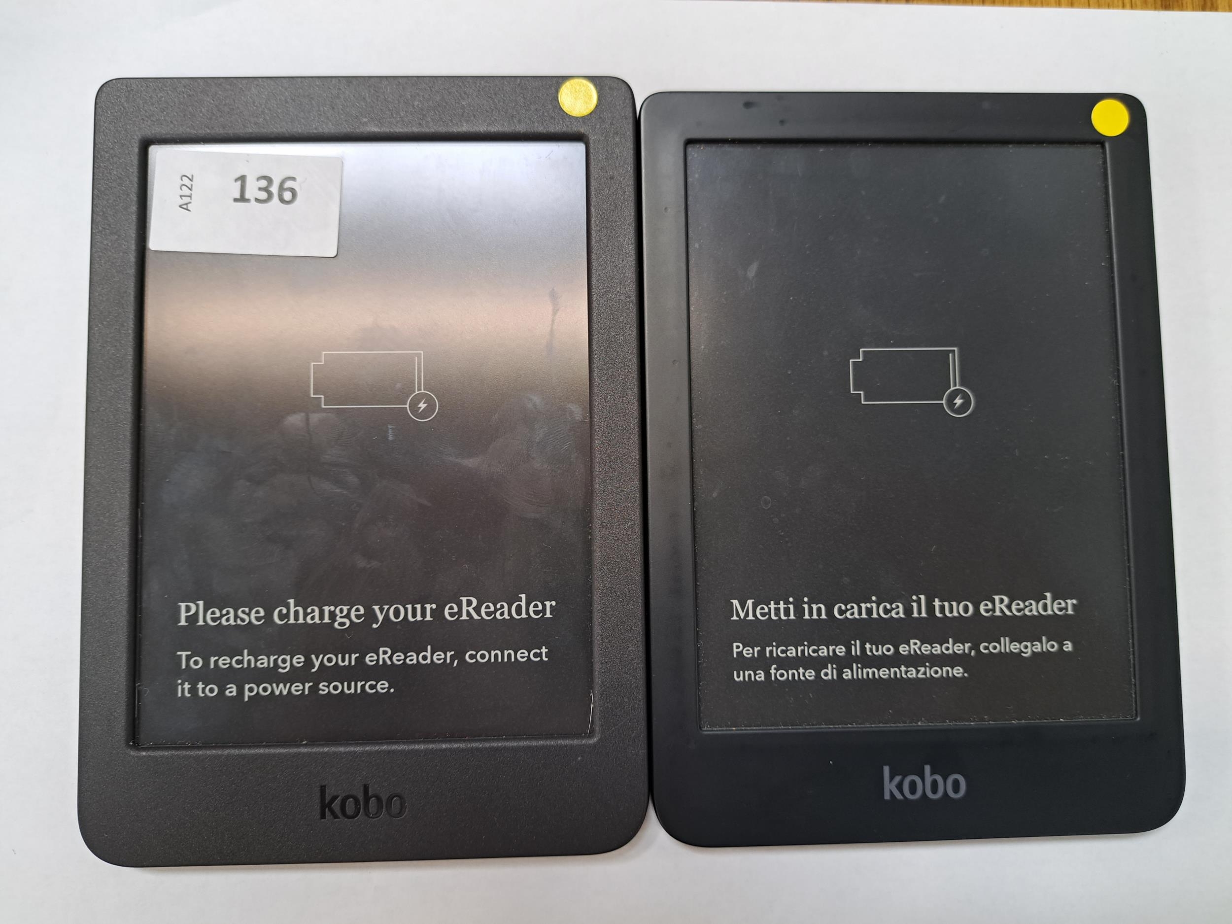 comprising a Kobo Clara HD, serial number N249890269756; and a Kobo Nia, serial number N3060A0116558 (2)