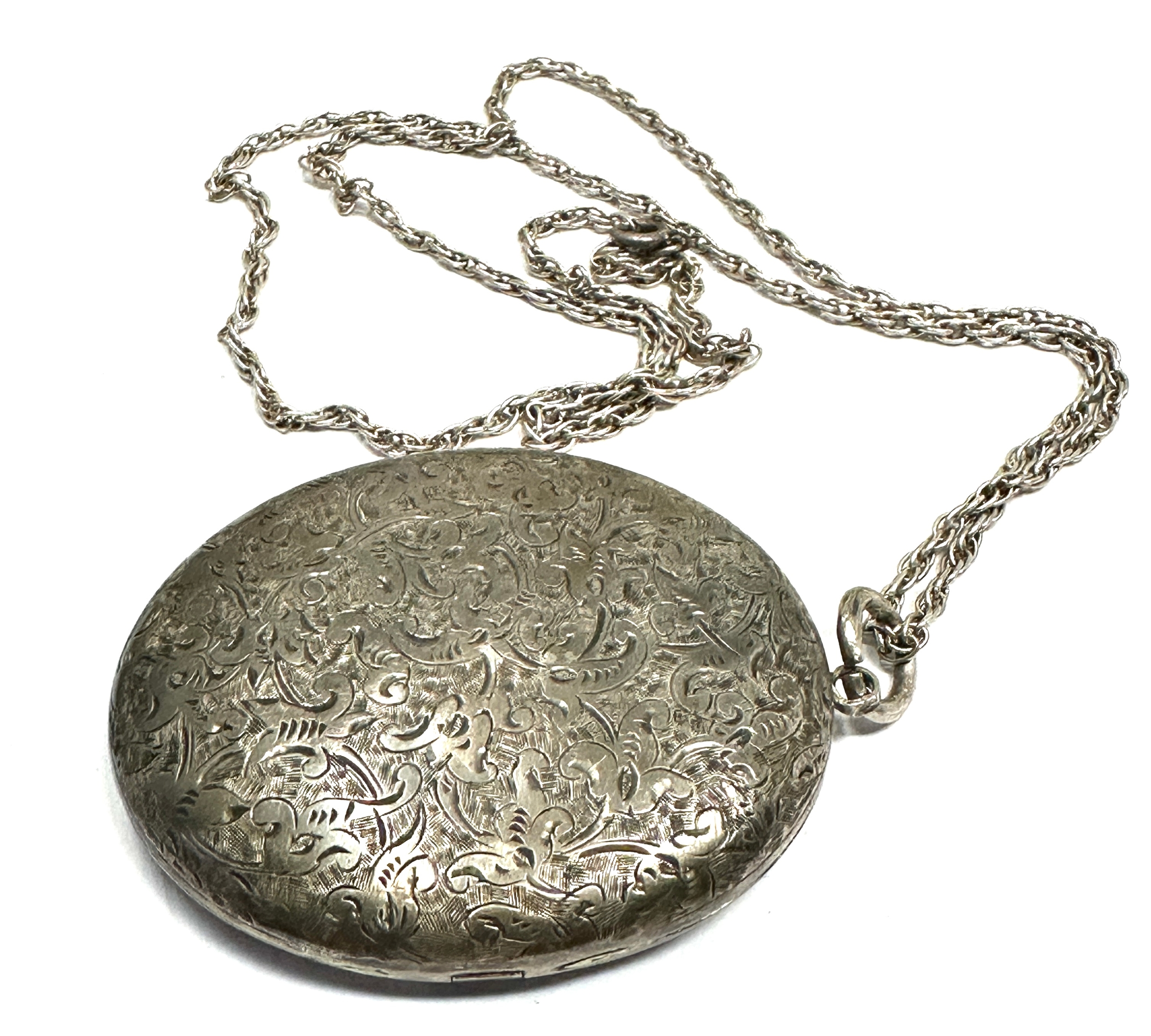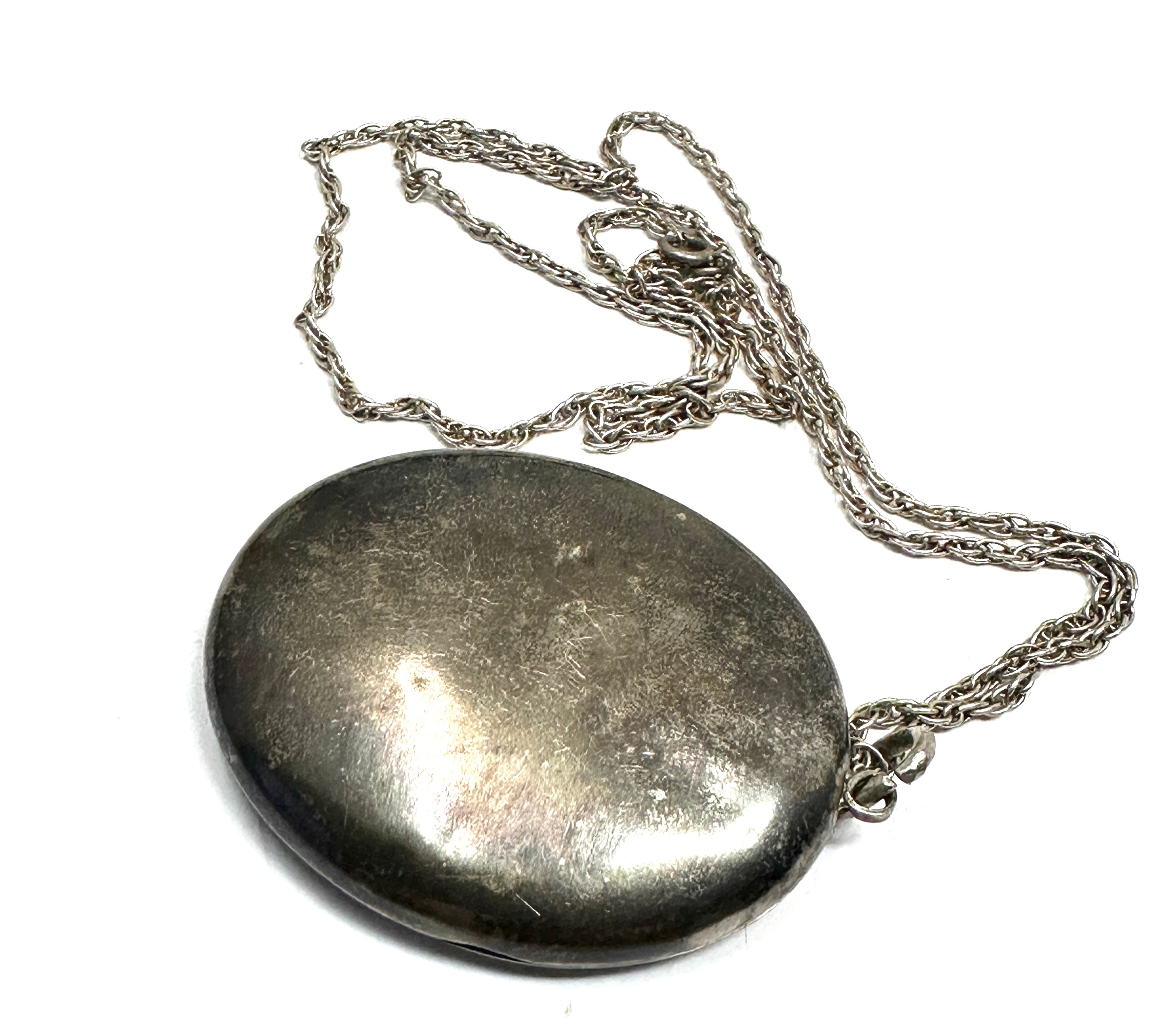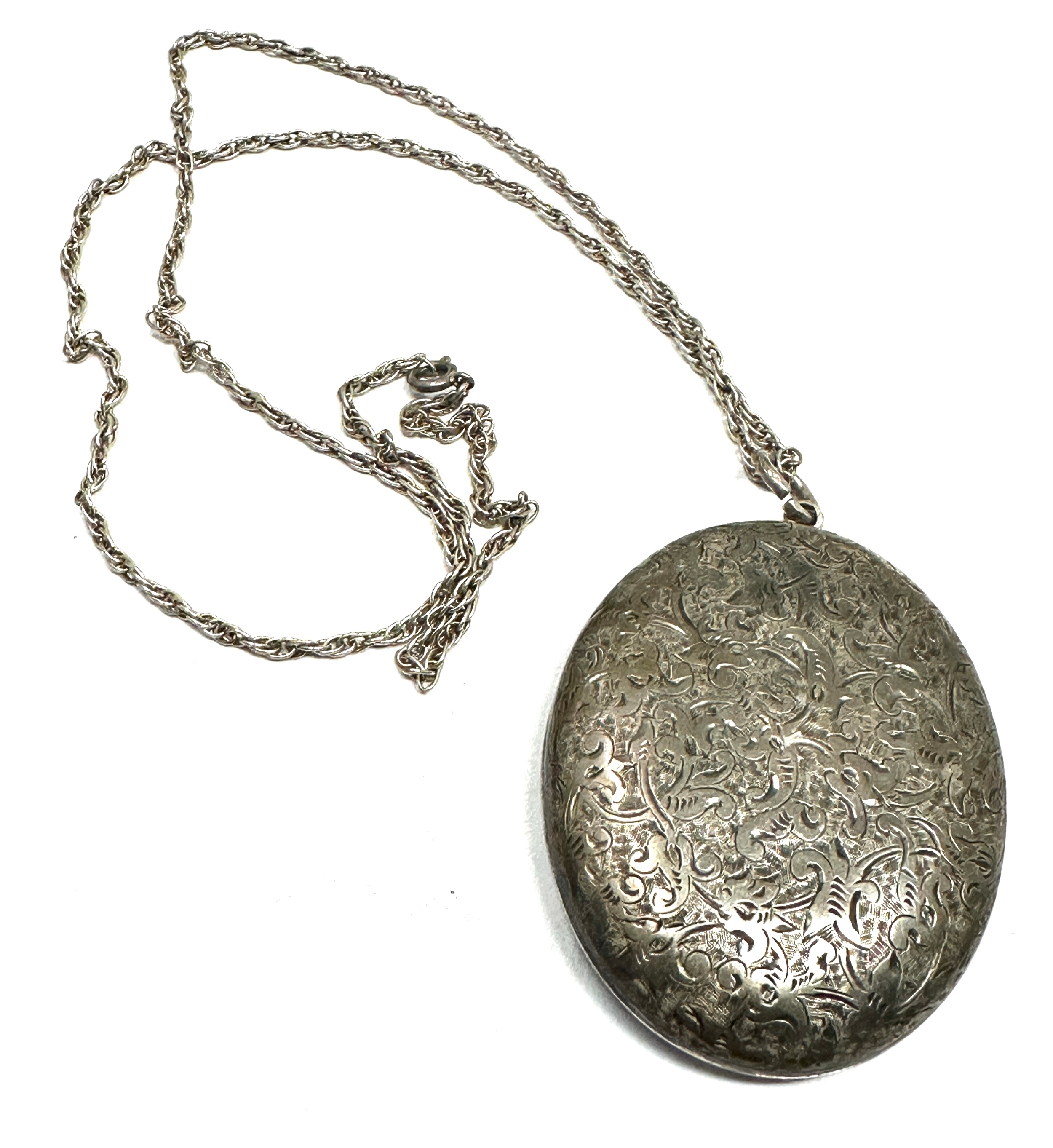 Large vintage silver locket pendant necklace locket measures approx 6cm drop by 4.1cm weight 28g