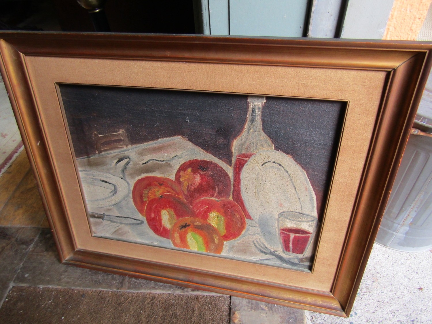Continental School Still Life with Apples Oil on Board Approximately 15 Inches High x 19 Inches Wide Oil on Board