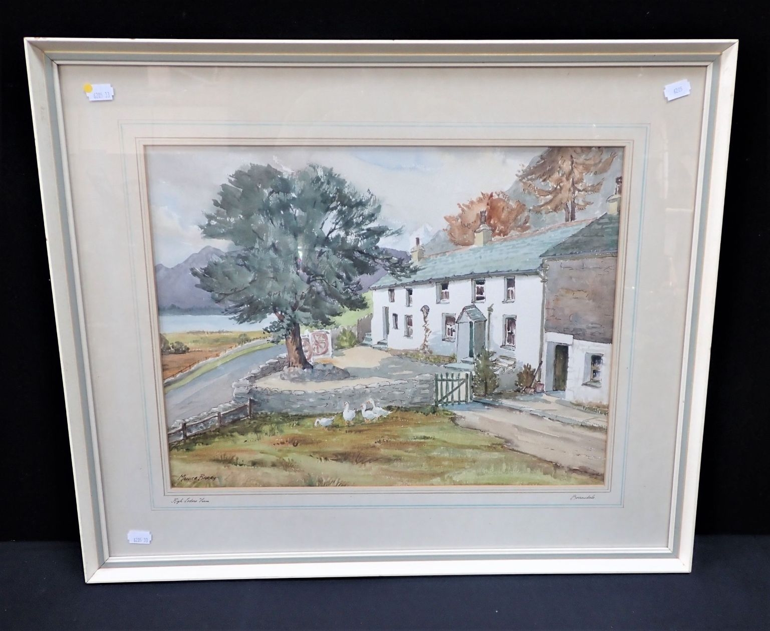 MONICA BARRY: 'HIGH LODORE FARM, BORROWDALE' watercolour 35 x 46cm plus mount and frame