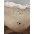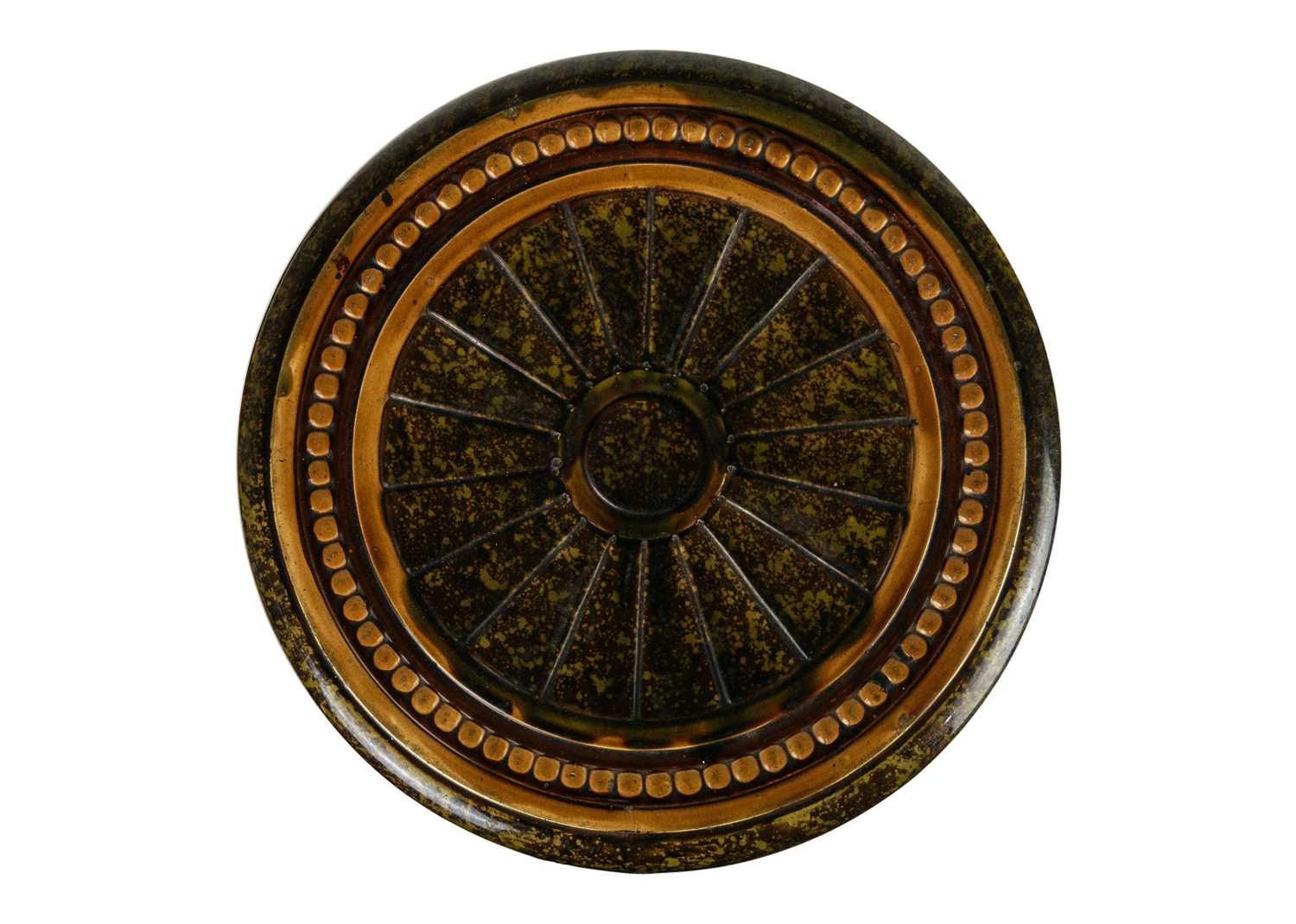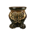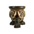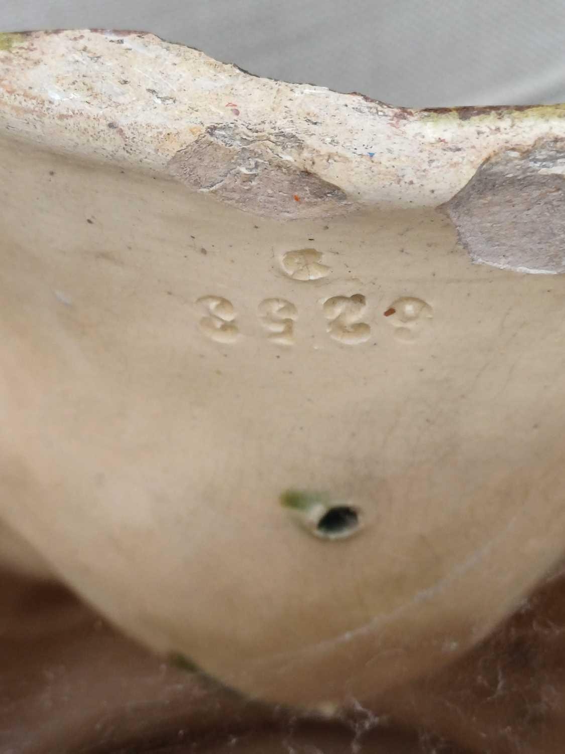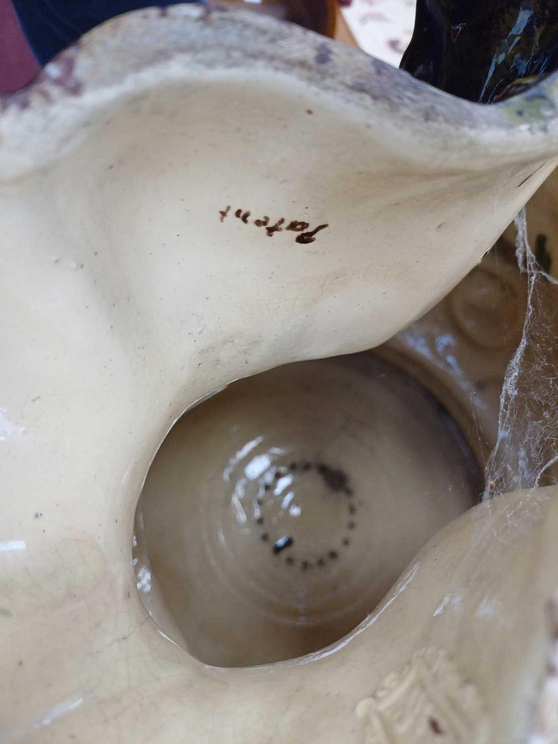 A German majolica stand or garden stool by Wilhelm Schiller and Son. With a gadrooned circular top, on three substantial moulded paw feet, height 43cm, diameter .