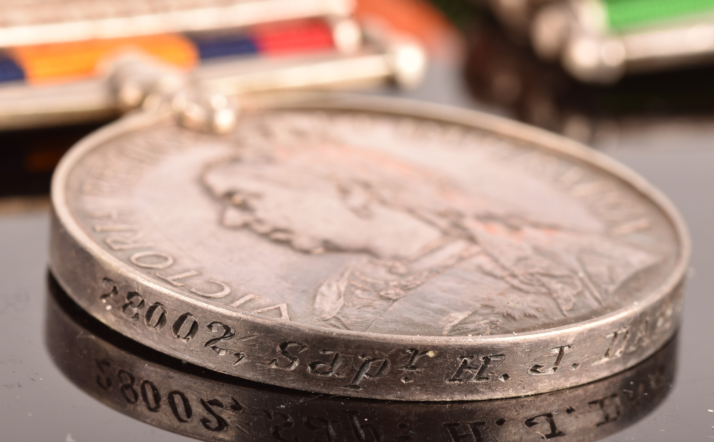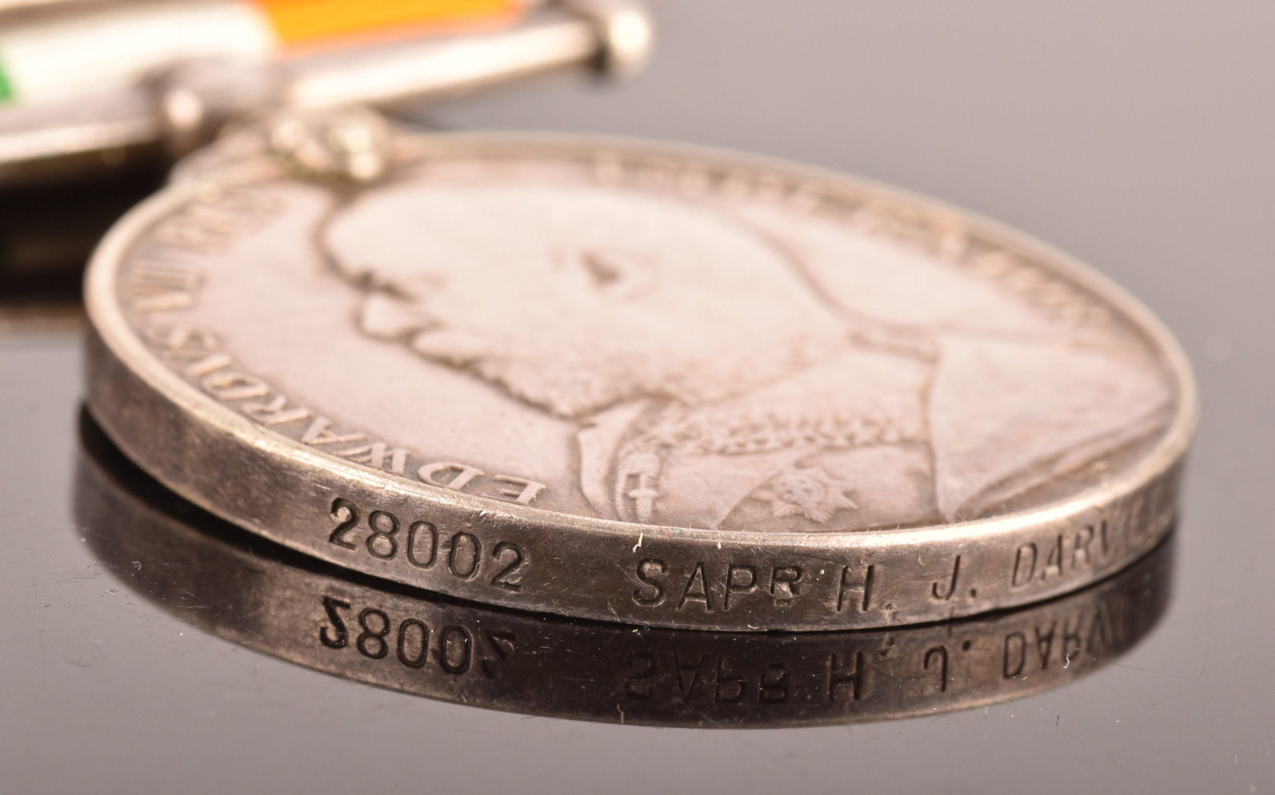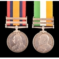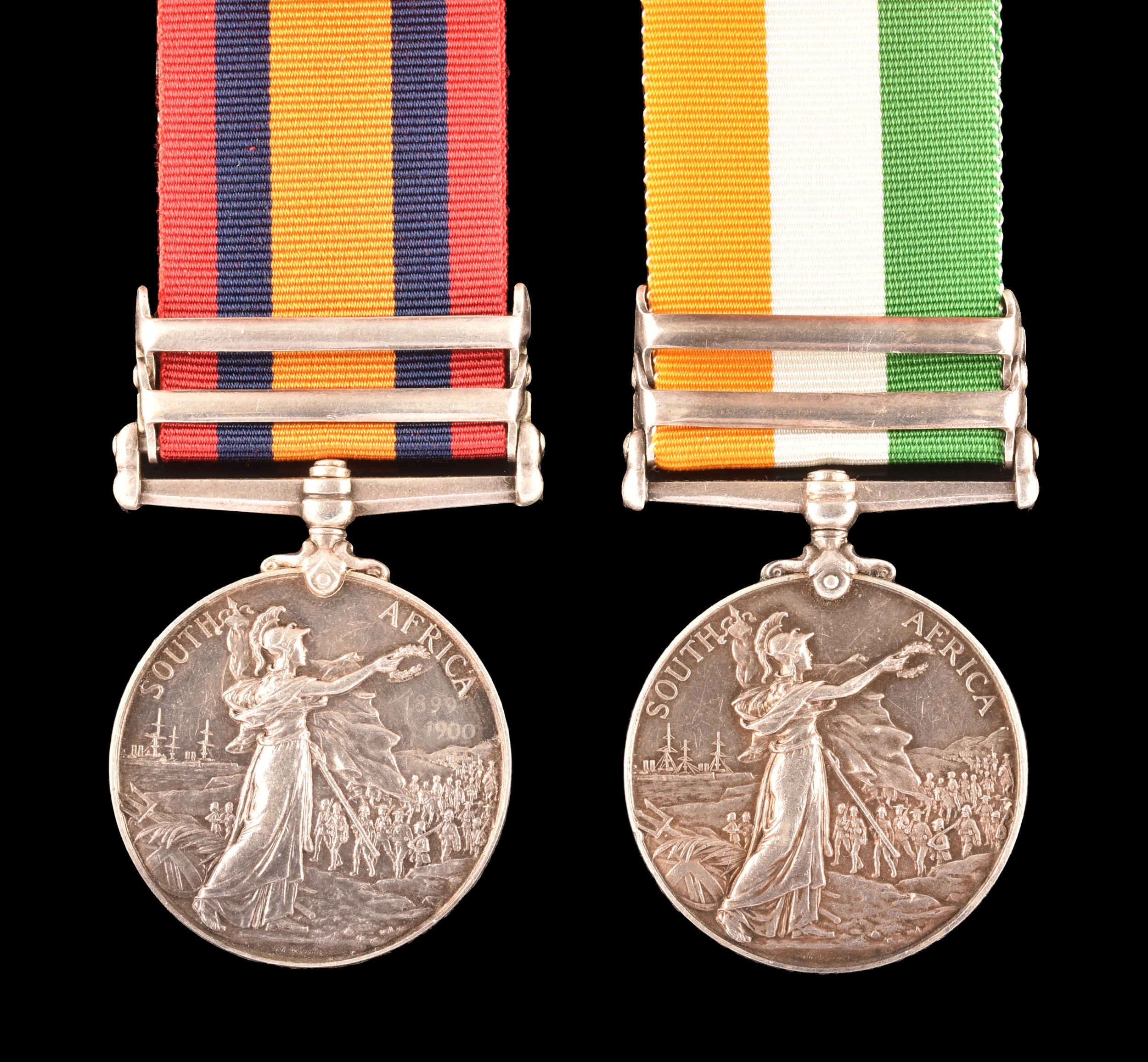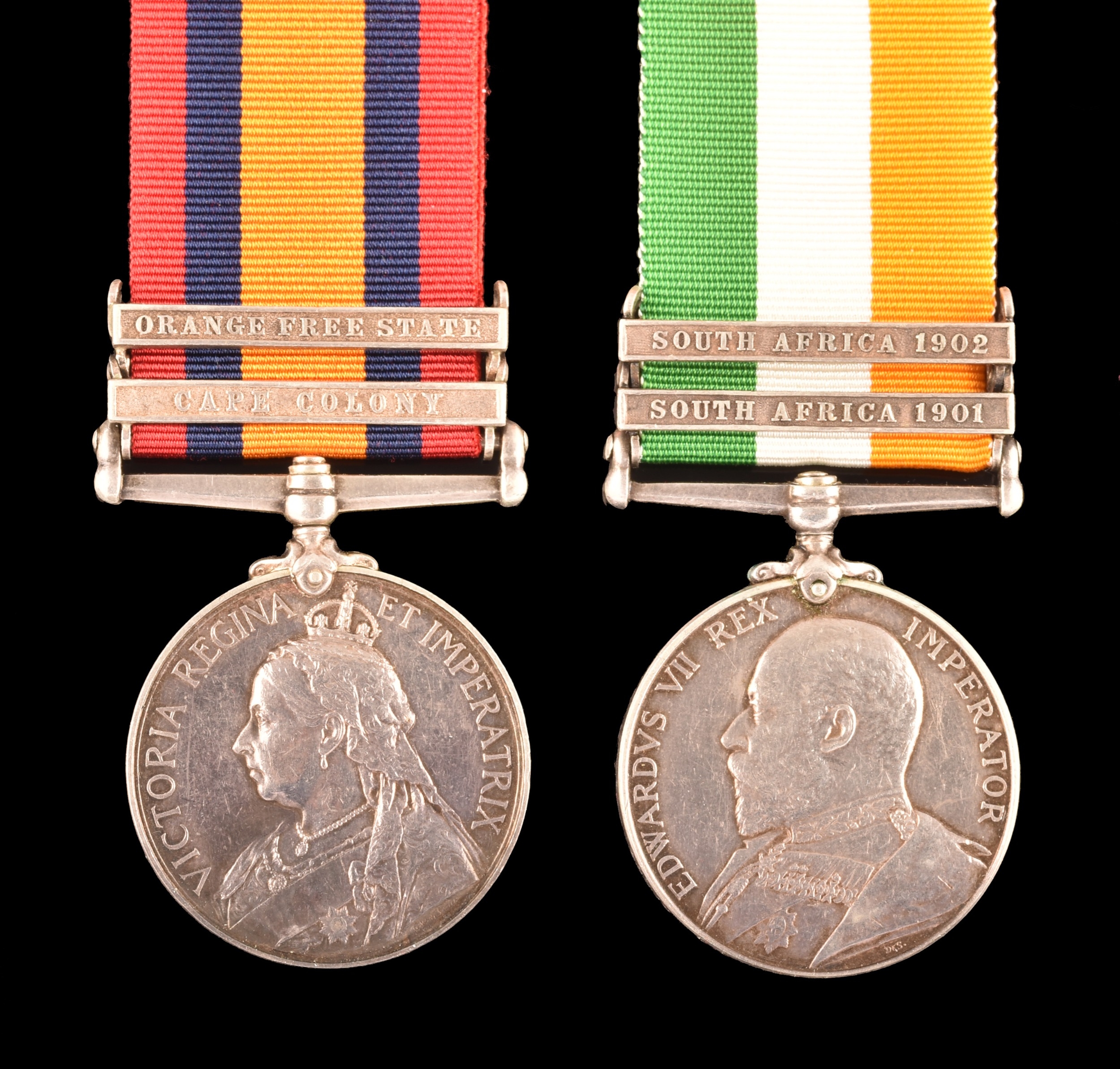 A Boer War medal pair awarded to: 28002, Sapper H. J. Darvill, Royal Engineers. Comprising: a QSA Queen’s South Africa medal with 2 clasps Cape Colony, Orange Free State (28002, Sapr. H. J. Darvill, R.E.); and a KSA King's South Africa medal with 2 clasps South Africa 1901 and South Africa 1902 (28002, Sapr. H. J. Darvill, R.E.).