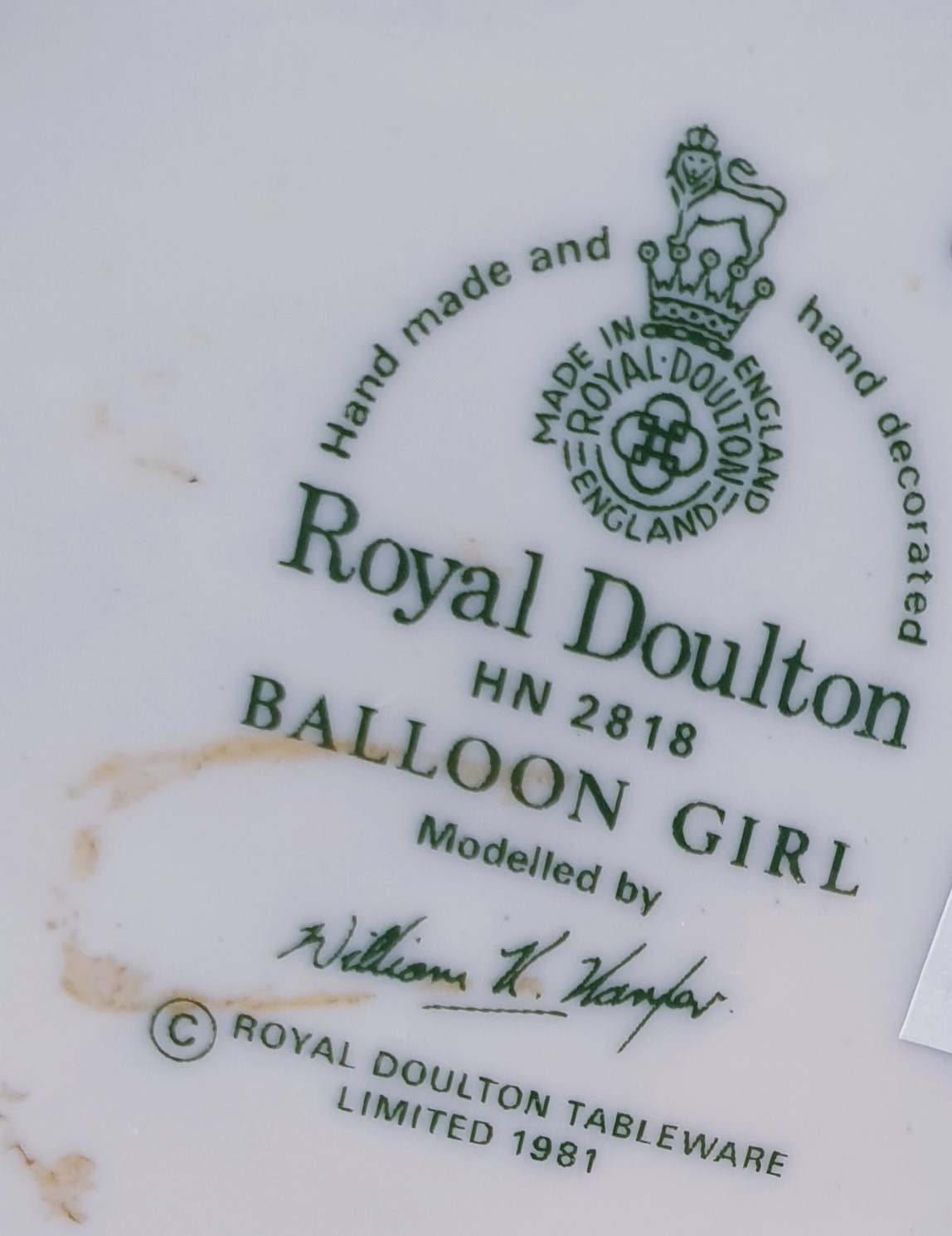 ROYAL DOULTON 16.5cm CHARACTER FIGURINE "BALLOON GIRL" HN 2818 1982/97 Designed By Mr William.K.Harper