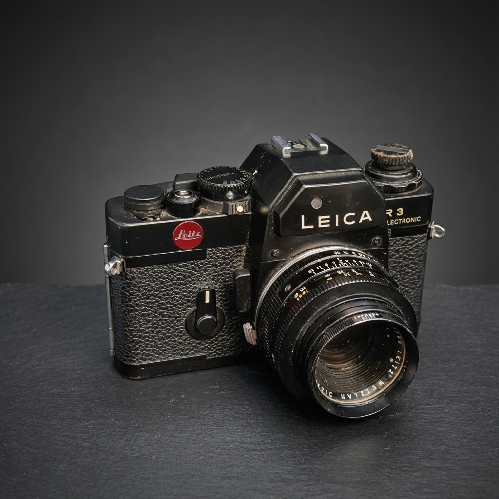 Star lot : A 'Leitz Leica R3 Elektronic 35mm SLR' film camera. Fitted with a 'SUMMICRON R 1:2/50' lens. online RRP:€500