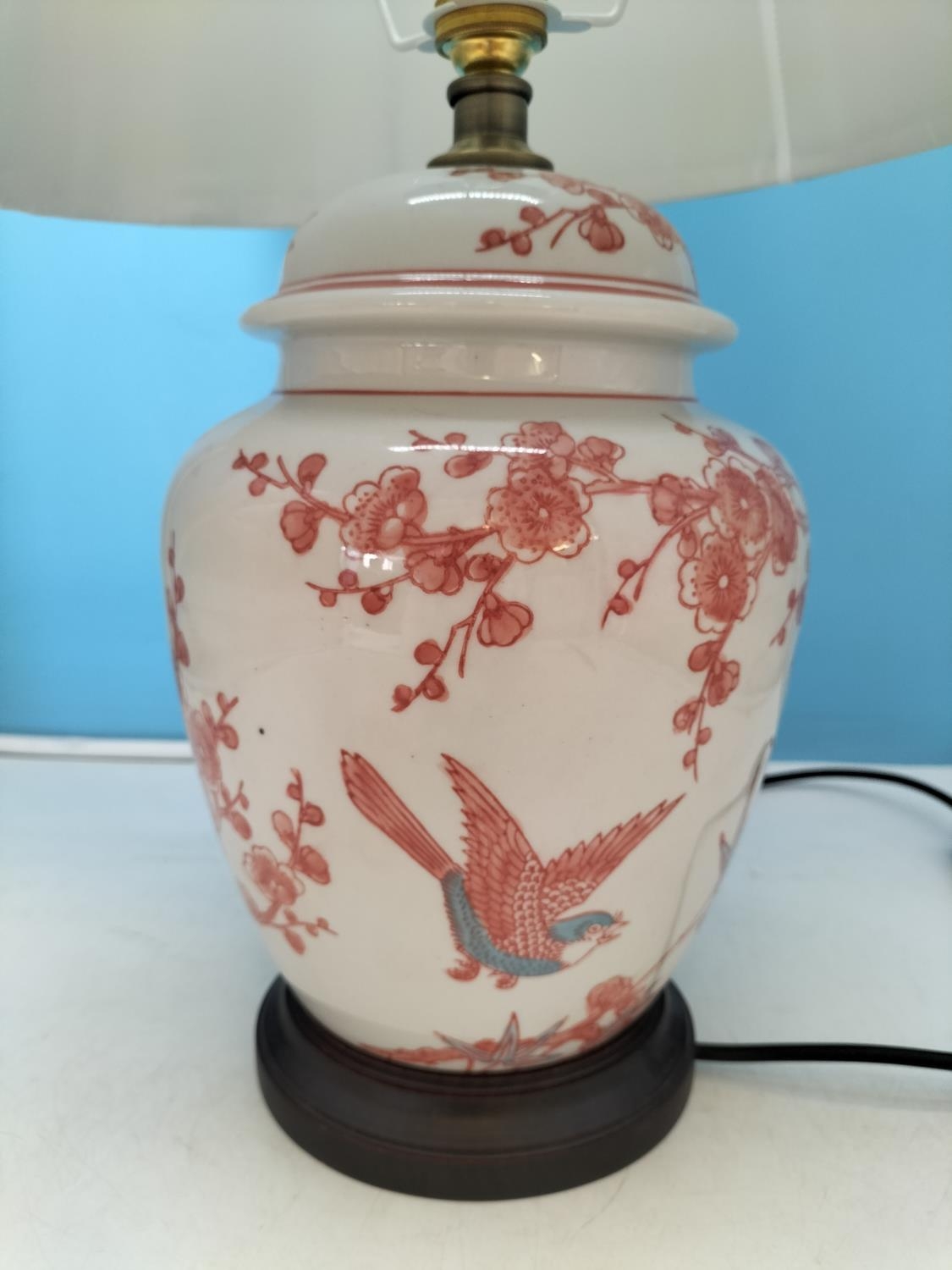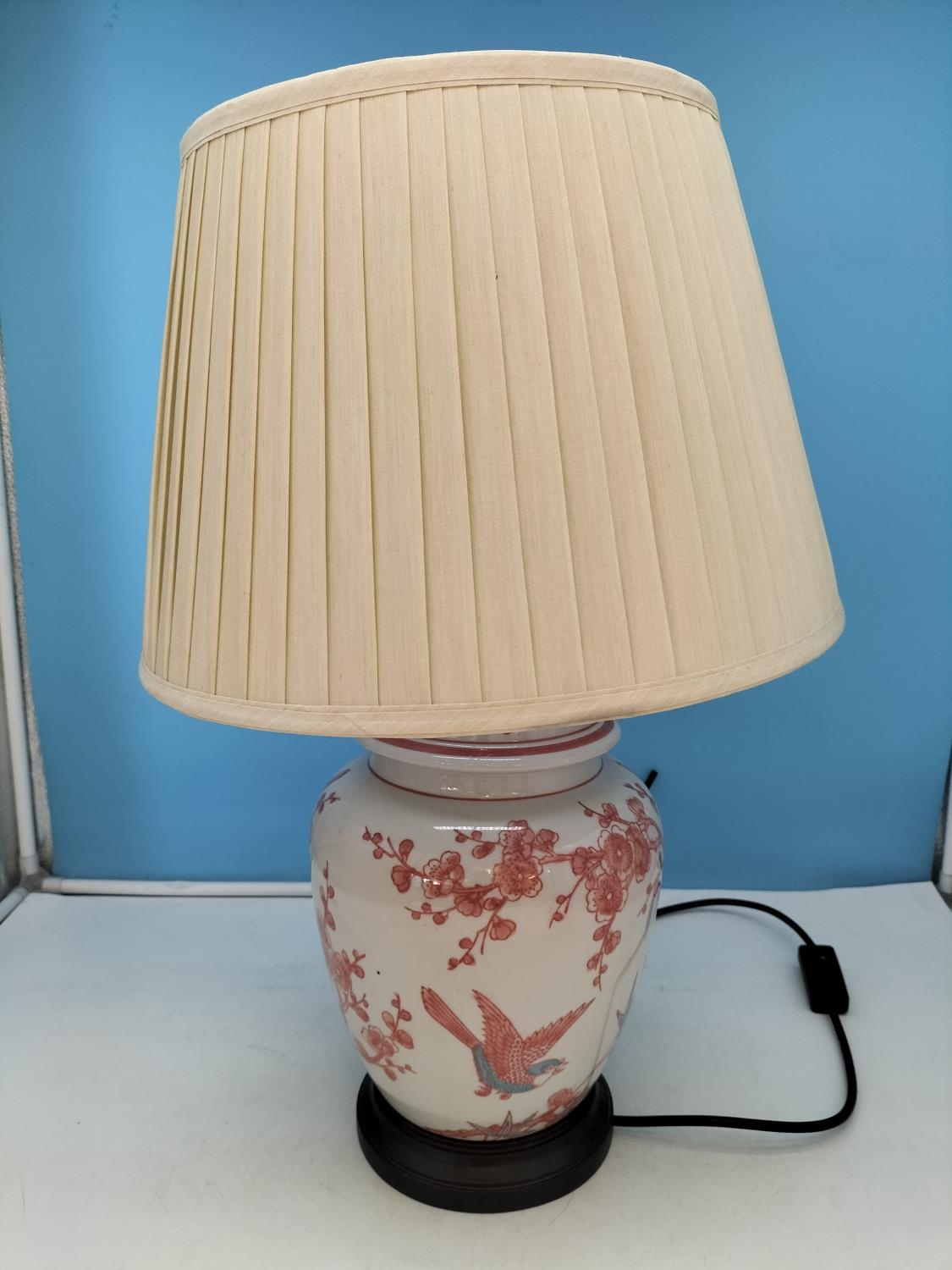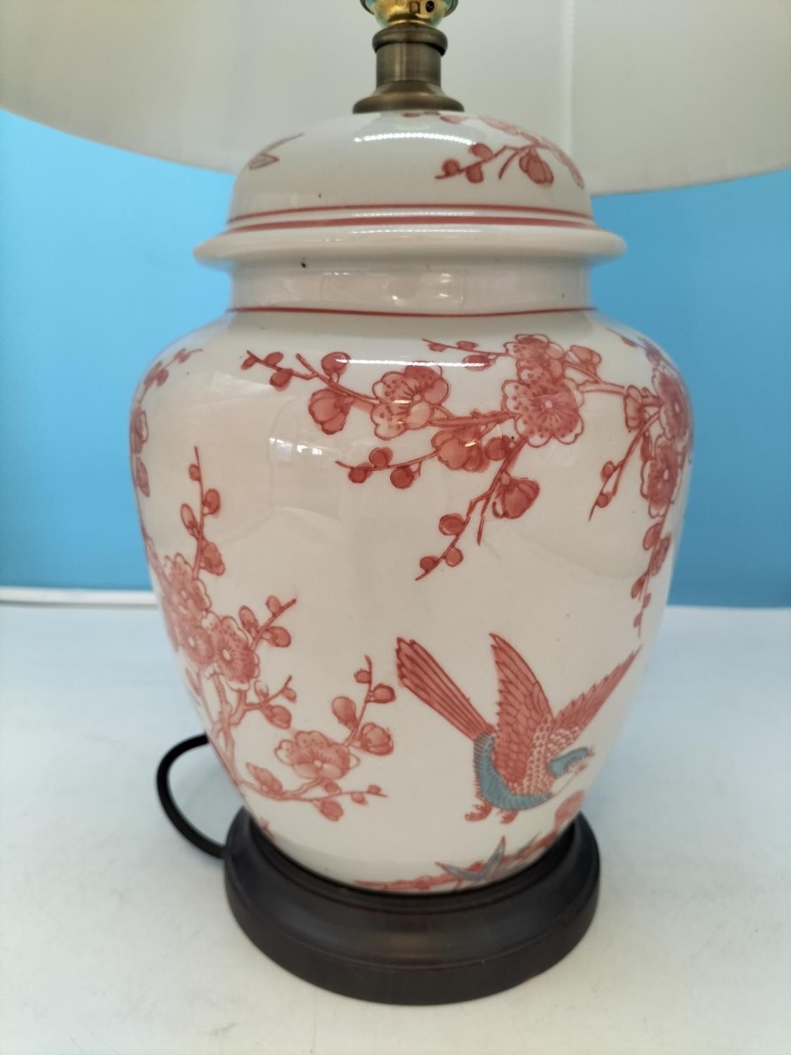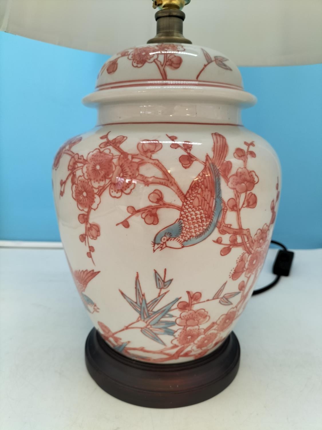 Mandarin Arts Ltd Chinese White Porcelain Lamp with Hand Painted Birds in Prunus Tree Pattern. 55cm High. Untested.