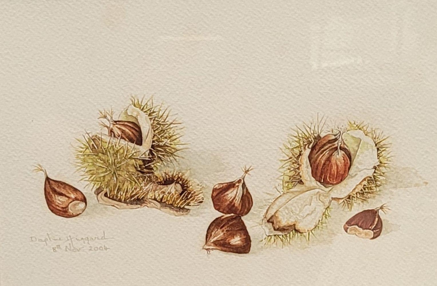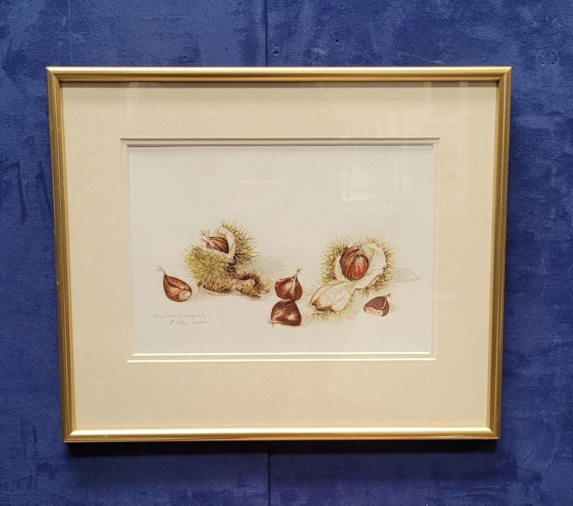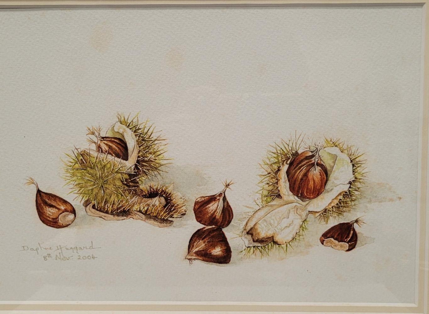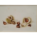 DAPHNE HUGGARD, (IRISH, 20th CENTURY), CHESTNUTS, watercolour on paper, signed and dated lower left. 25 x 17cm painting, 38 x 31.5cm frame.