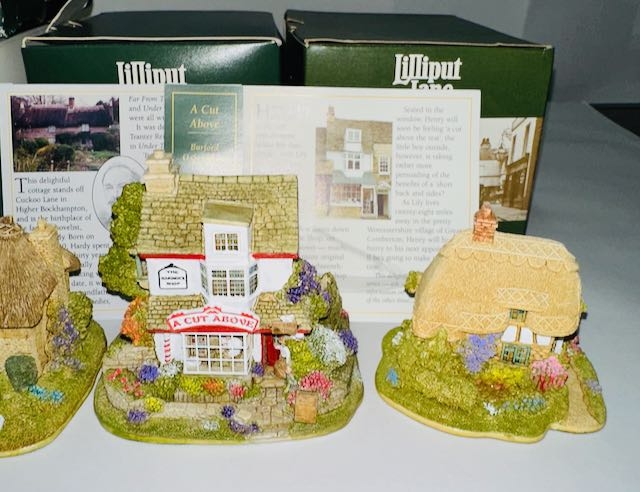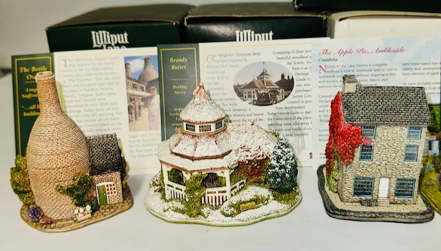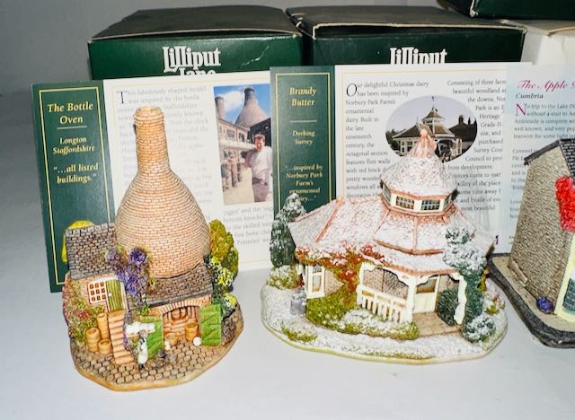 Boxed Lilliput Lane x6 - The Bottle Oven, Brandy Butter, The Apple Pie, Hardy's Cottage, A Cut Above + Sugar Loaf Cottage