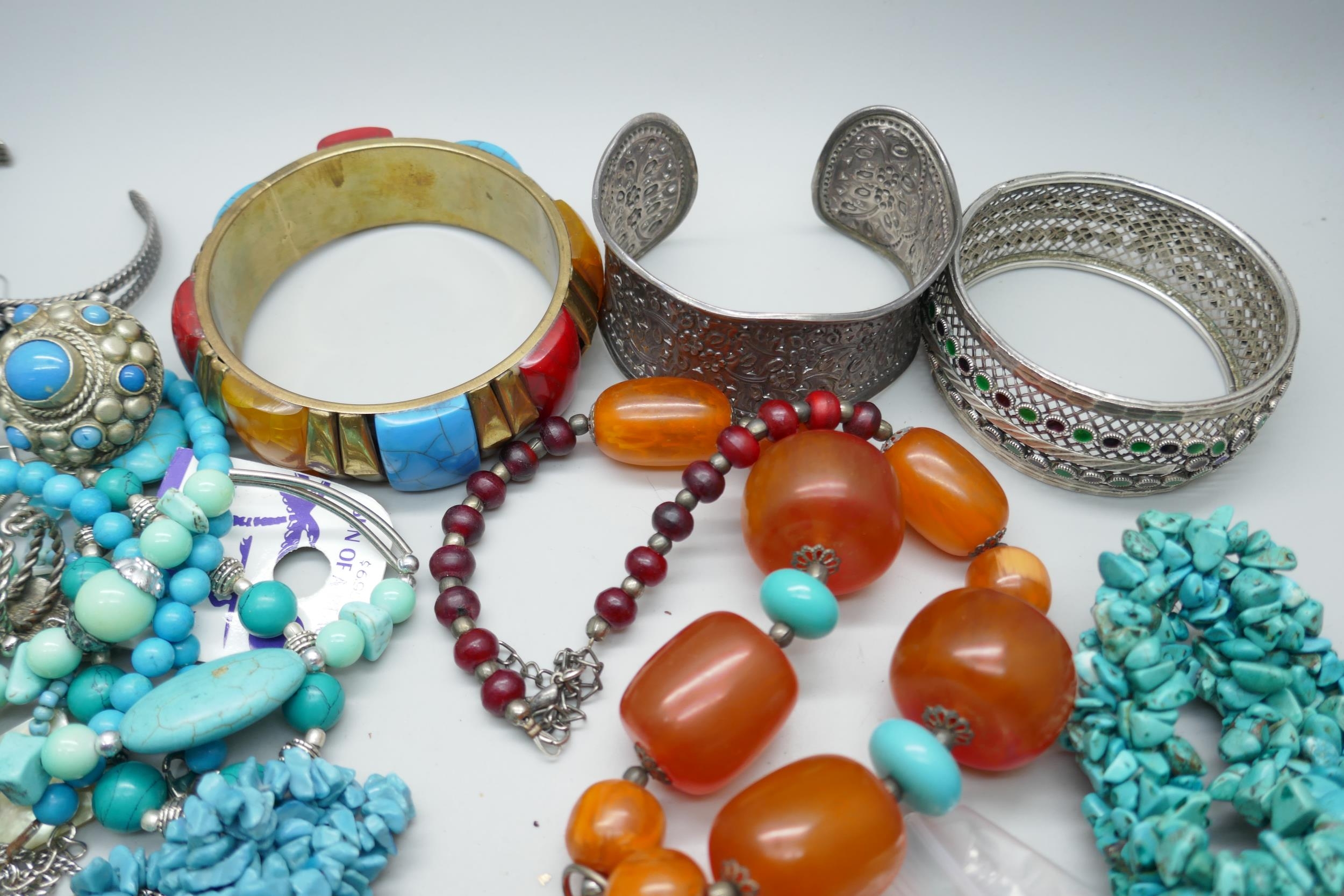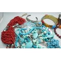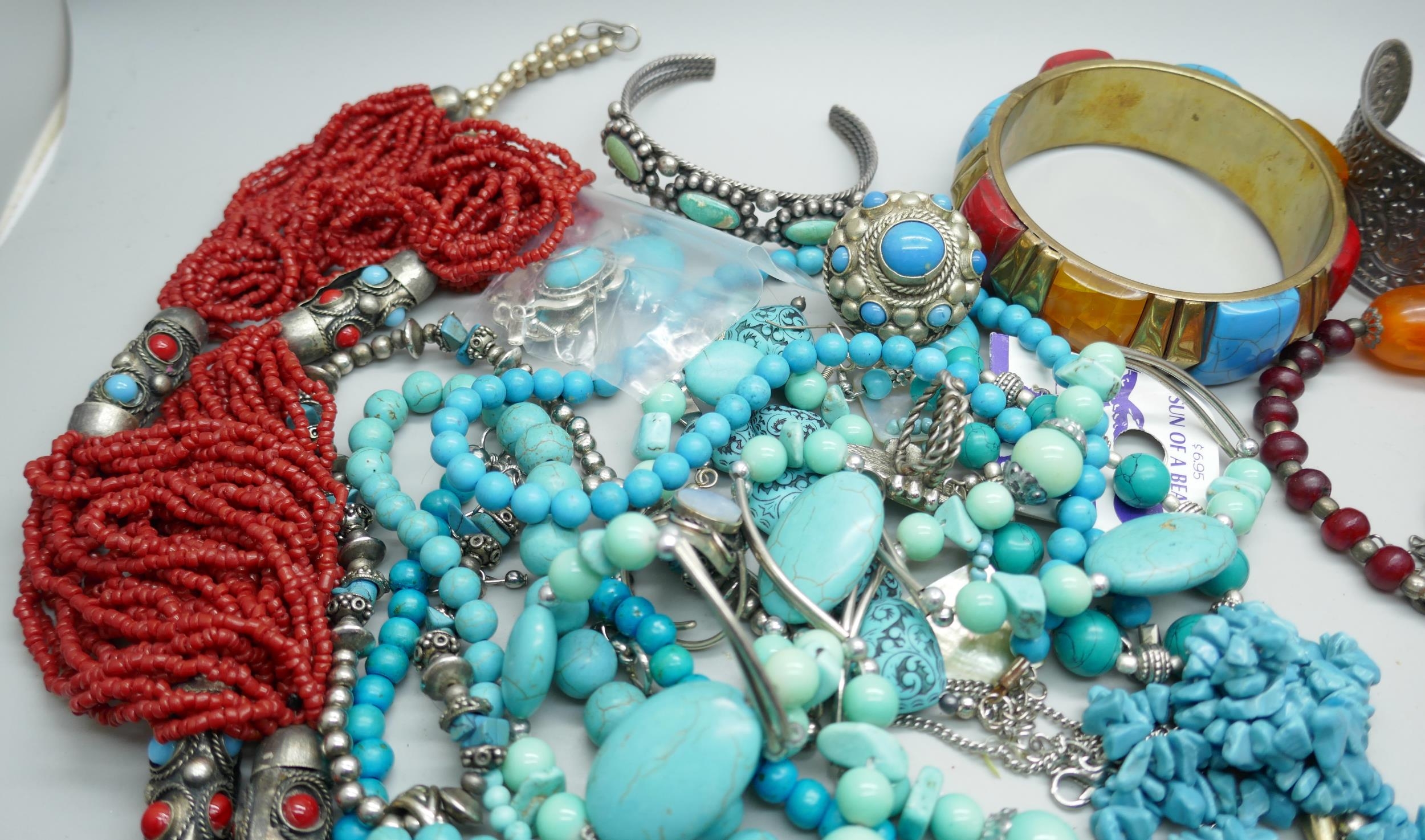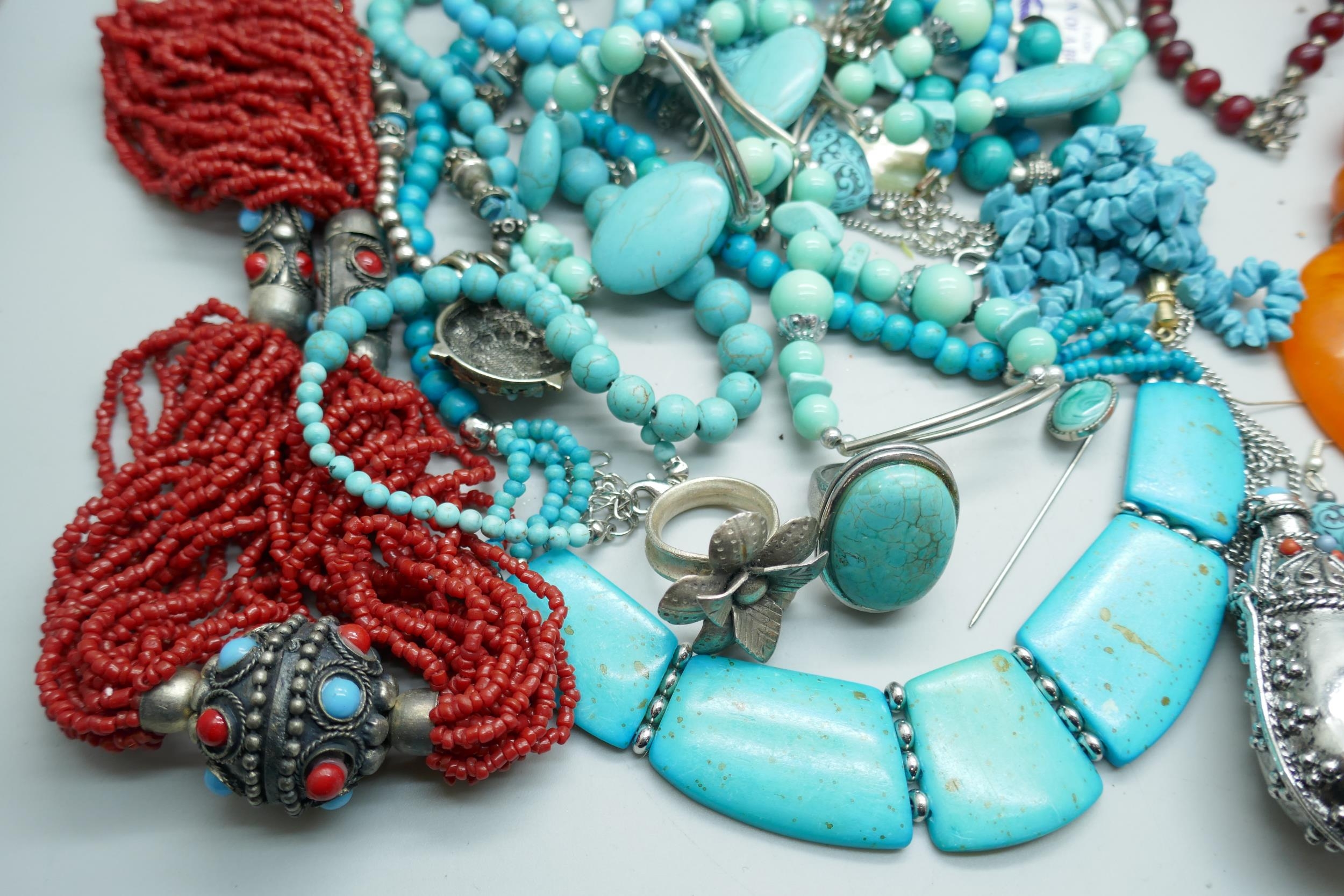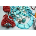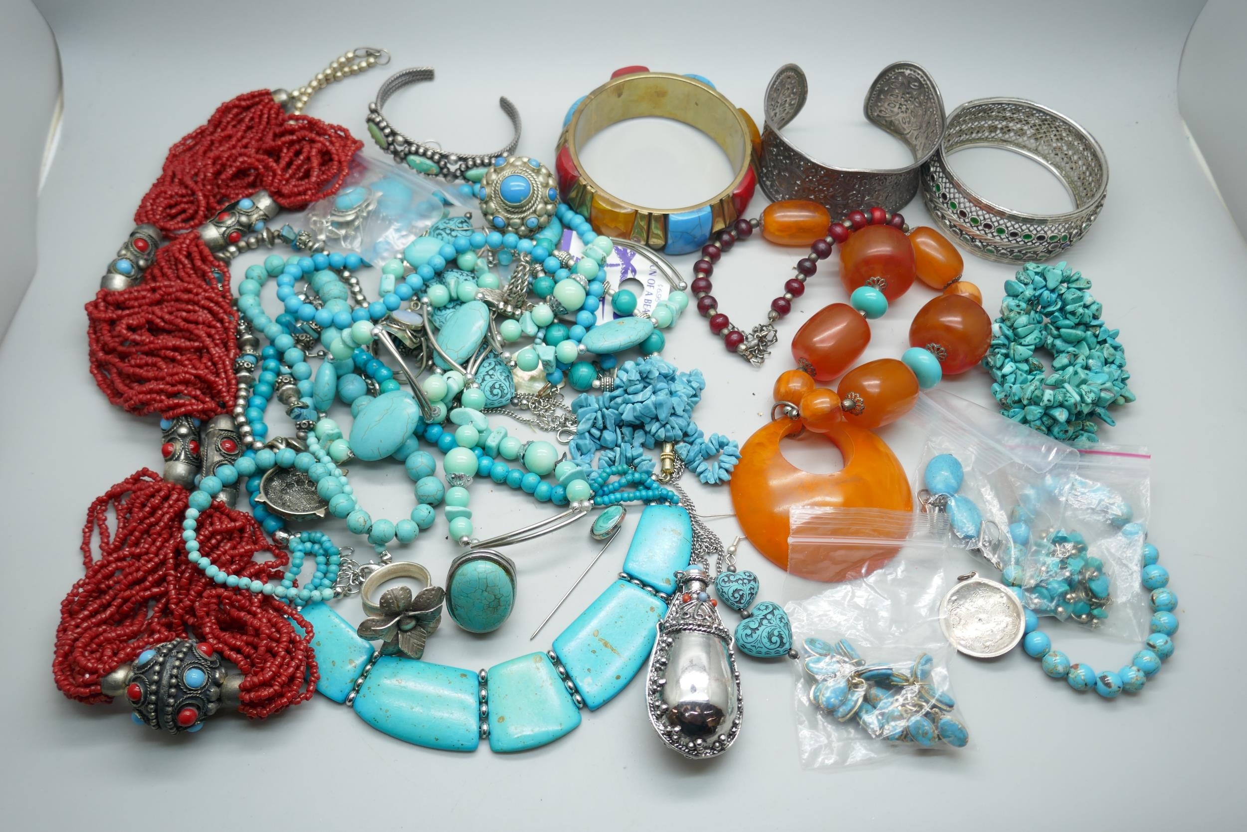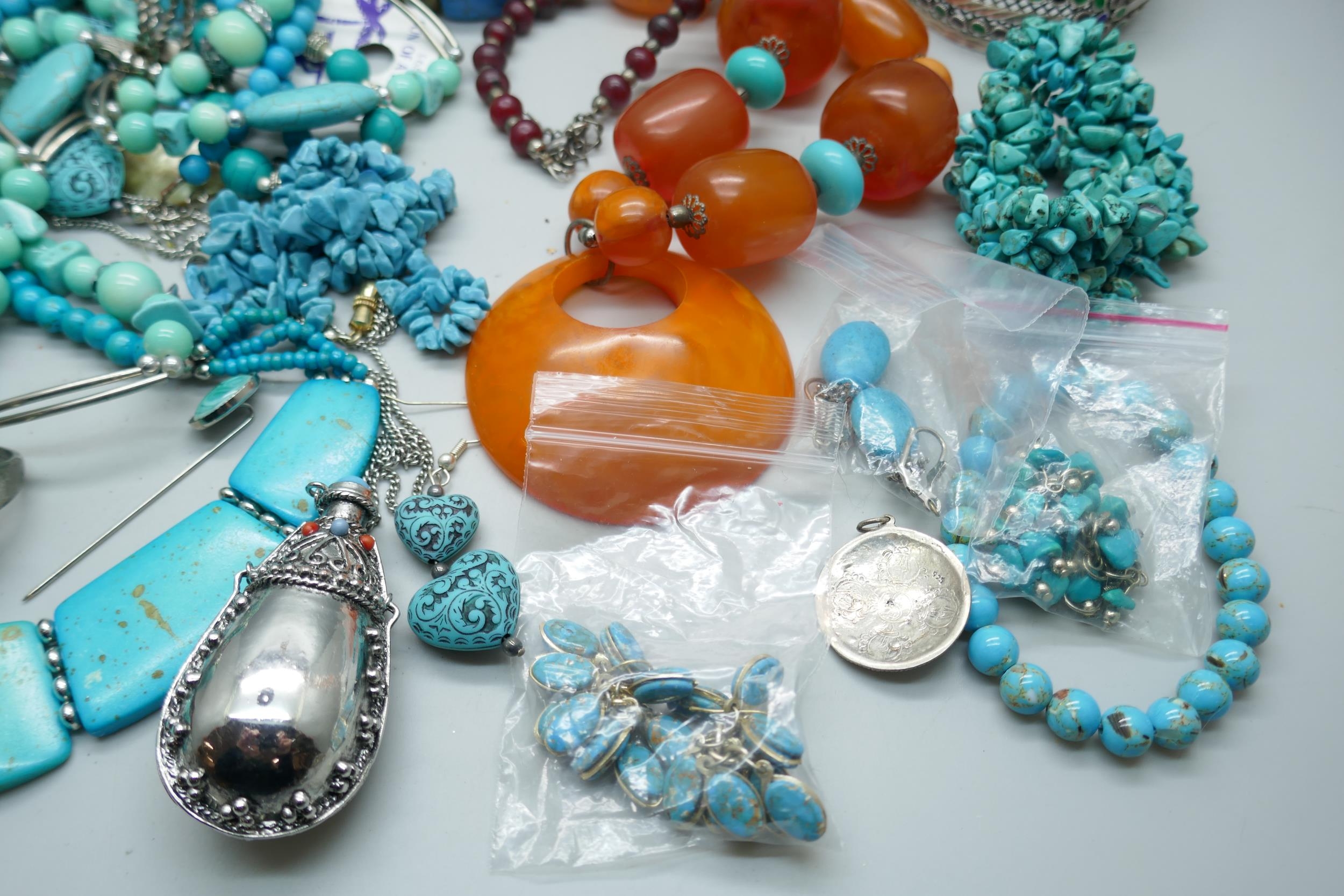 A collection of turquoise set jewellery