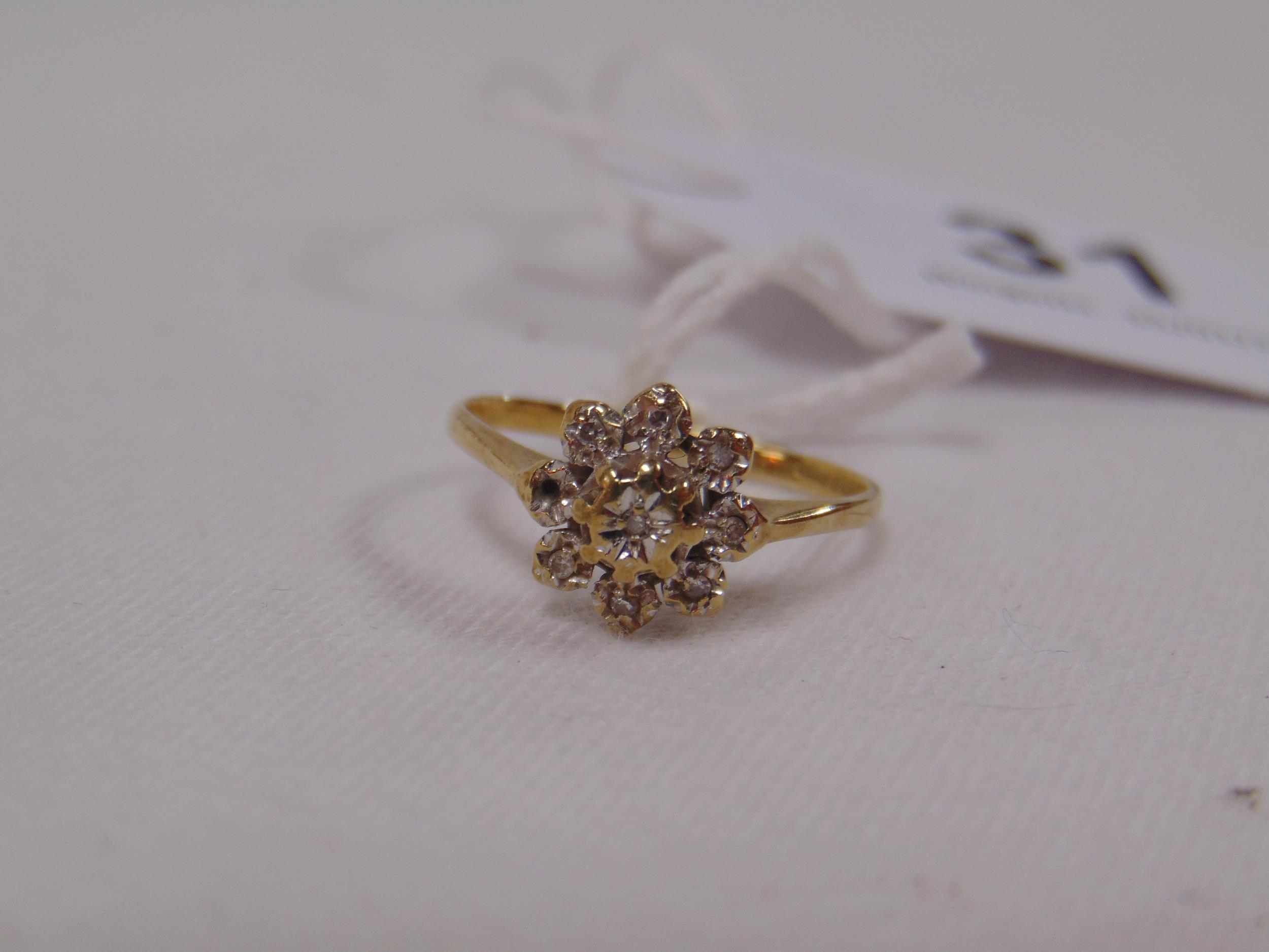 9ct gold illusion set cluster ring, size P, 1.7g.