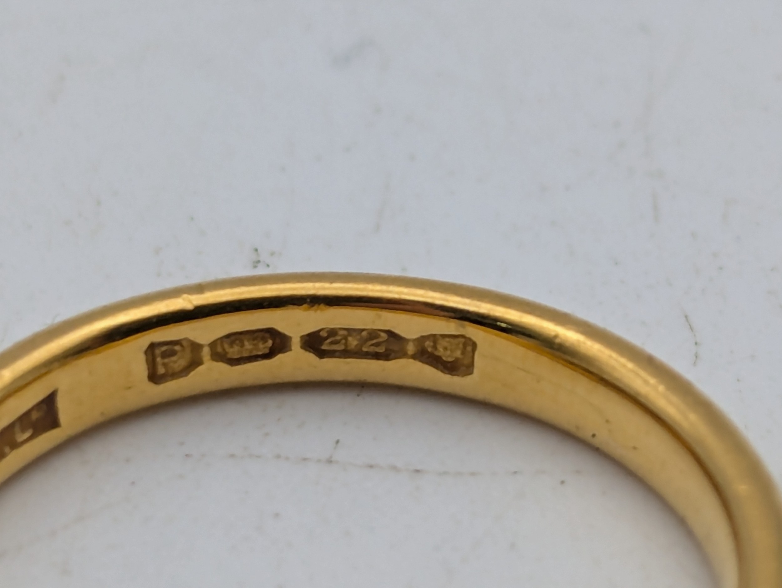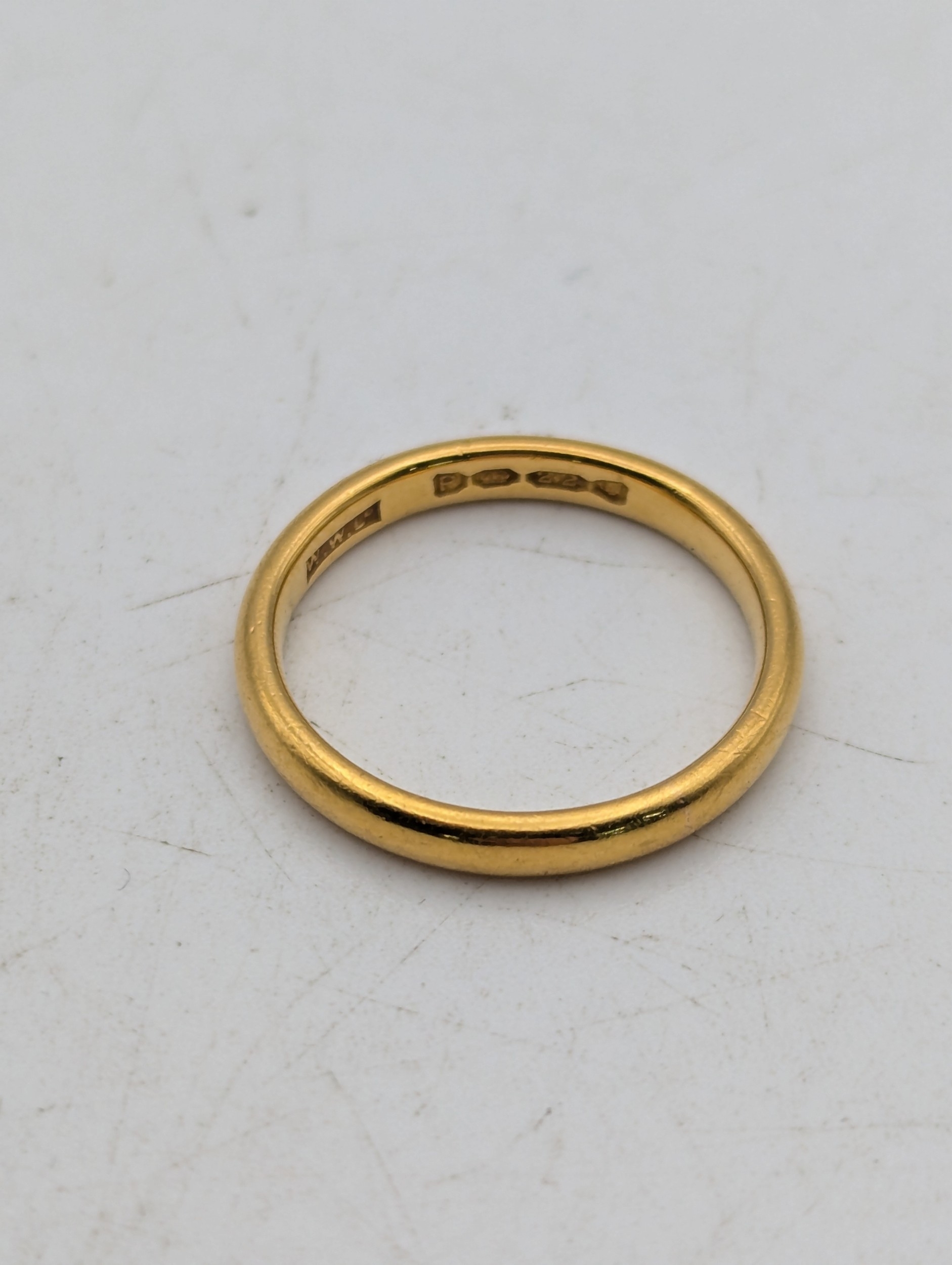 A 22ct yellow gold wedding band stamped 22 with British hallmarks, maker's marks WWLd, 3.5g Location:R2